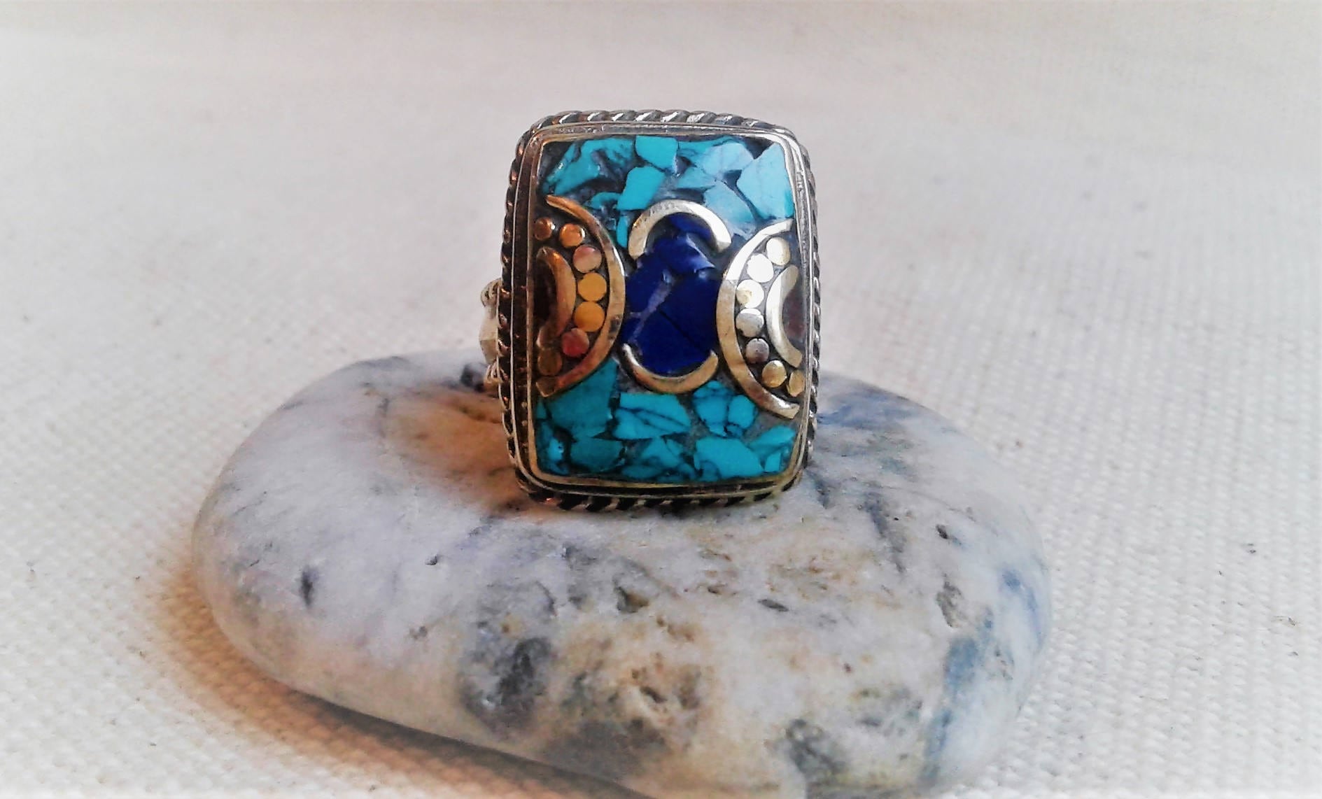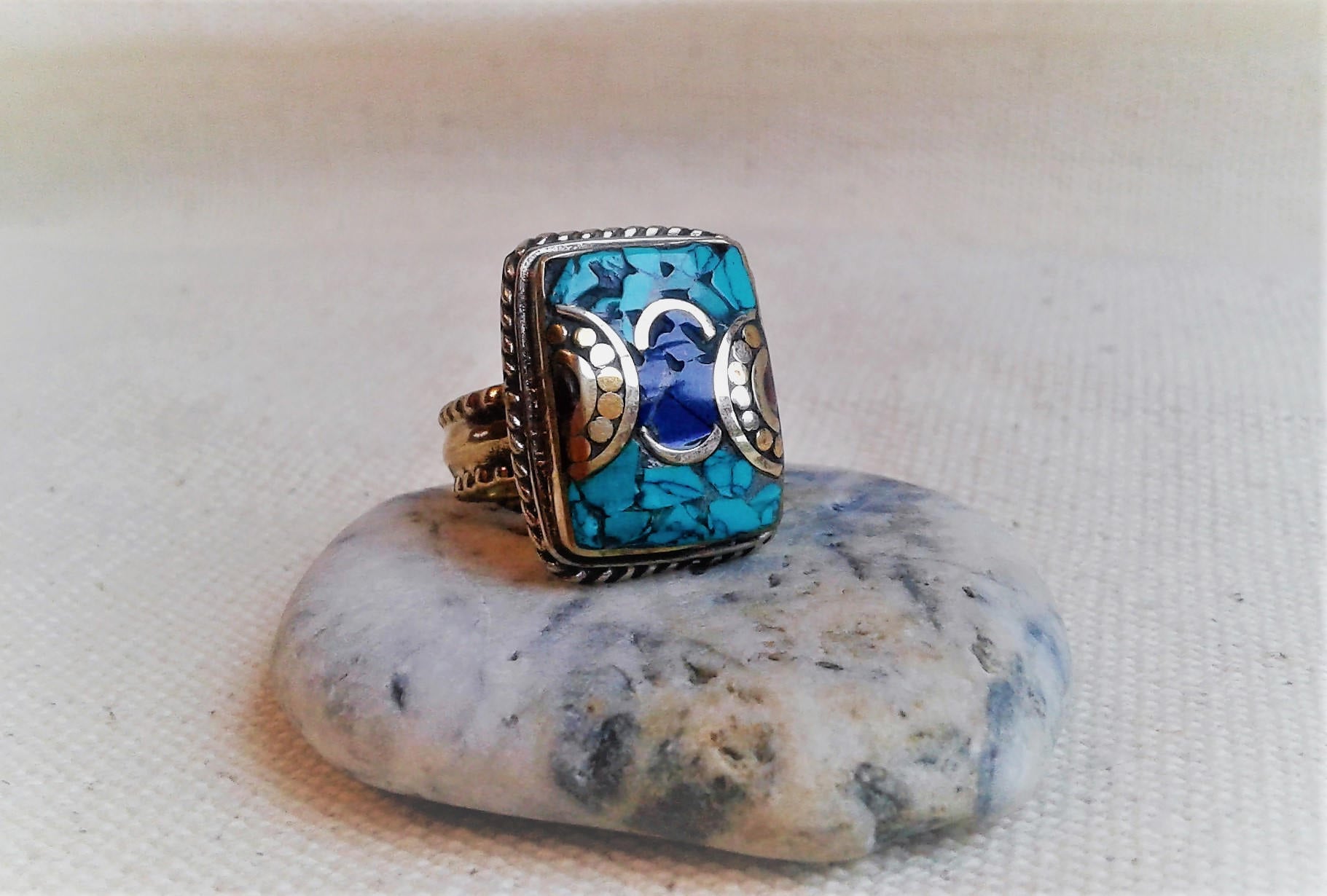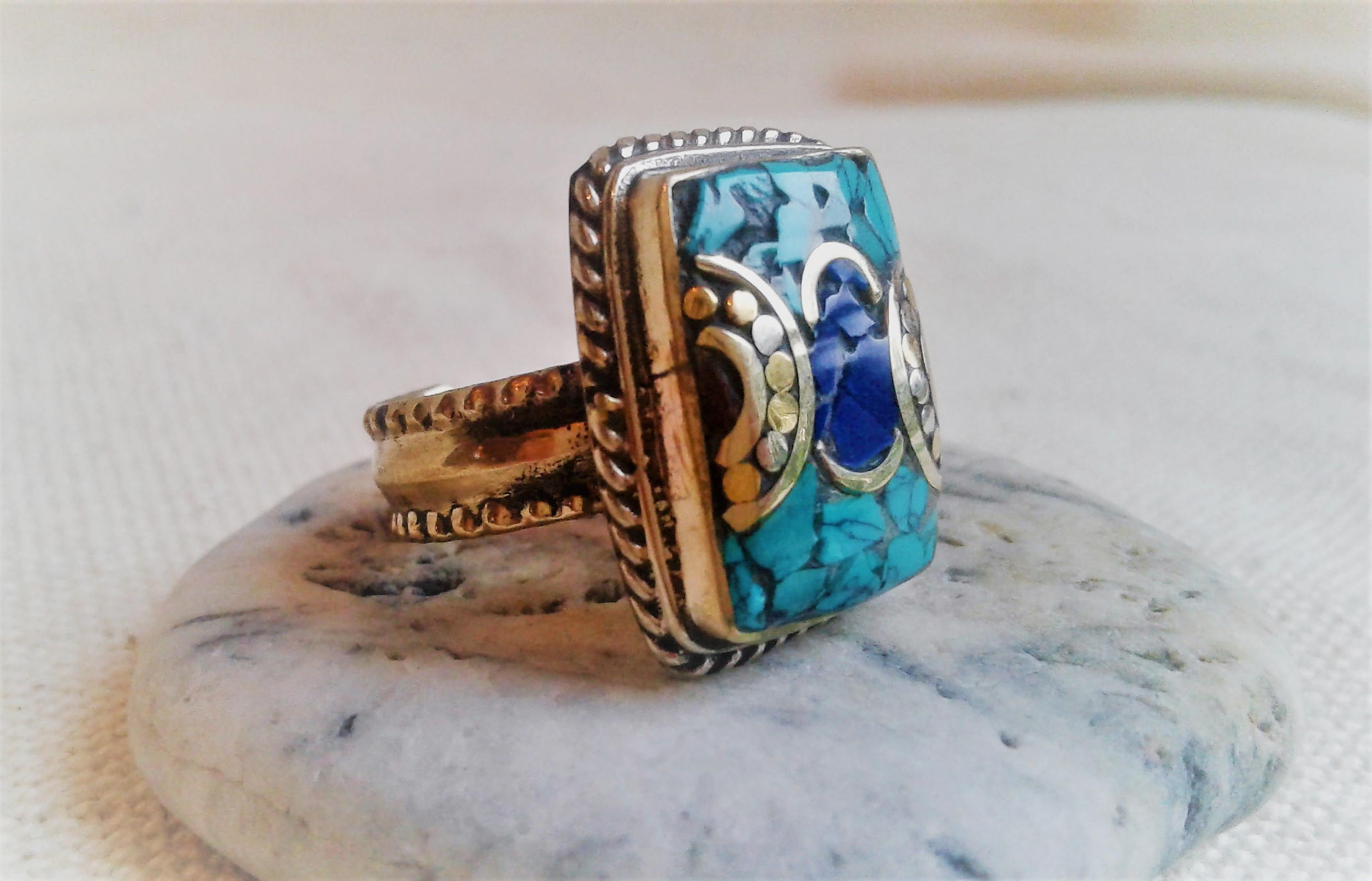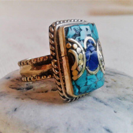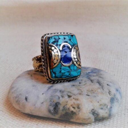 Bague ethnique pierres fines Tibet Himalaya