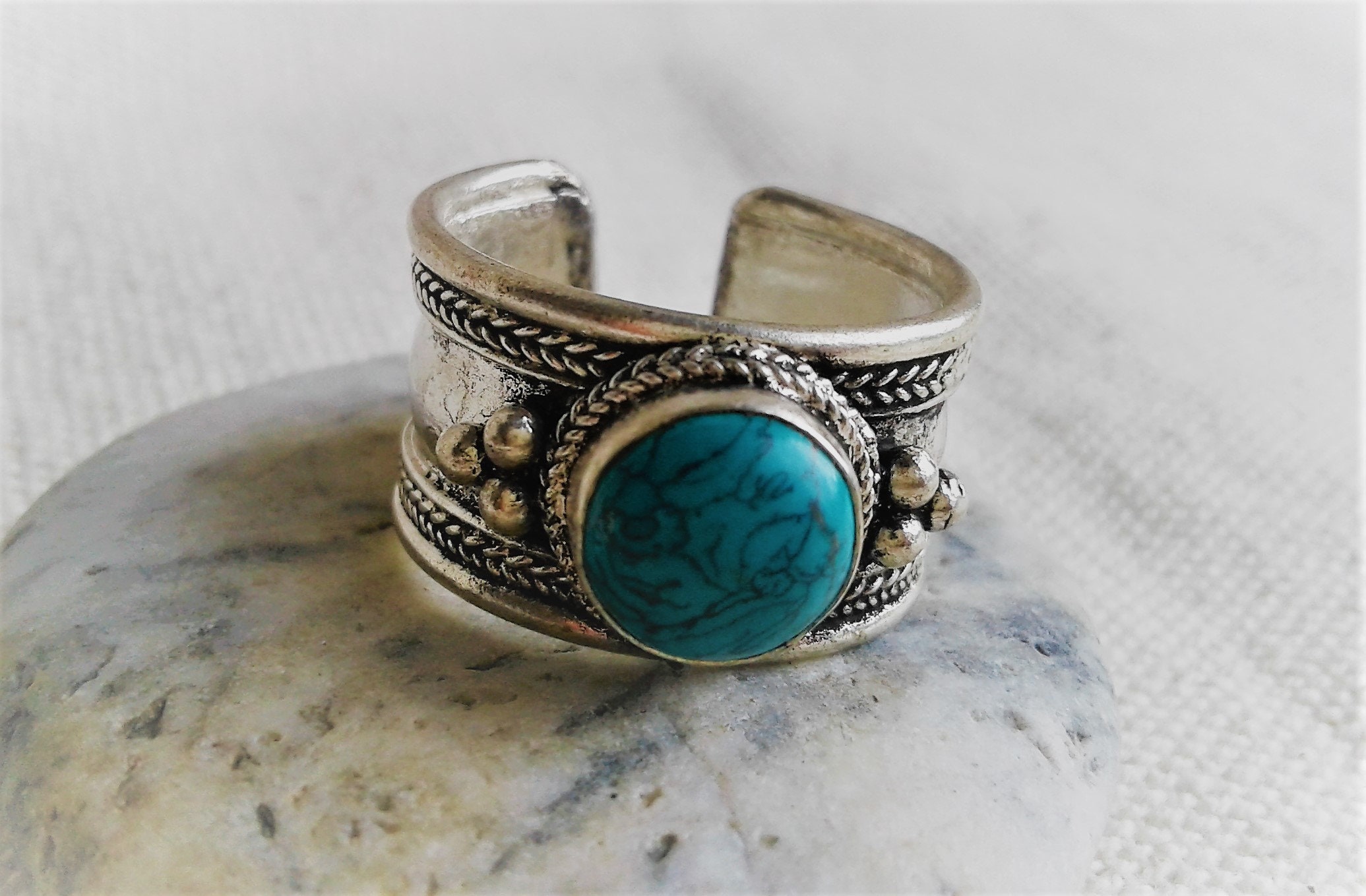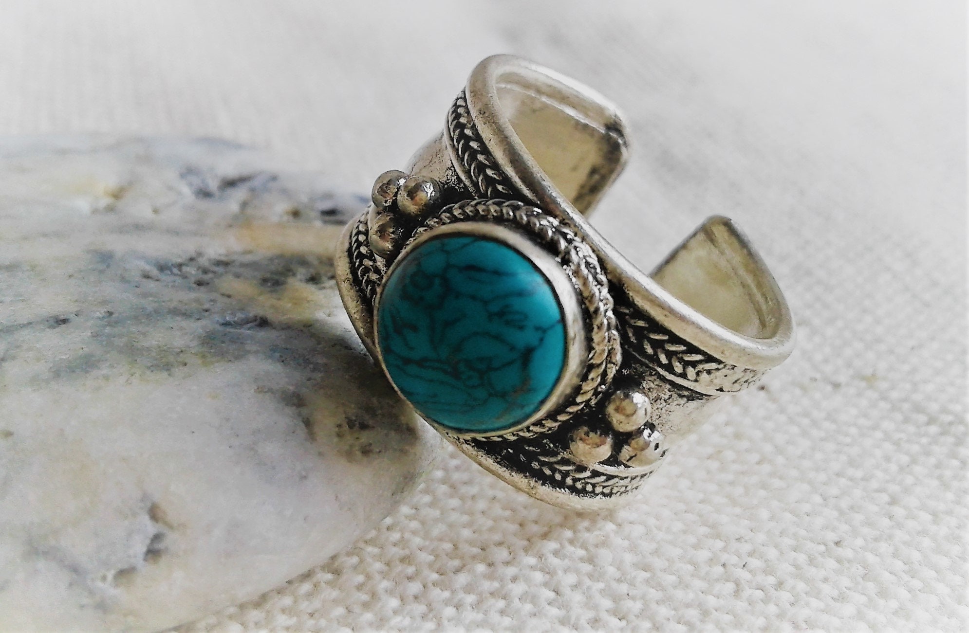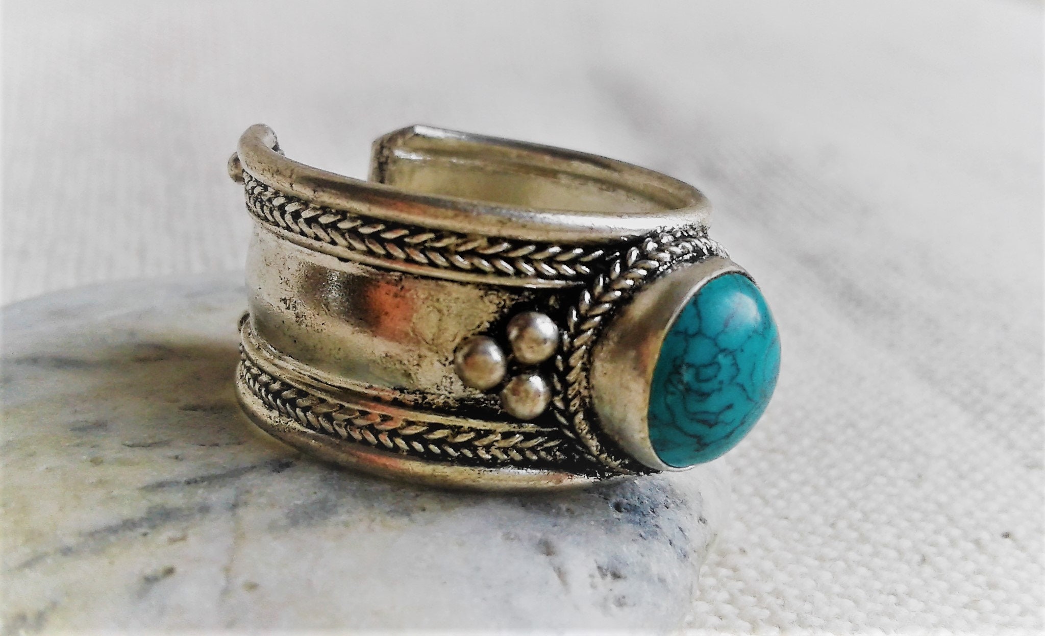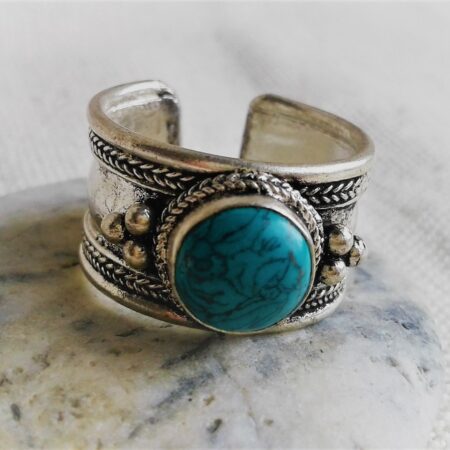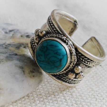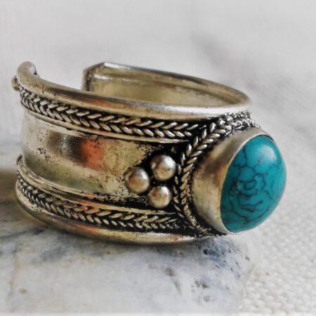 Bague Ethnique Argent Turquoise-Bague Népal Tibet-Bohème