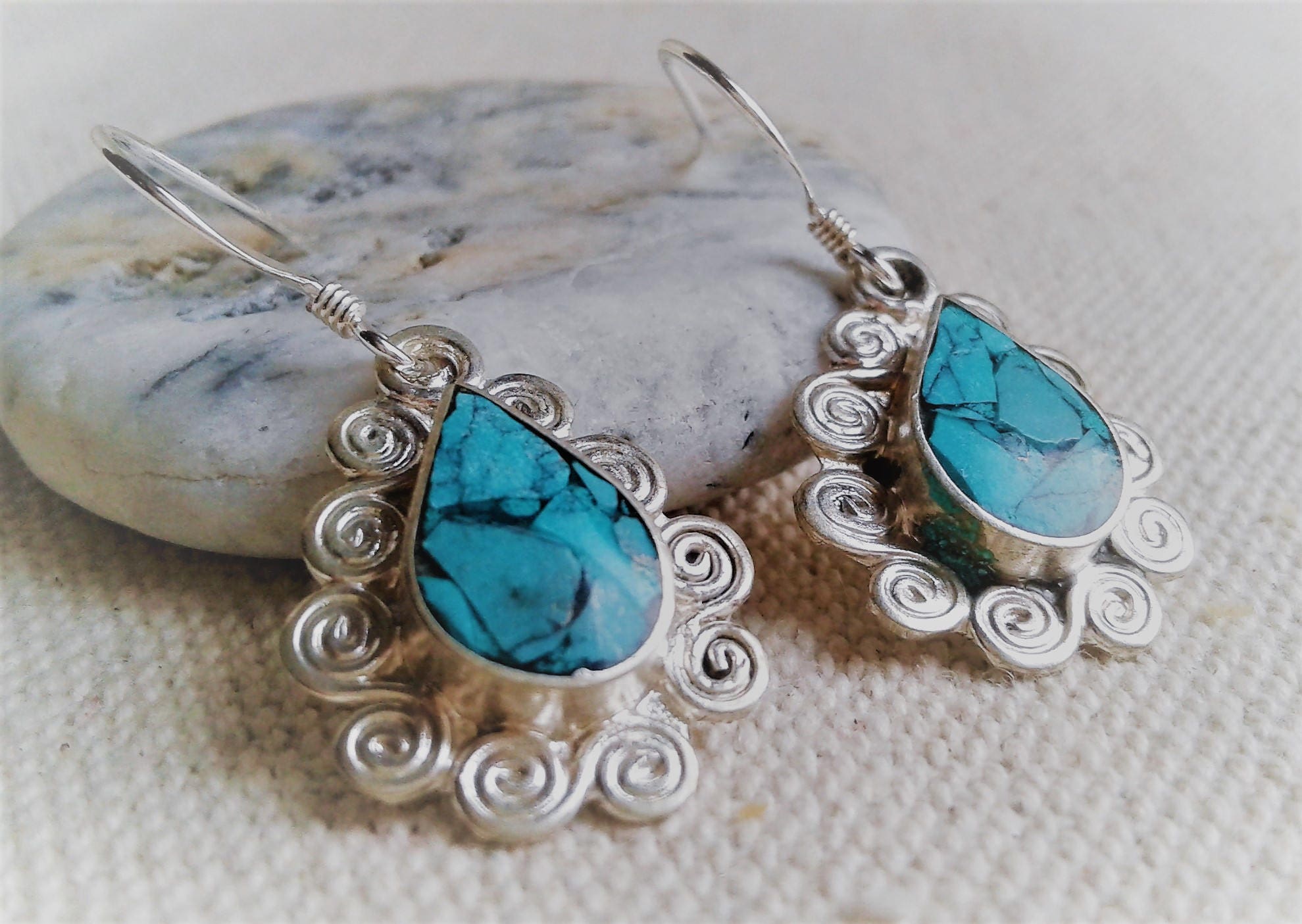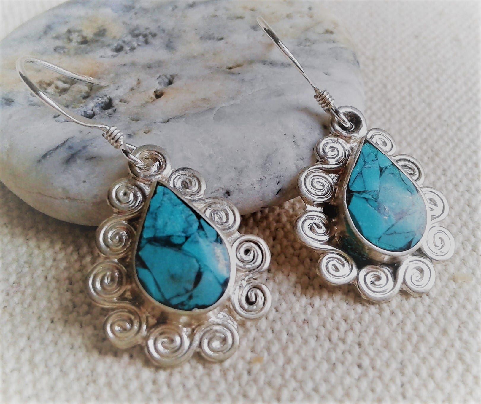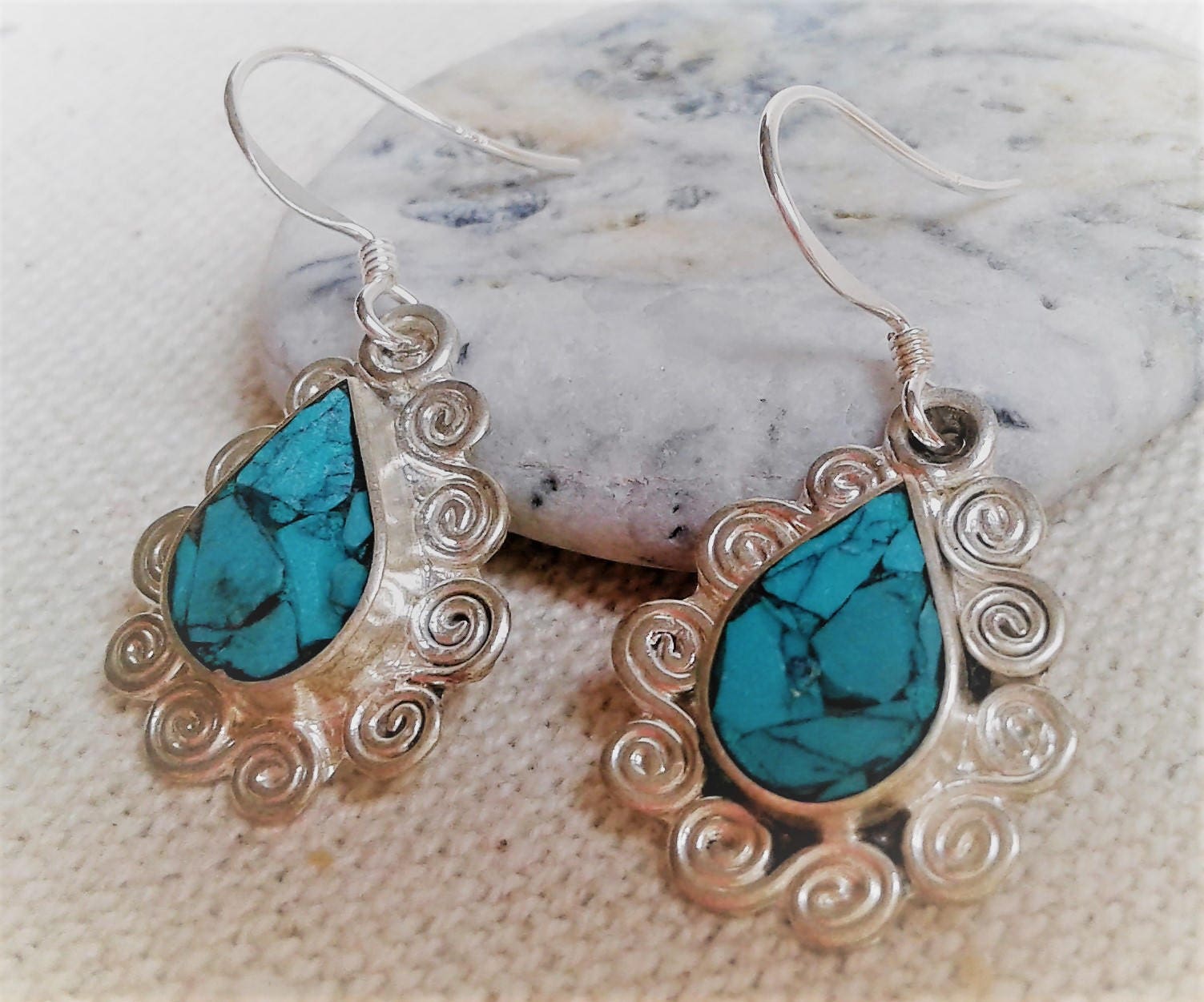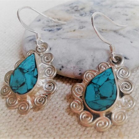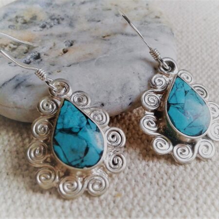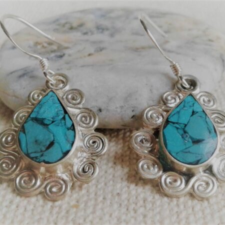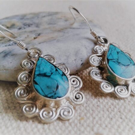 Boucles d’oreilles ethniques Turquoise Népal-Bohème- Bijoux Pierre