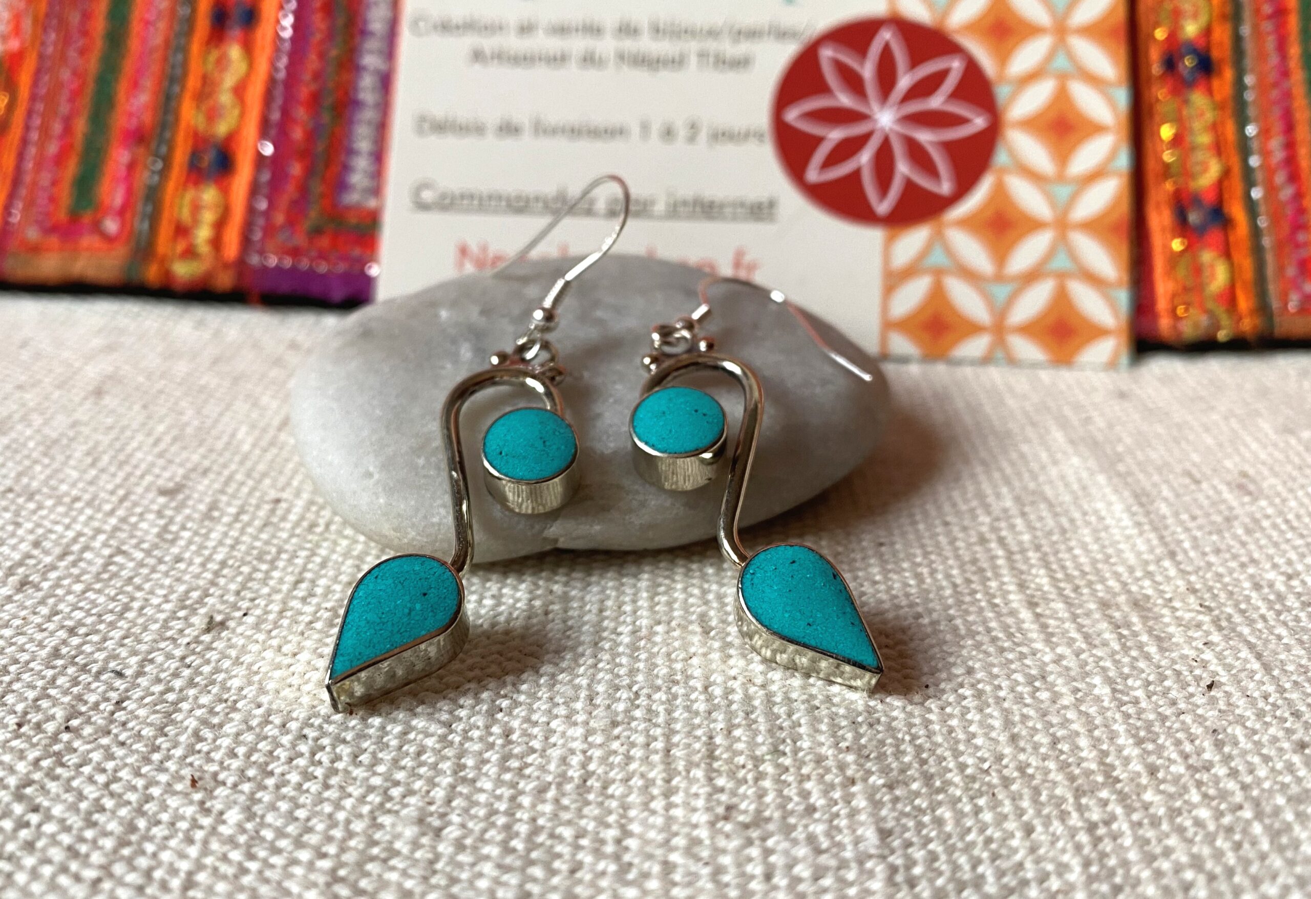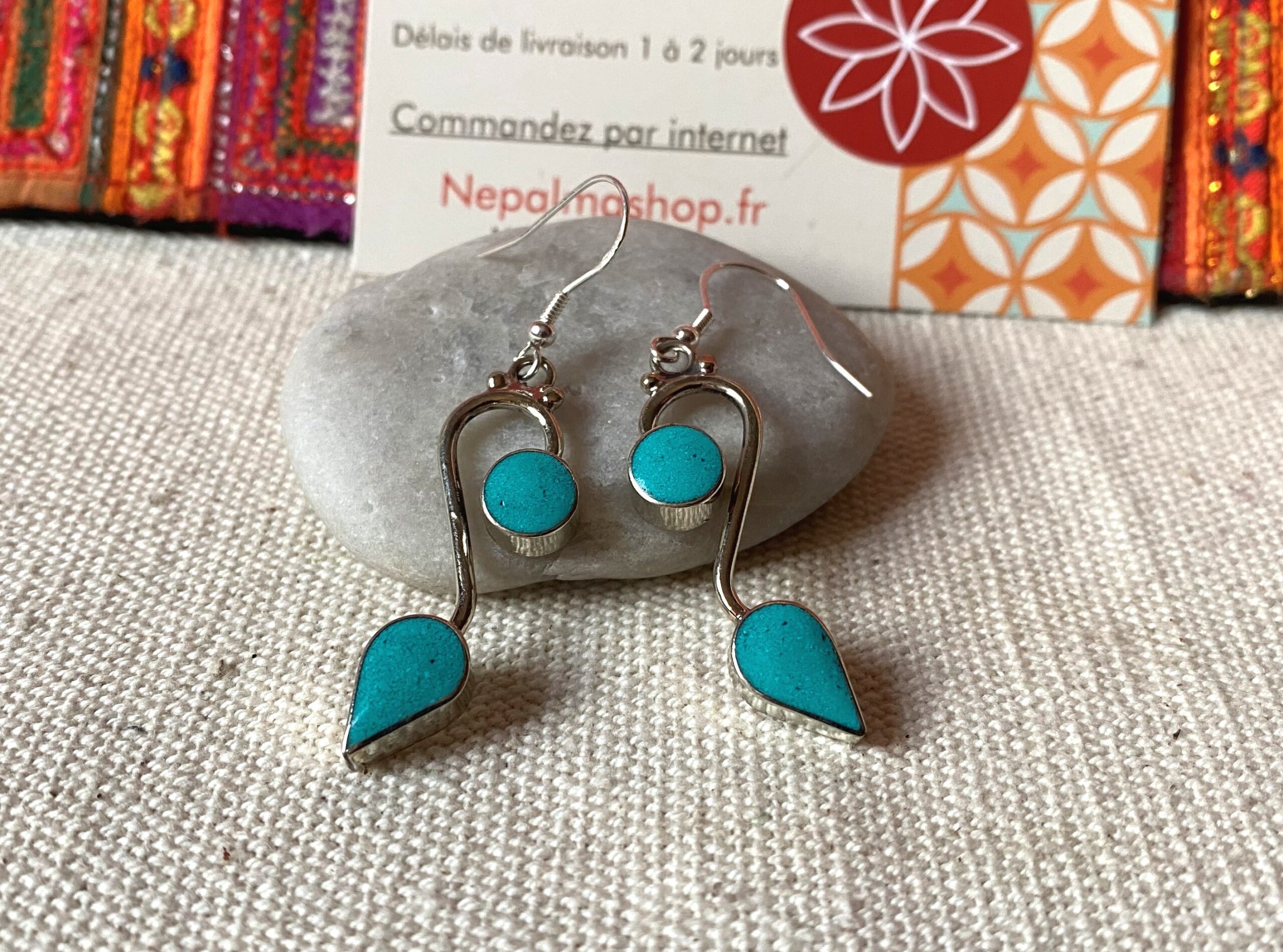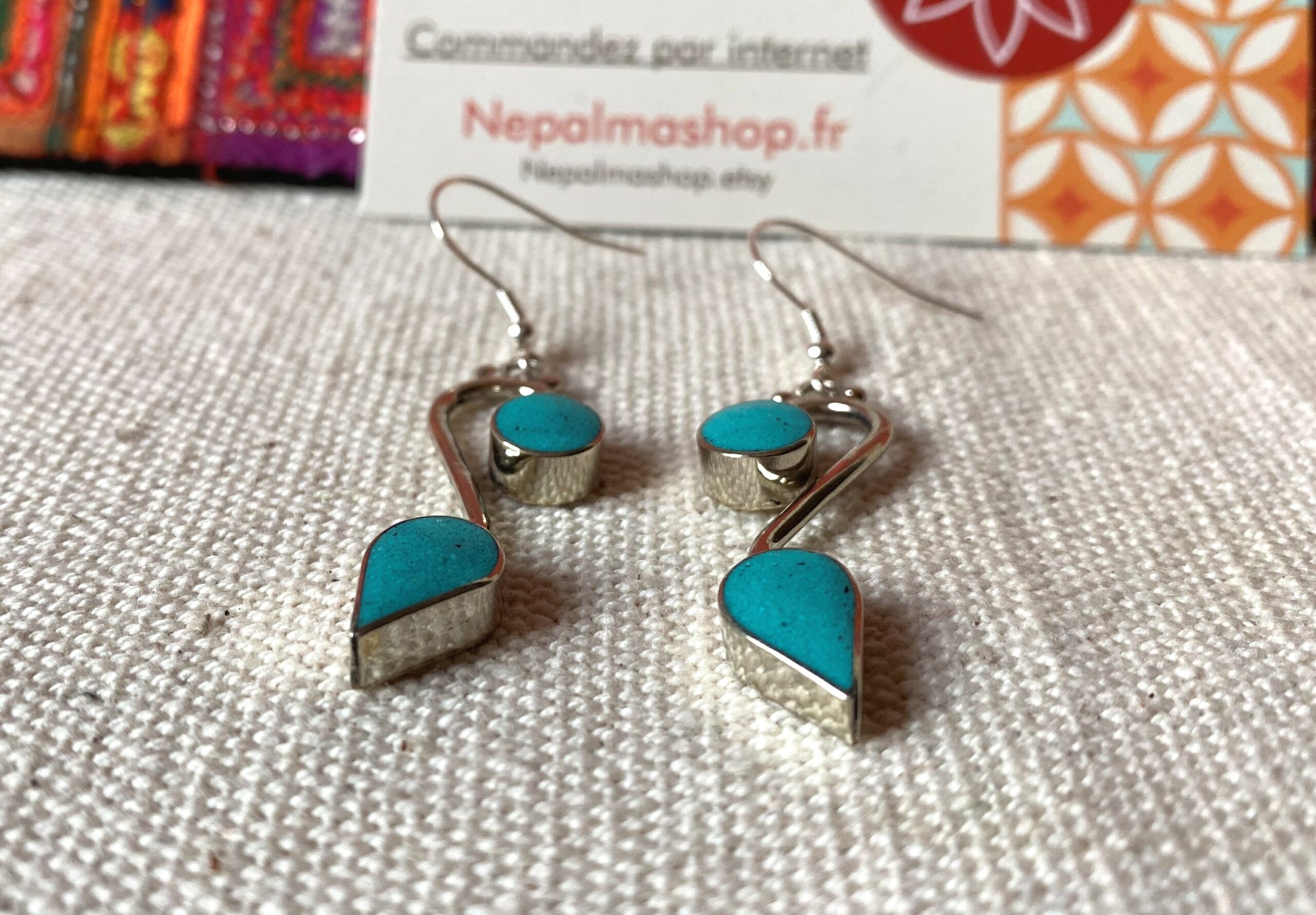 Boucles d’oreilles Népal Tibet Turquoise ou Lapis Lazuli