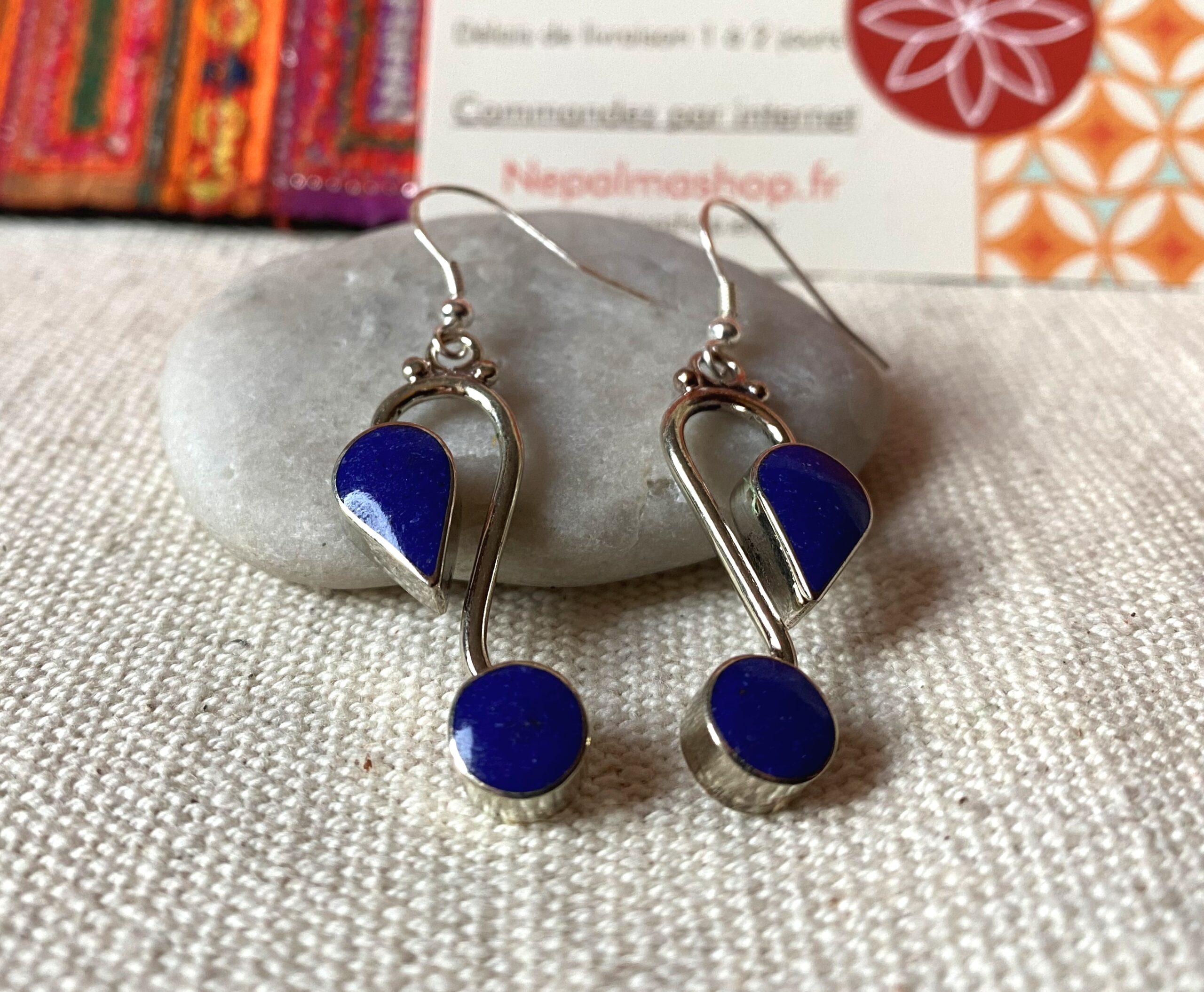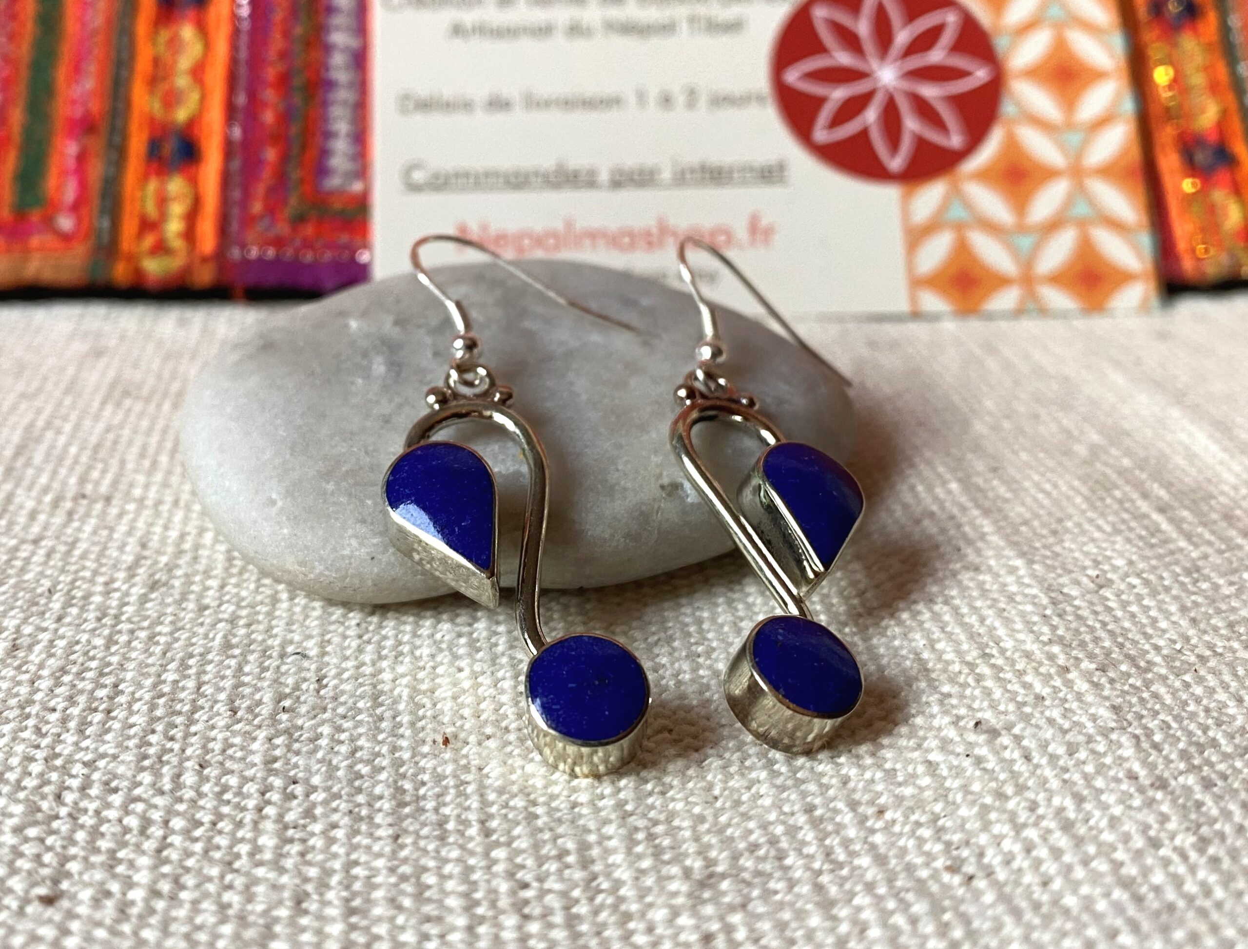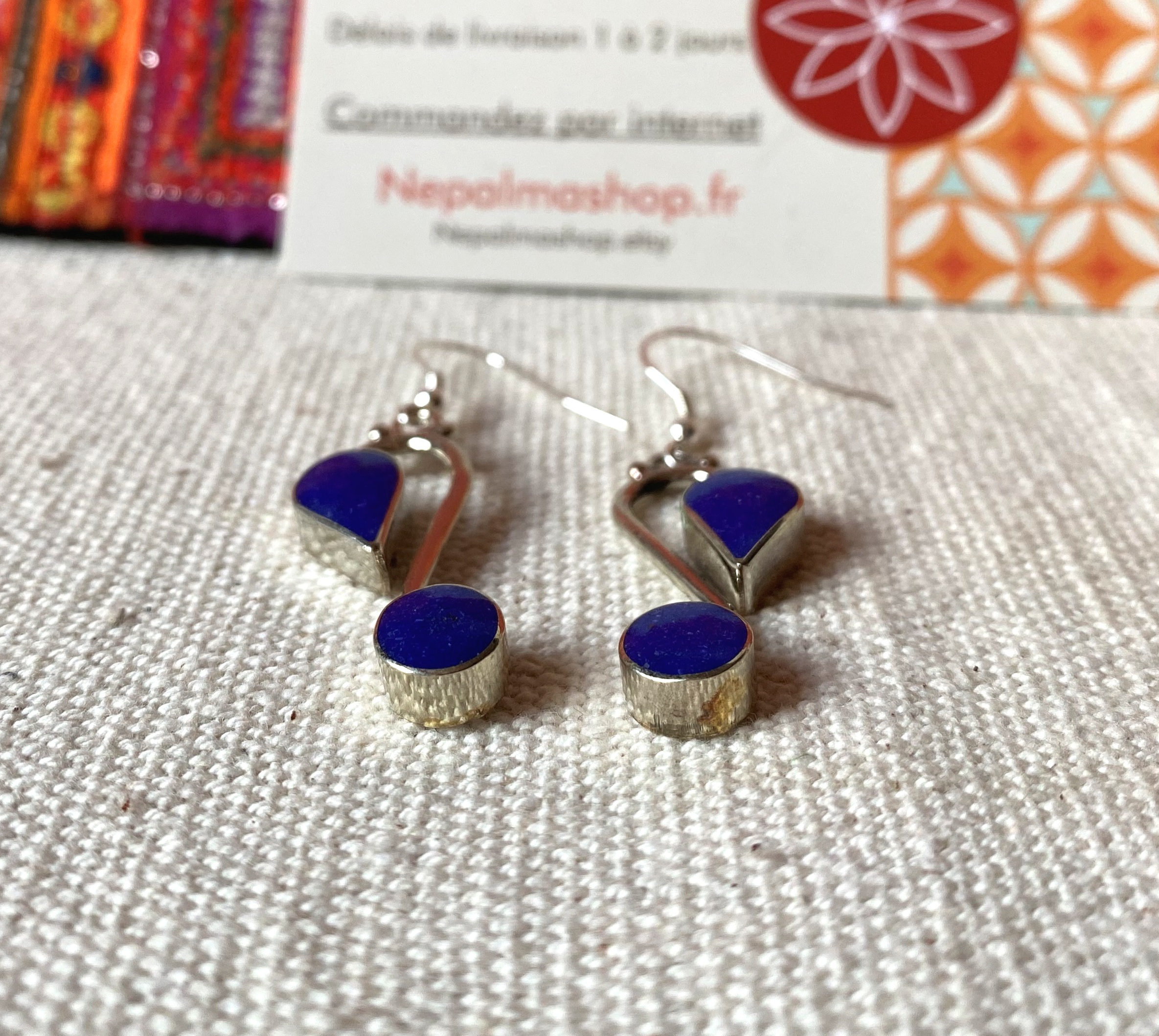 Boucles d’oreilles Népal Tibet Turquoise ou Lapis Lazuli