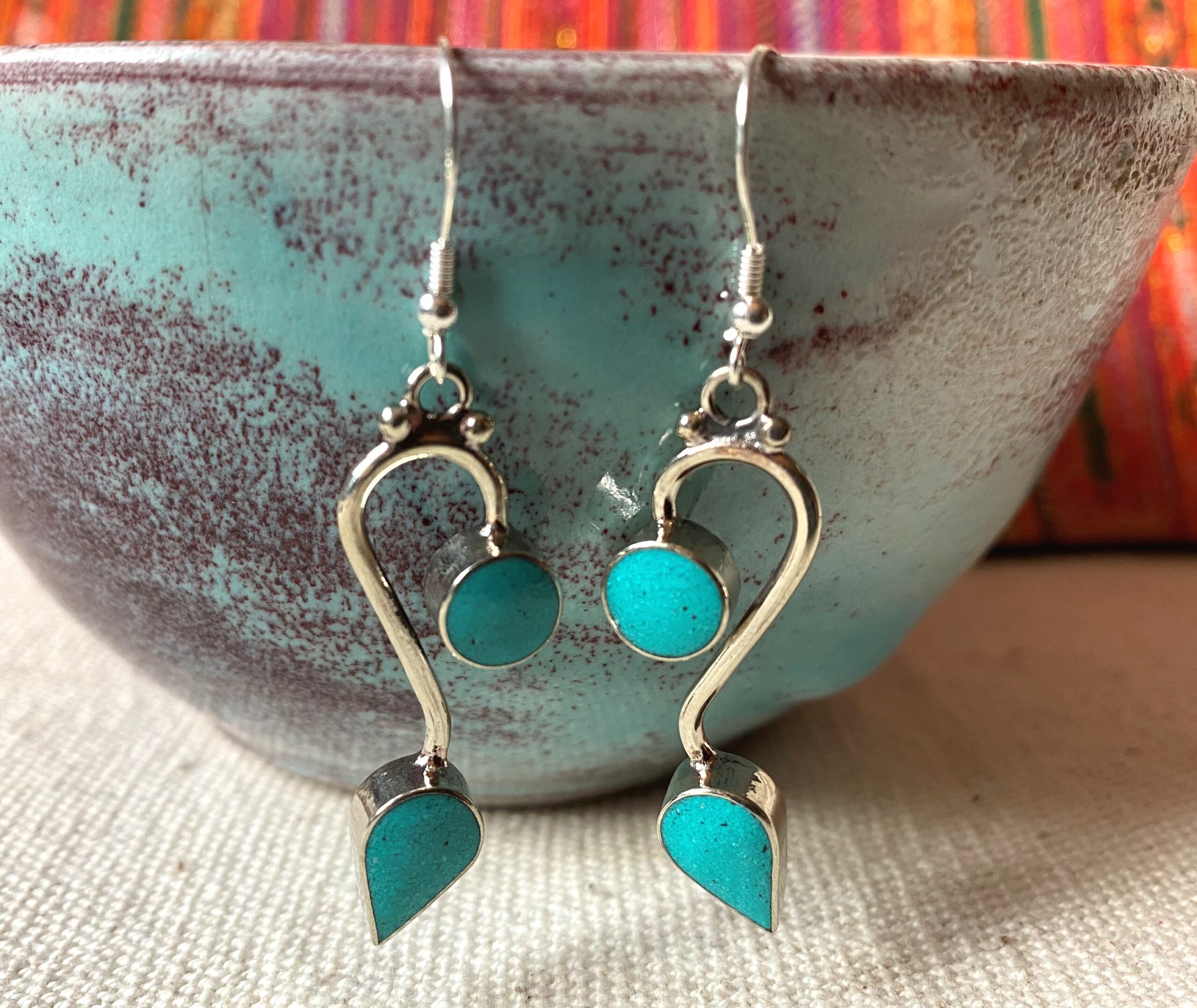 Une très belle paire de boucles d’oreilles composée d’argent tibétain, de Turquoise ou Lapis Lazuli (à choisir en option).