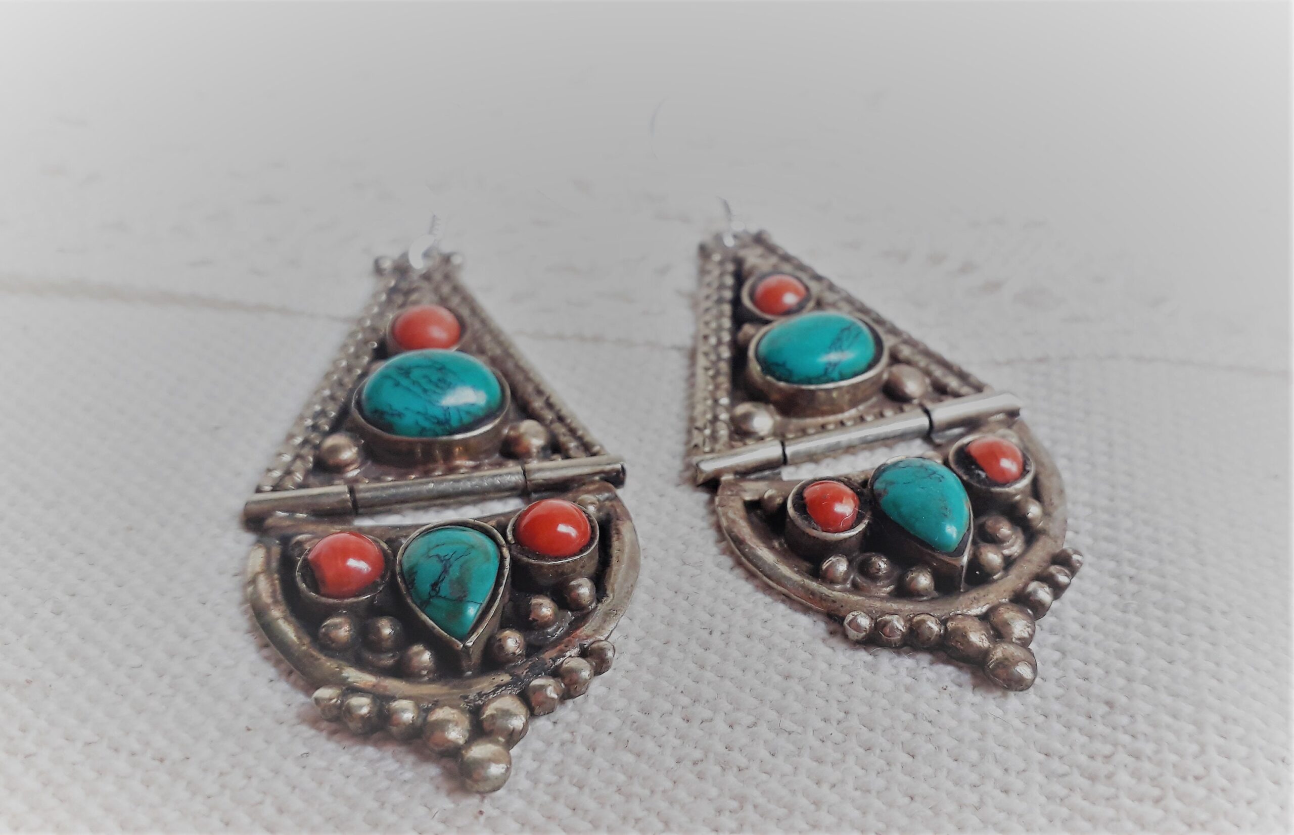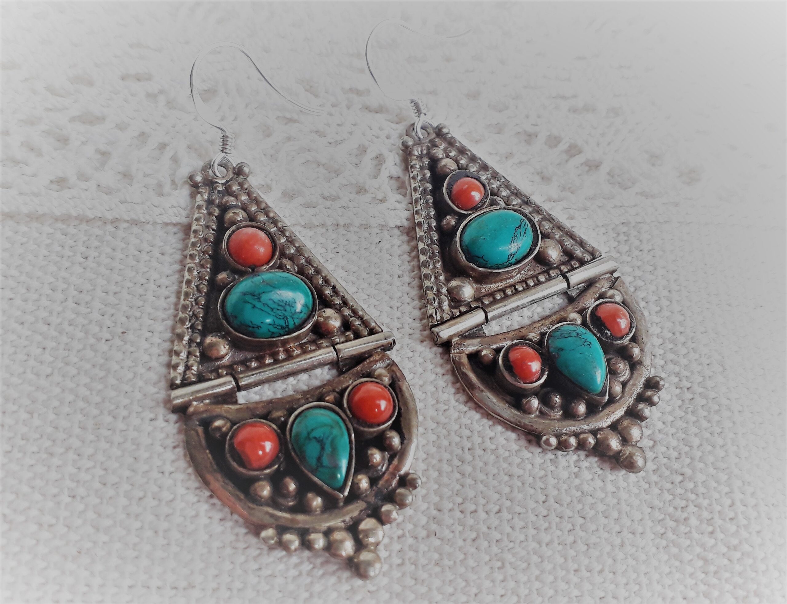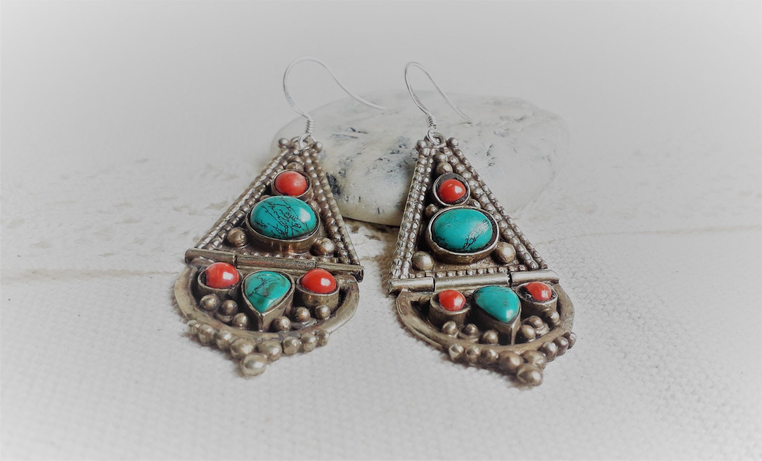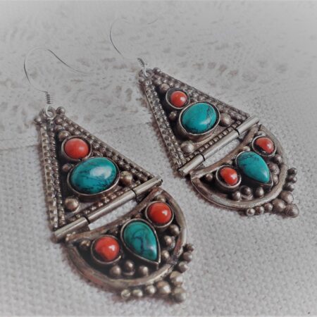 Cette paire de Boucles d’oreilles est inspirée de Bijoux traditionnels Tibétains, modèle unique !