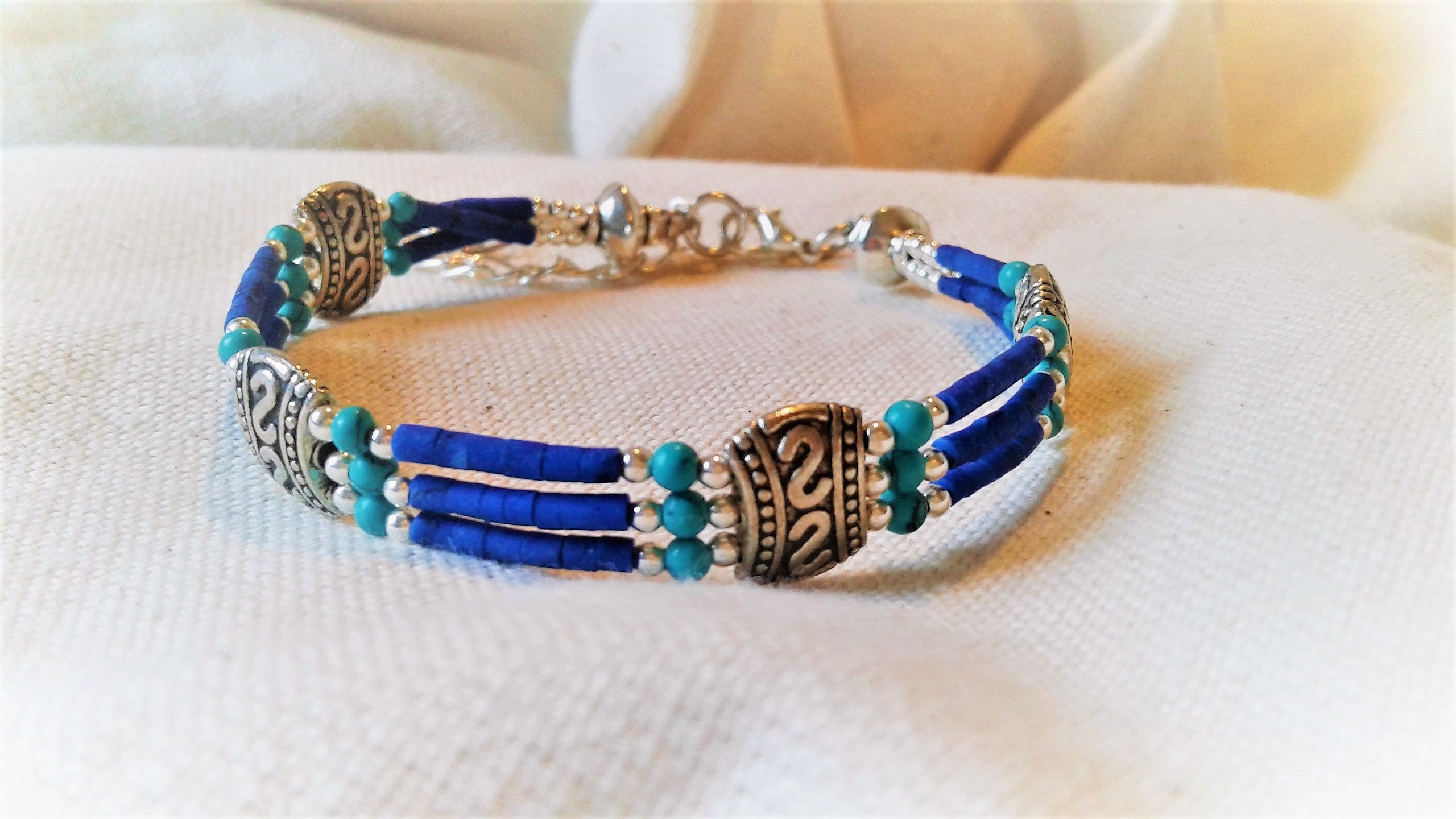 Bracelet Pierres fines Lapis Lazuli-Bijoux Népal Tibet