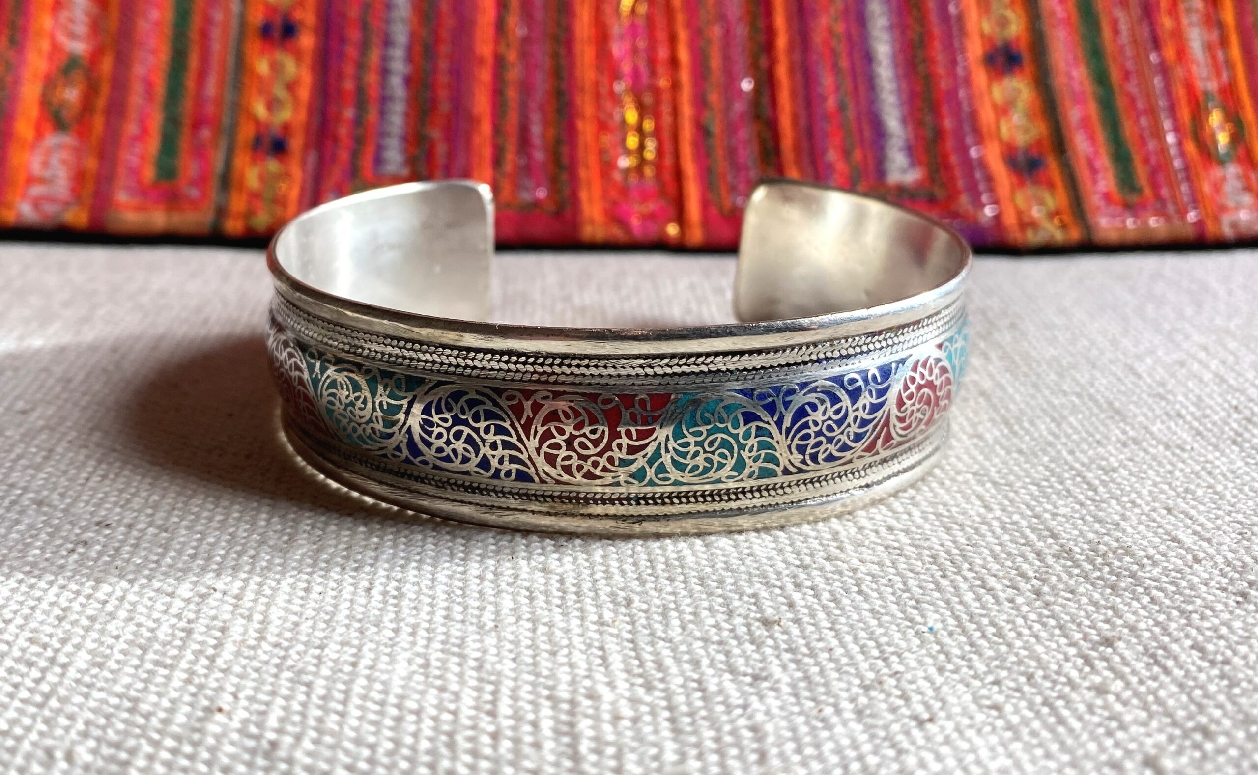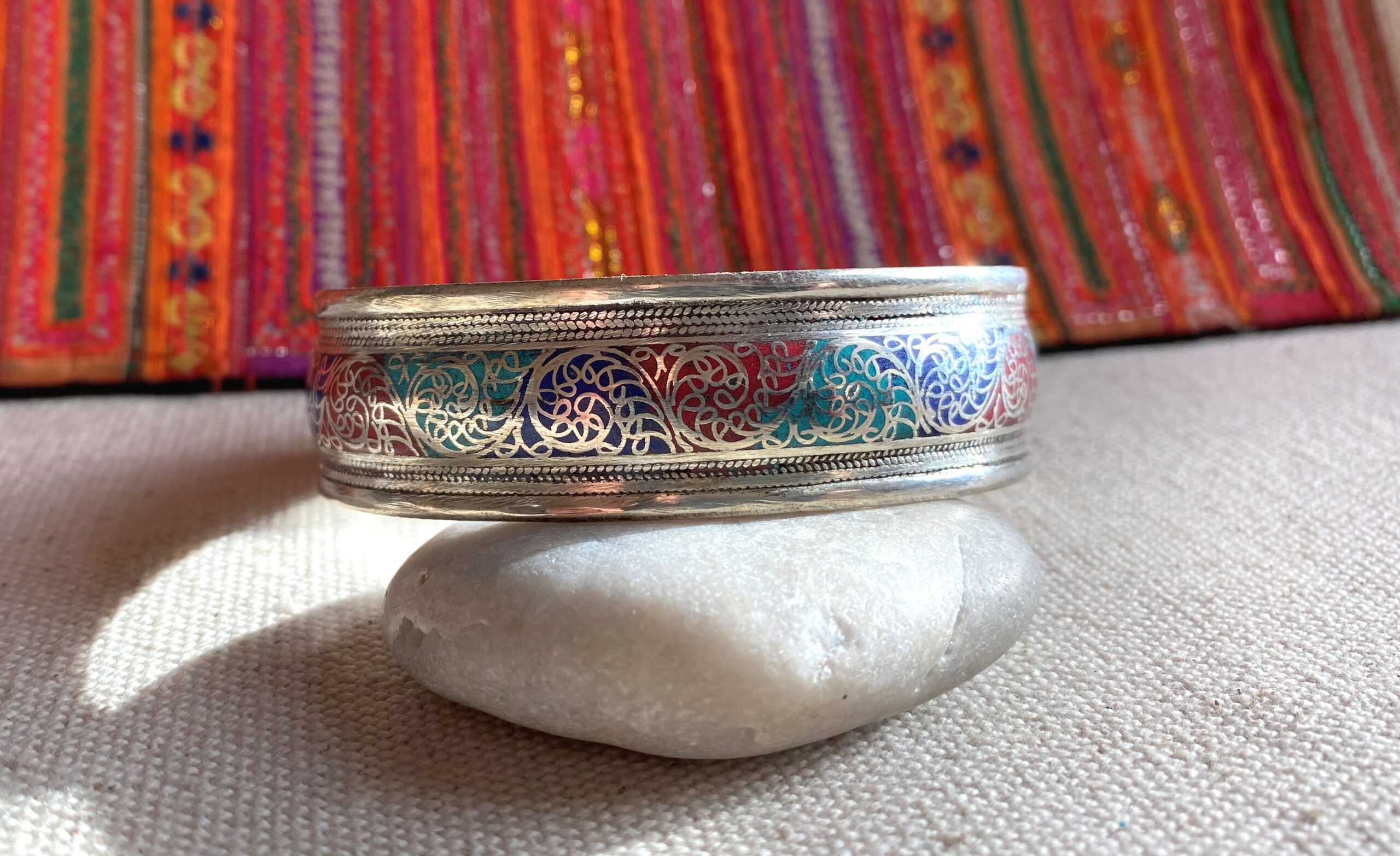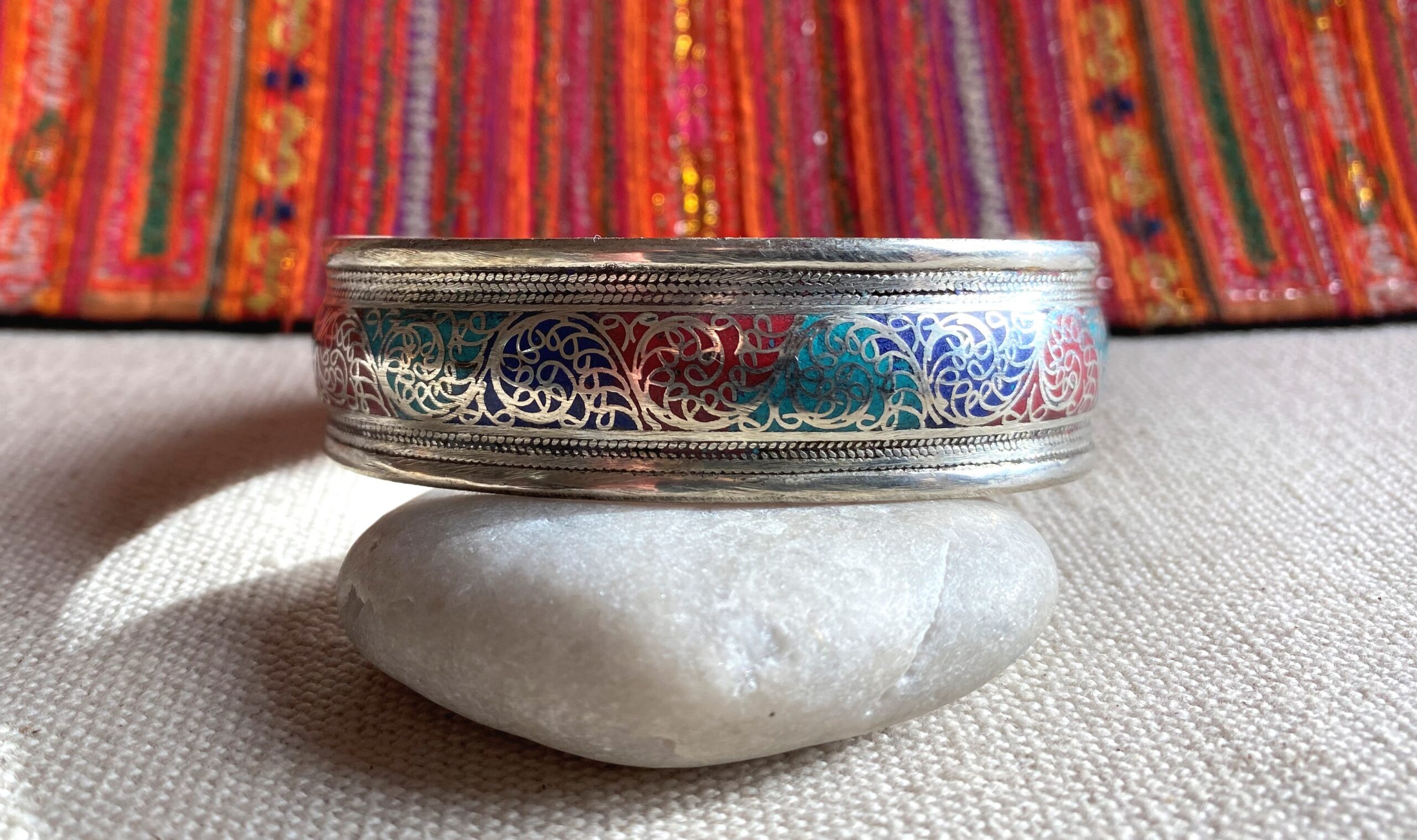 Bracelet Manchette ethnique Népalais- 3 pierres