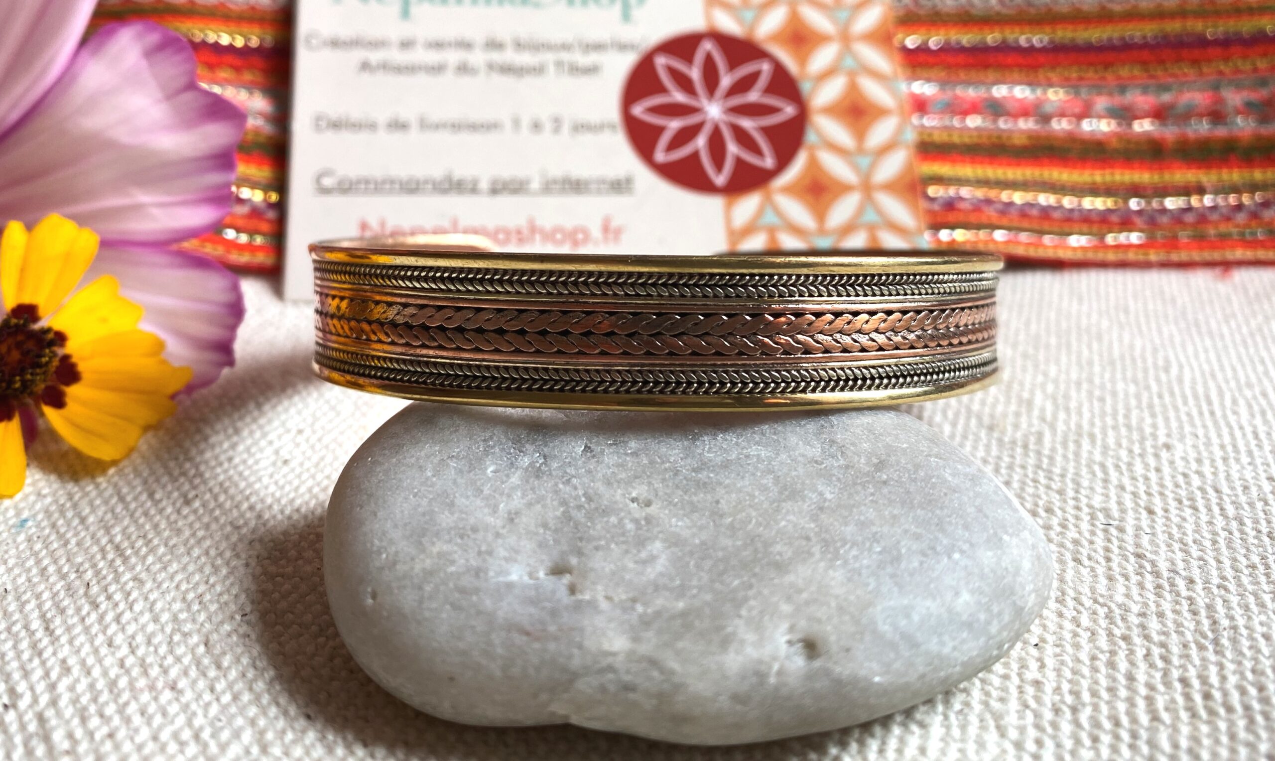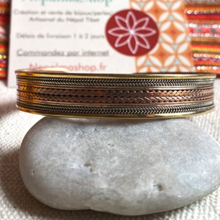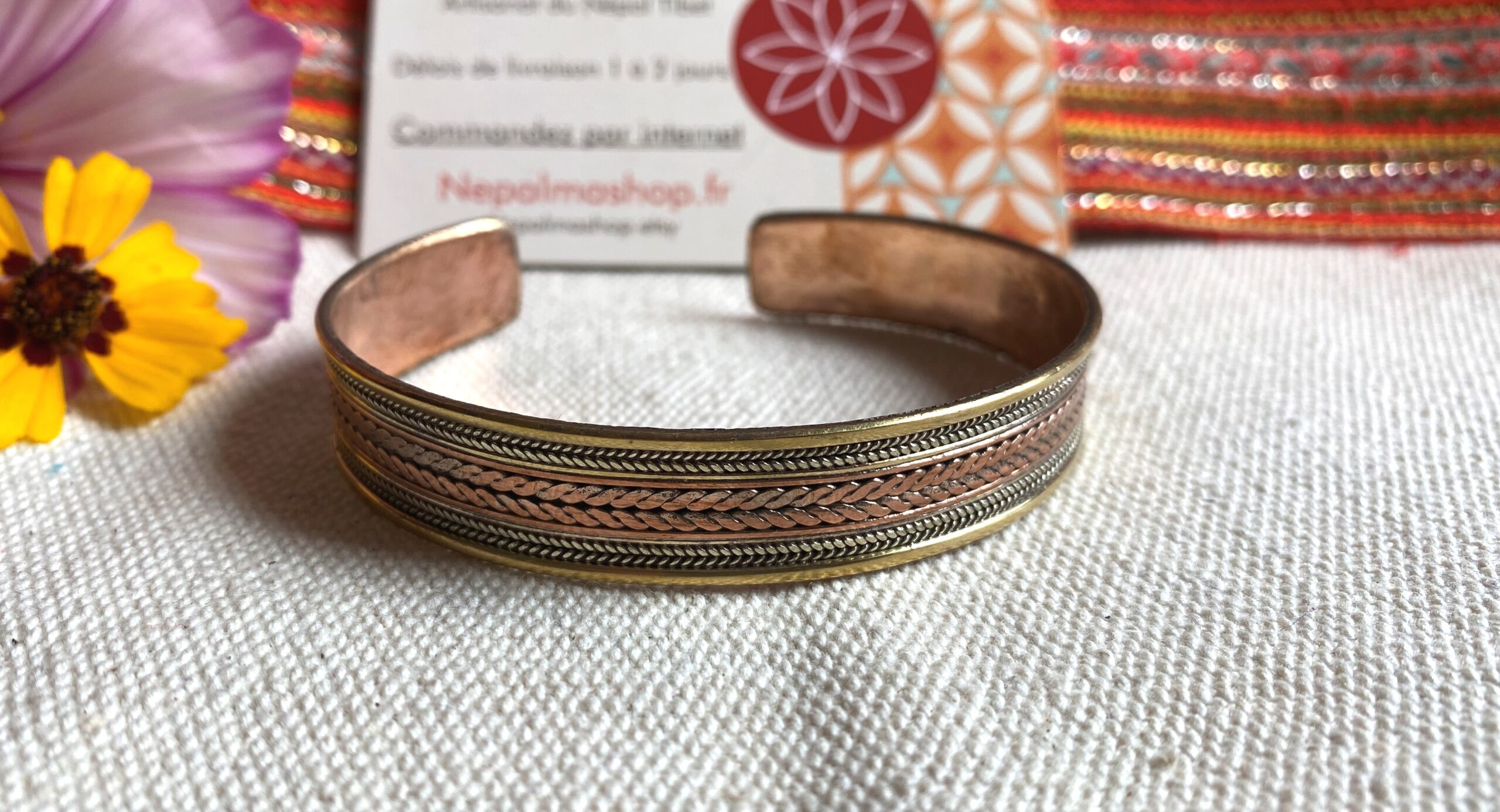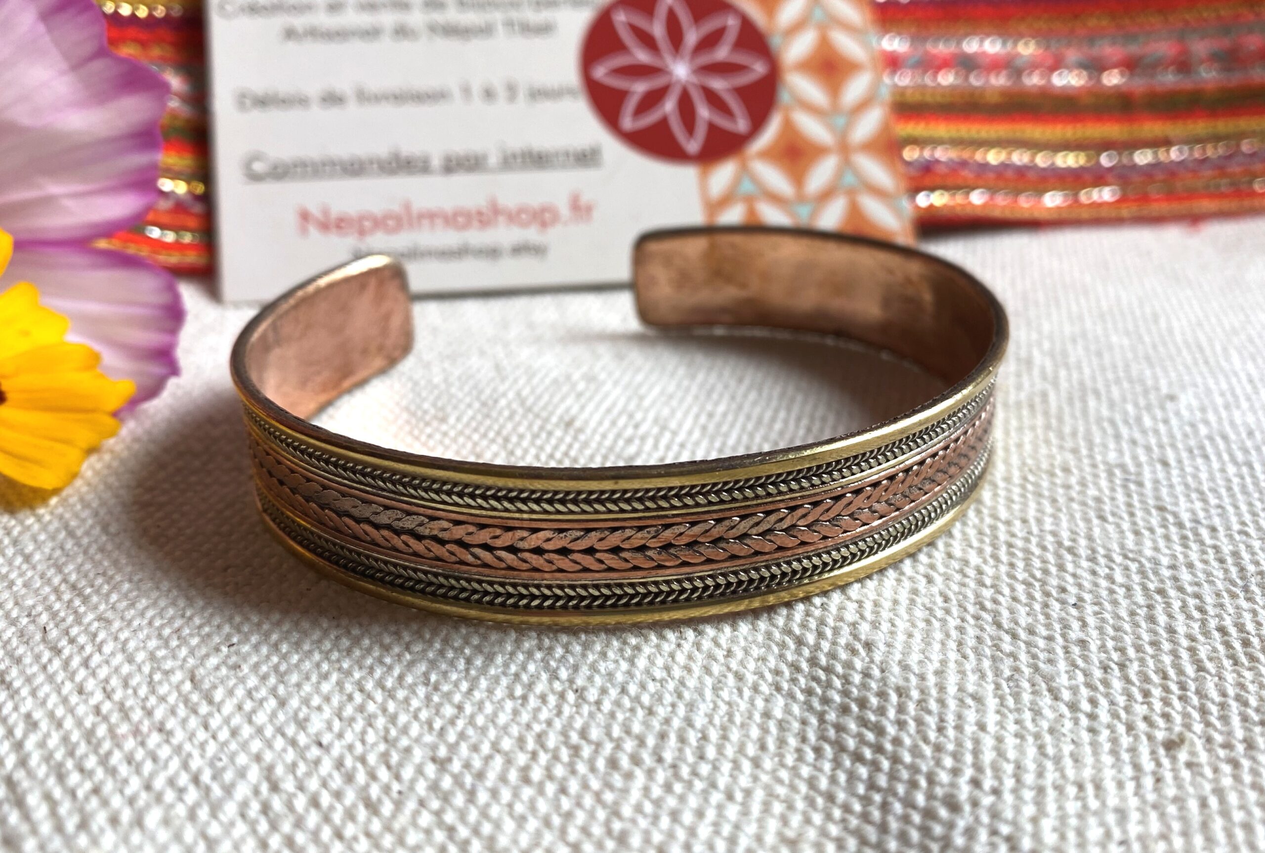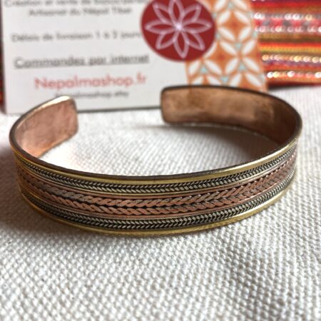 Un très beau bracelet manchette en cuivre, Laiton et Argent. Il est entièrement réalisé à la main, un travail d’une grande précision, une très belle qualité !