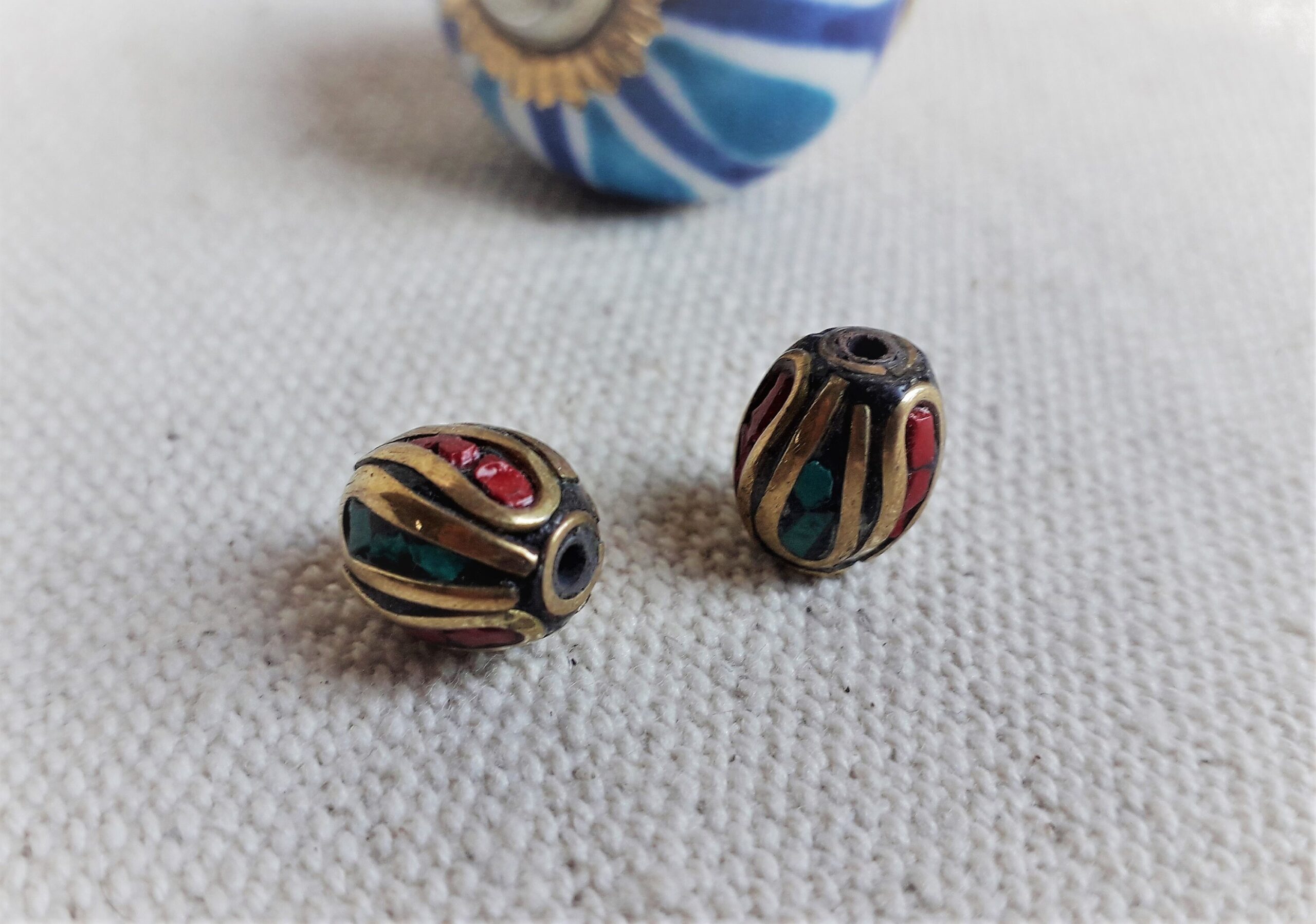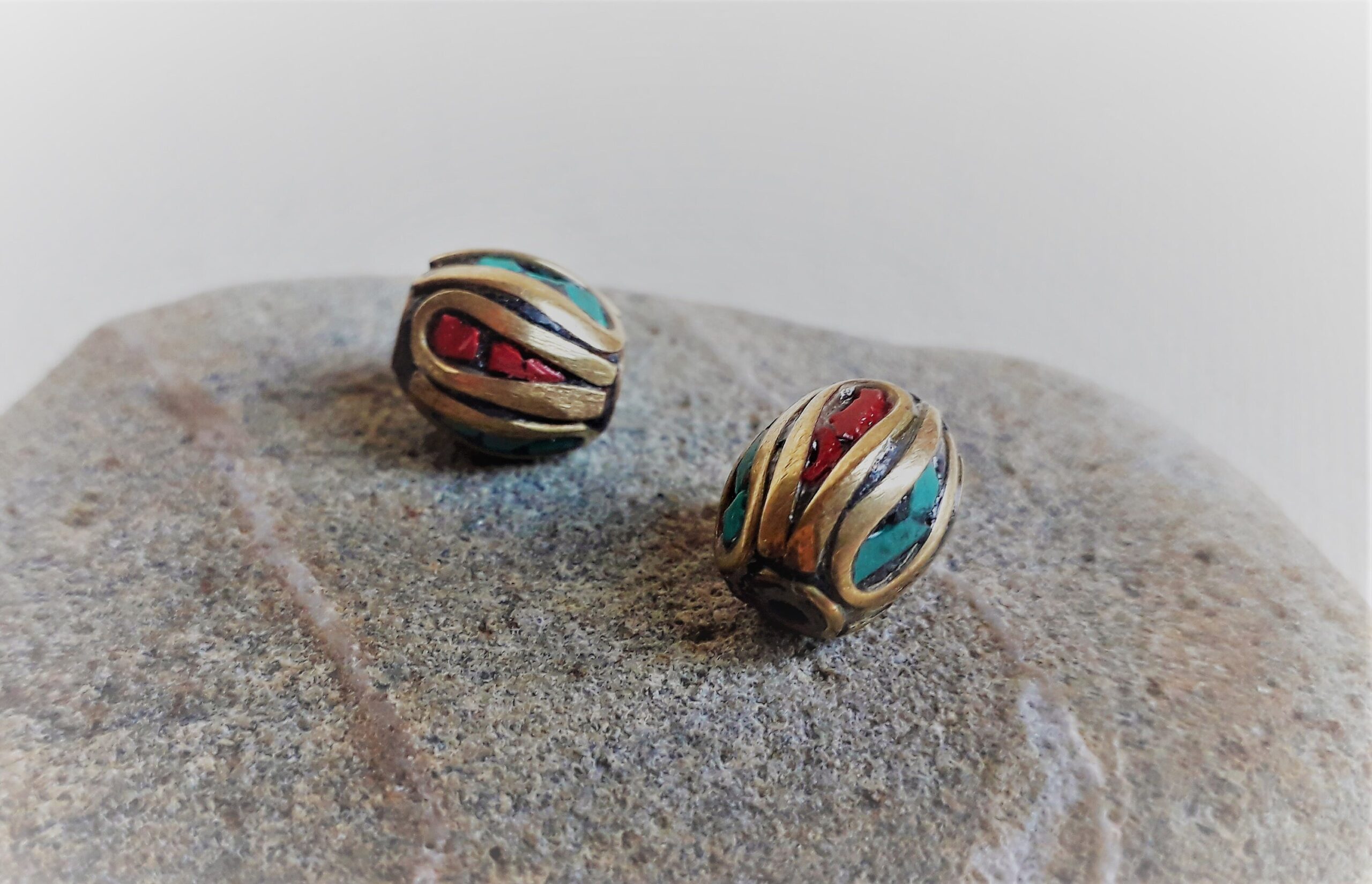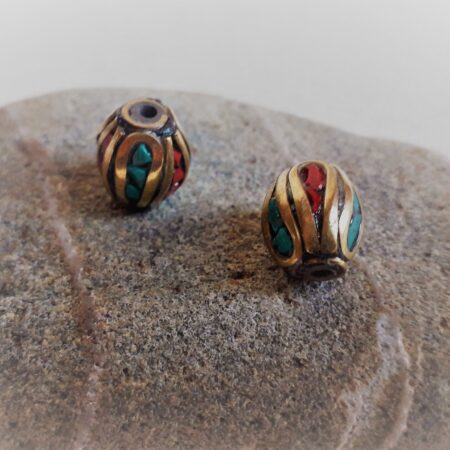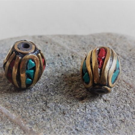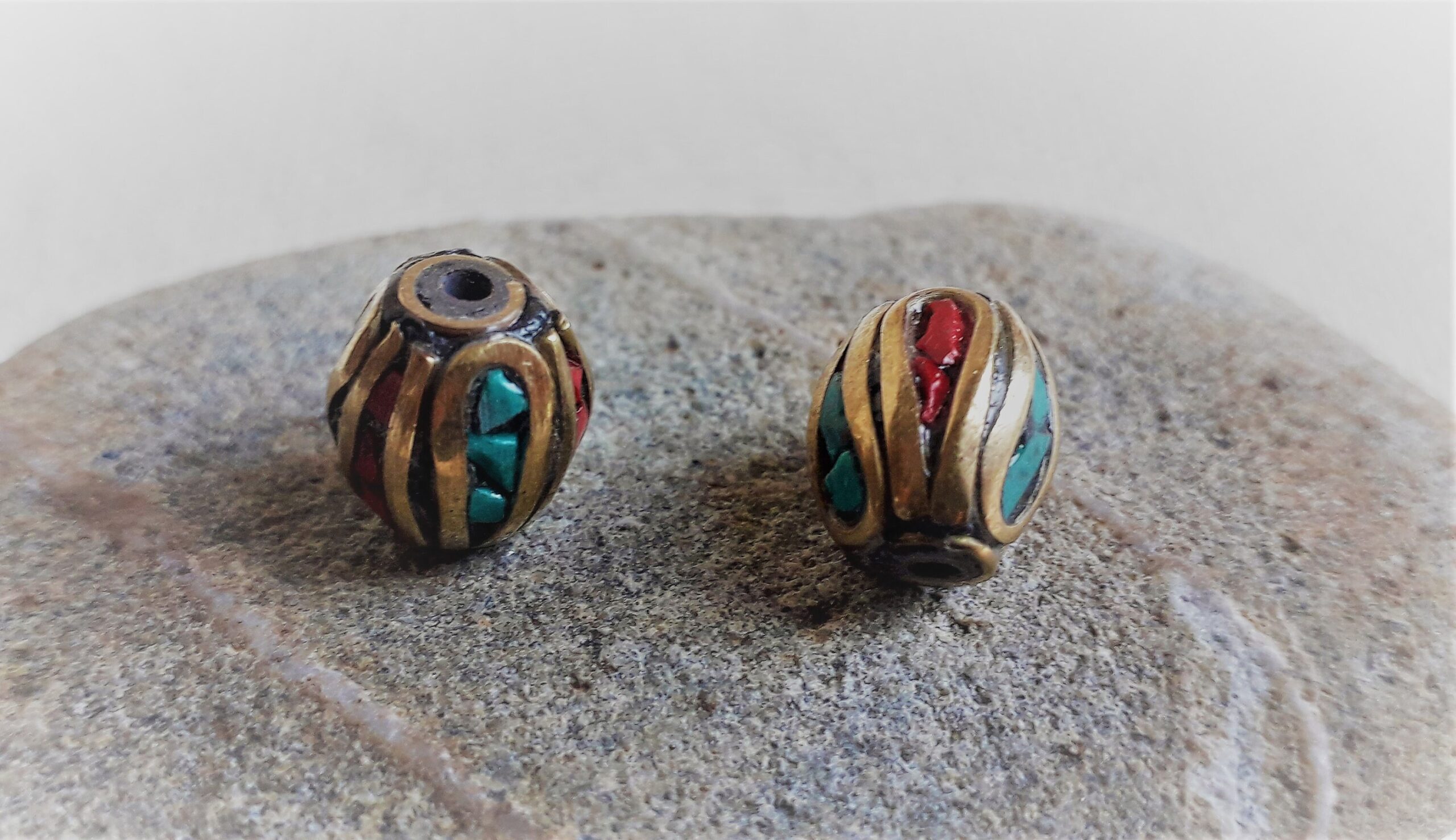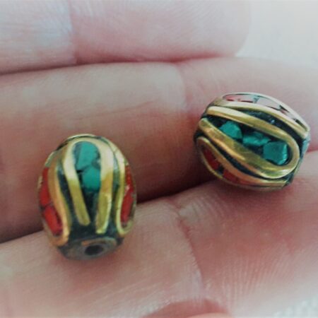 Lot de perles traditionnelles du Népal Tibet travaillées avec de la turquoise, du Corail et du laiton.