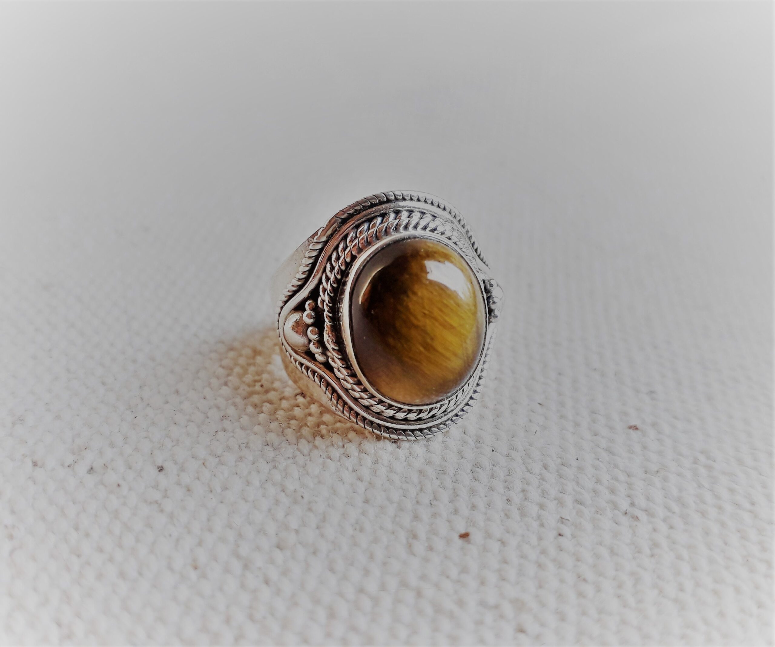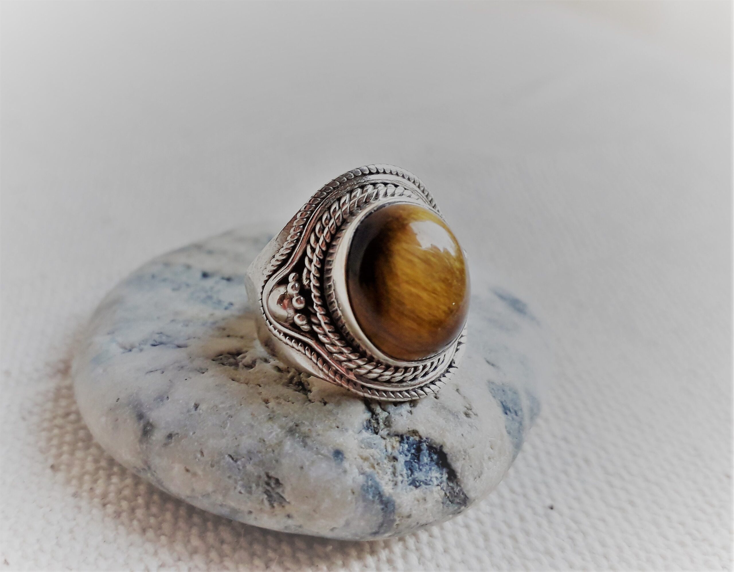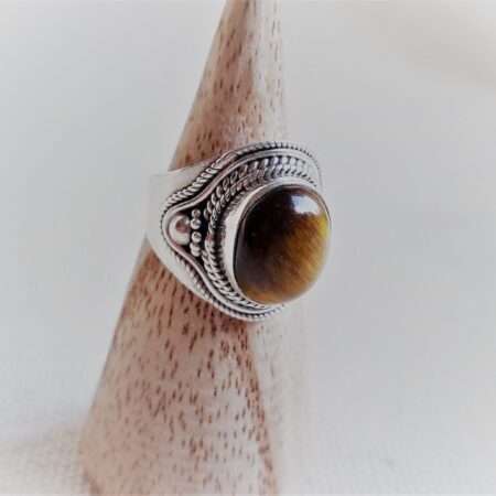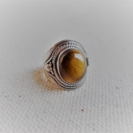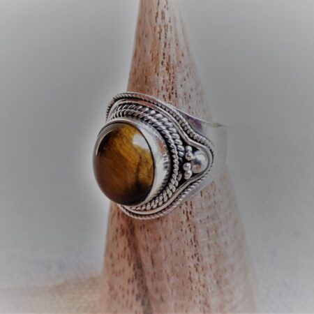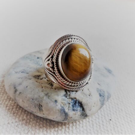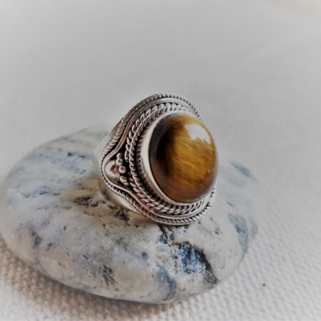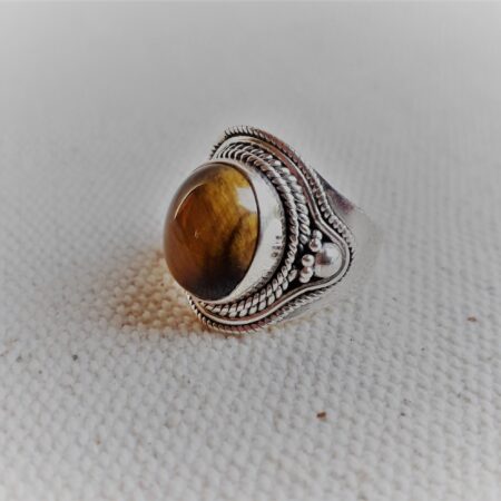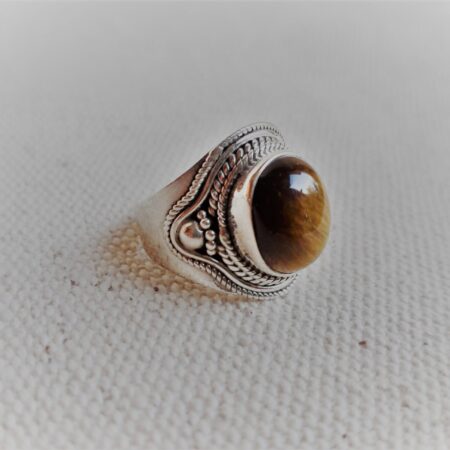 Grande Bague Argent 925 Pierre Oeil de Tigre-Bague Népal Tibet-Bohème-Bijoux du Monde-Bijoux ethniques