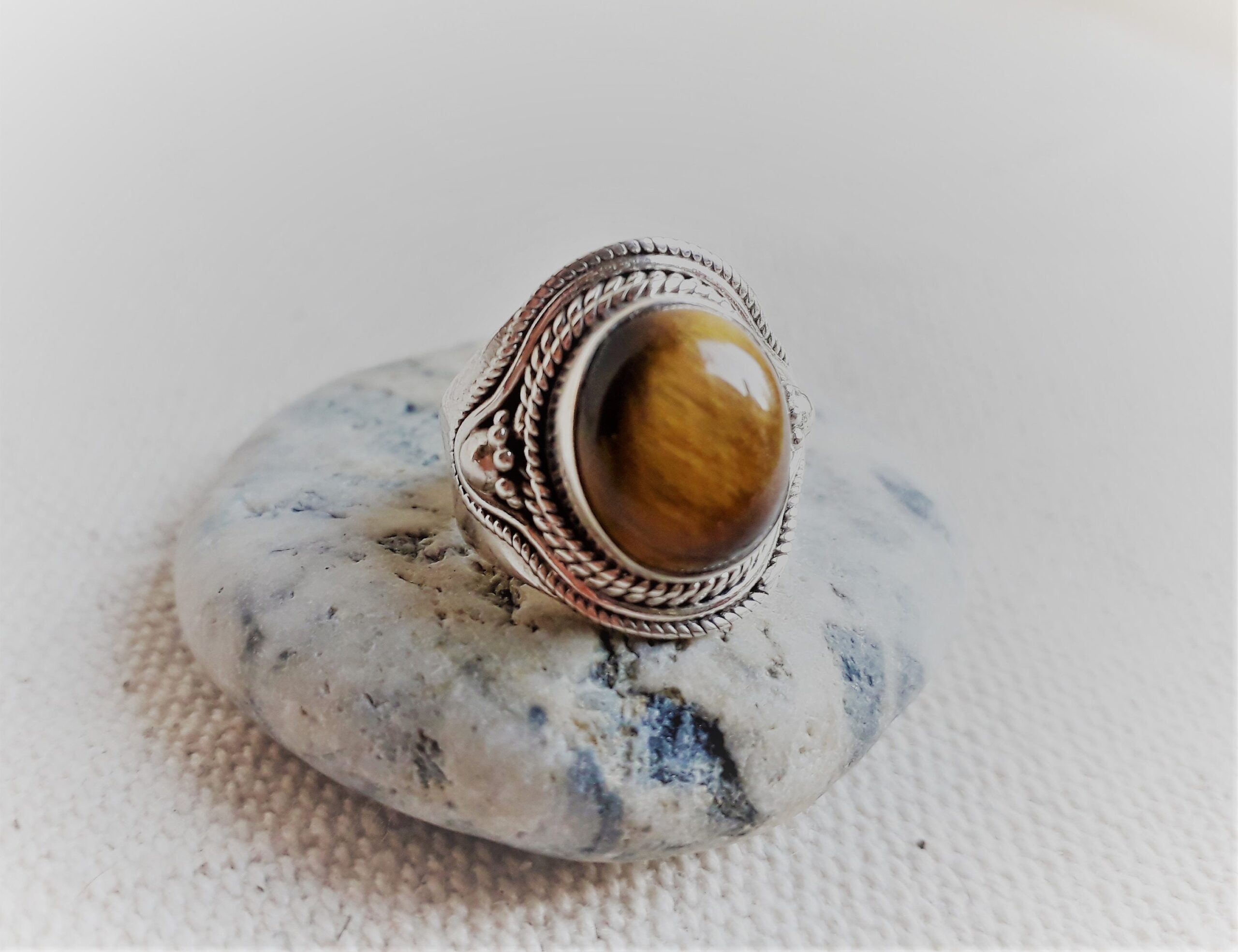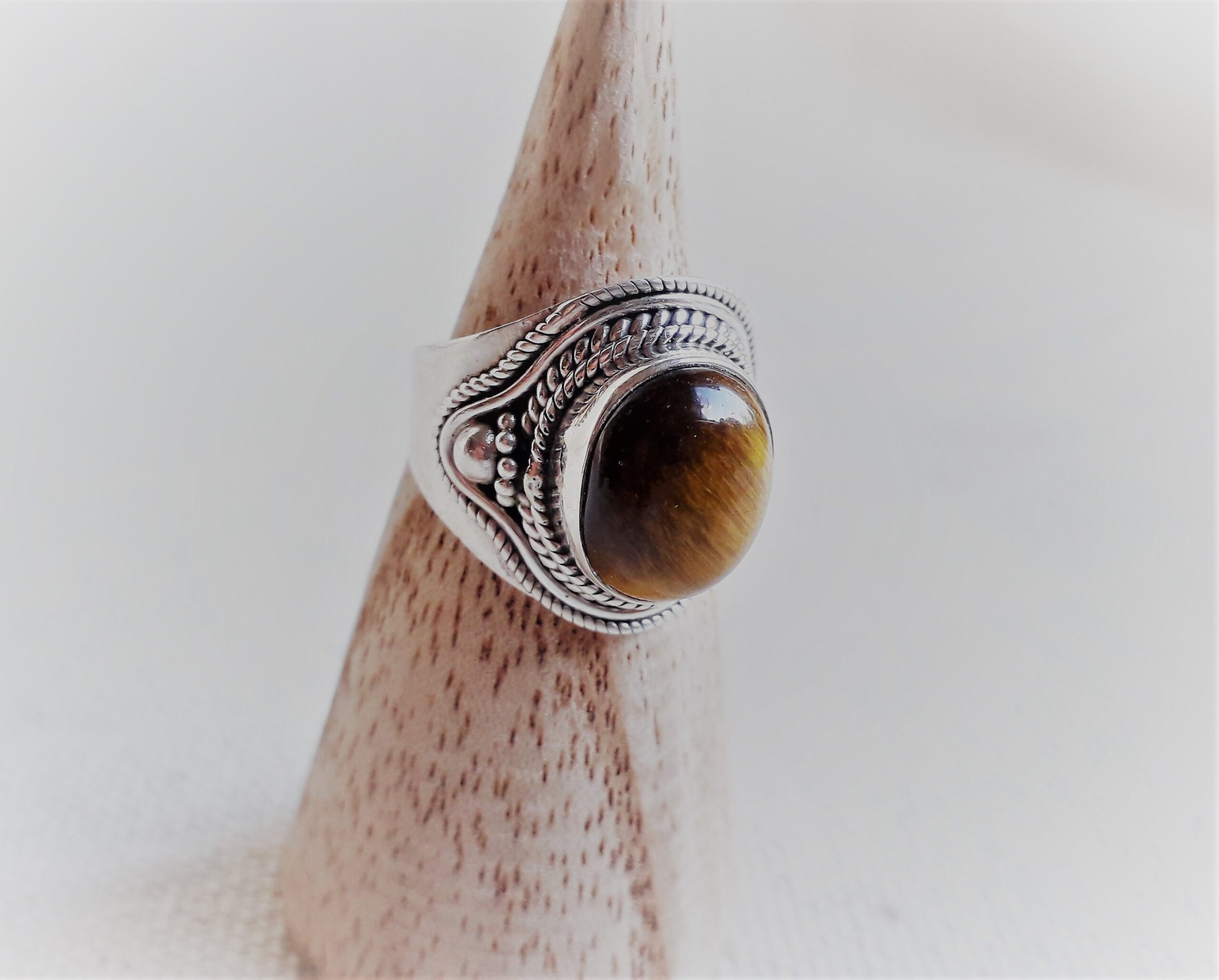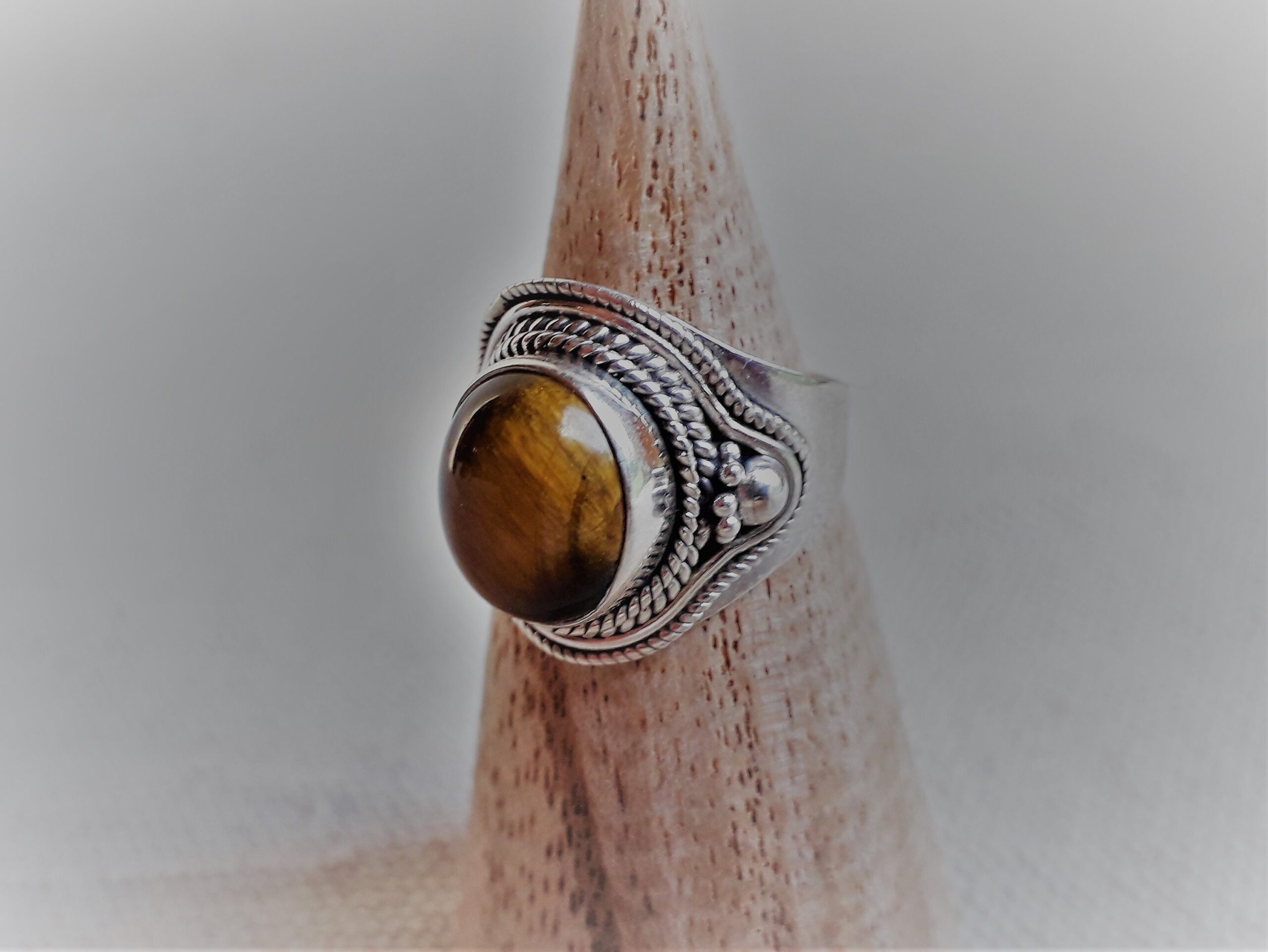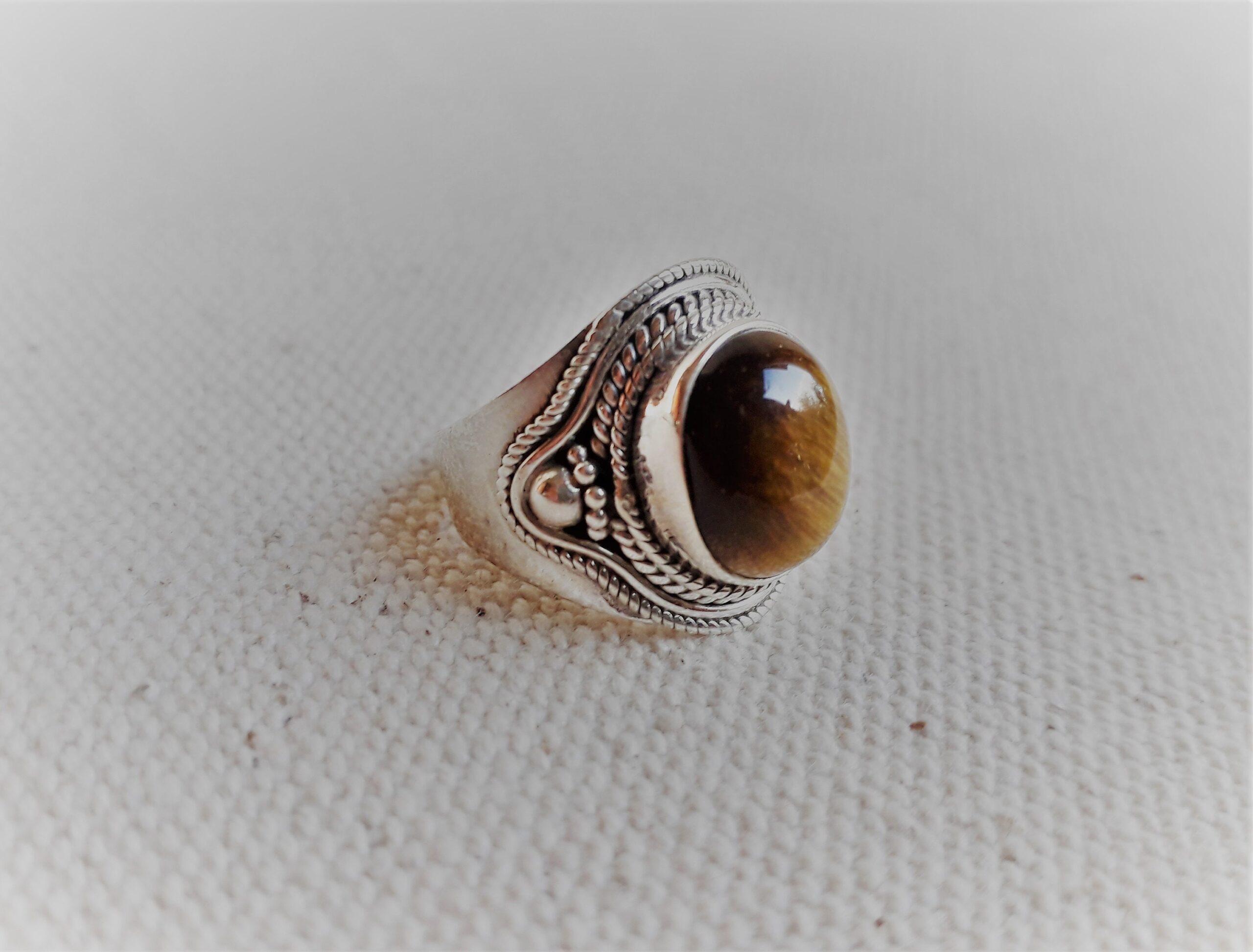 Grande Bague Argent 925 Pierre Oeil de Tigre-Bague Népal Tibet-Bohème-Bijoux du Monde-Bijoux ethniques