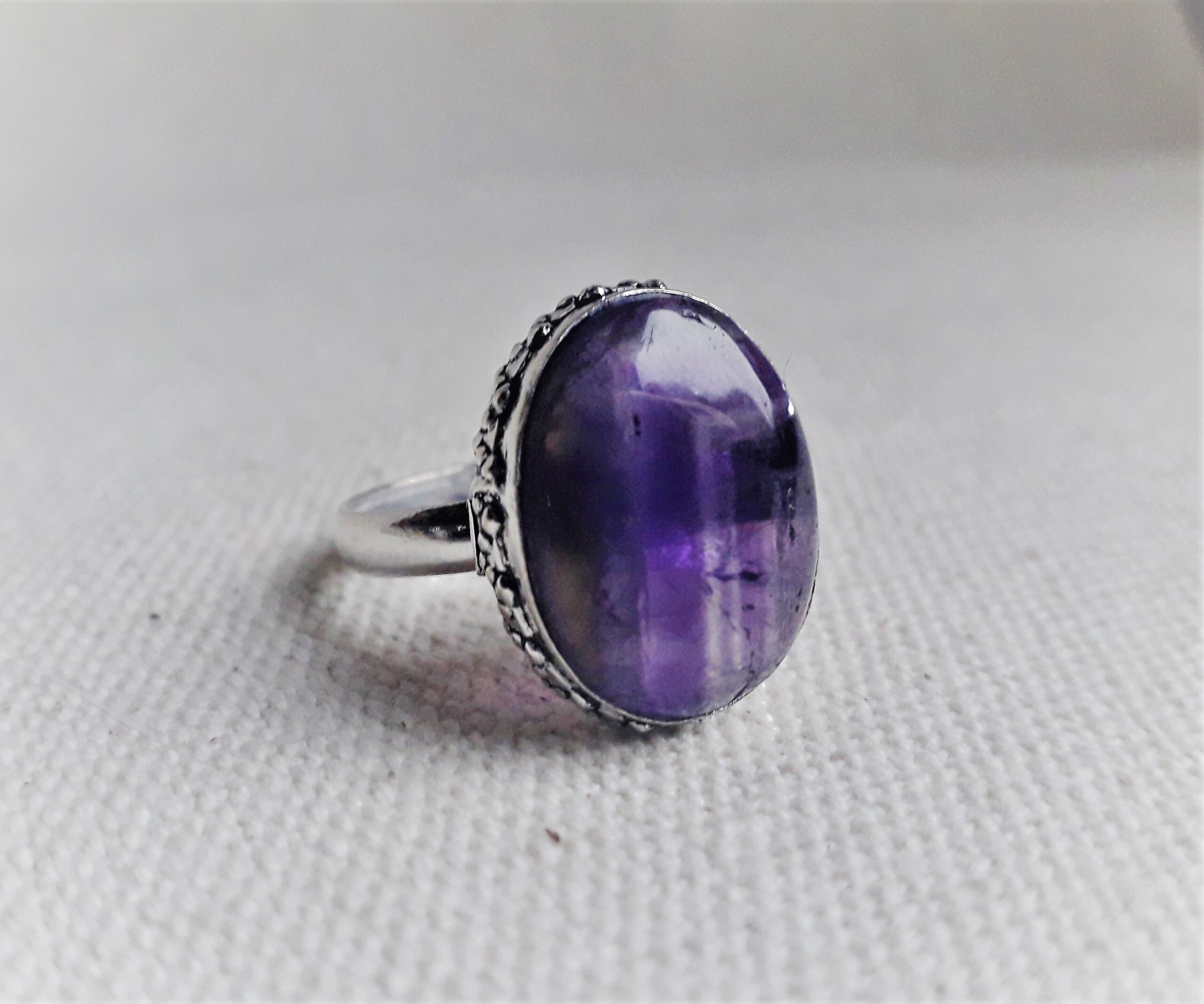 Grande Bague Ethnique – Bague Améthyste- Bague pierre-Bijoux Bohème-Bijoux du Monde-Nepalmashop