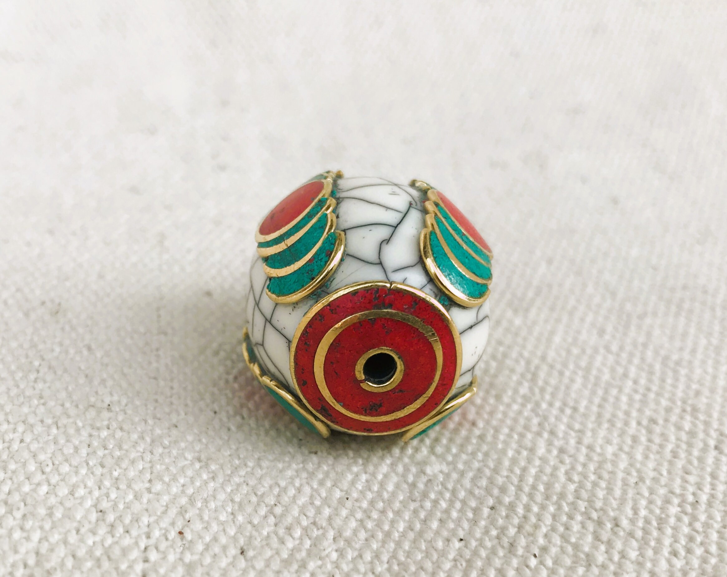 Grande Perle Tibet Népal en Pierre Turquoise Corail