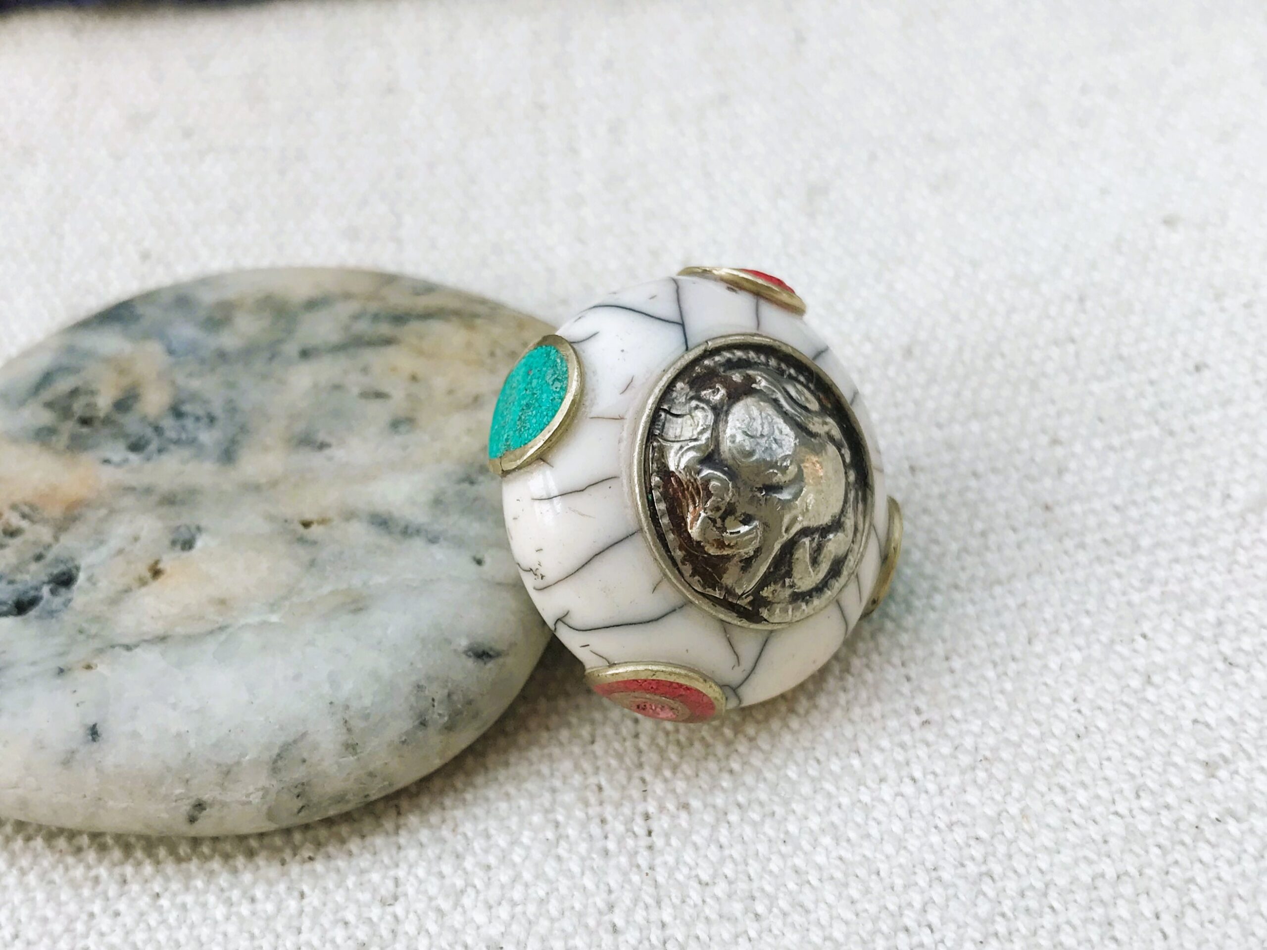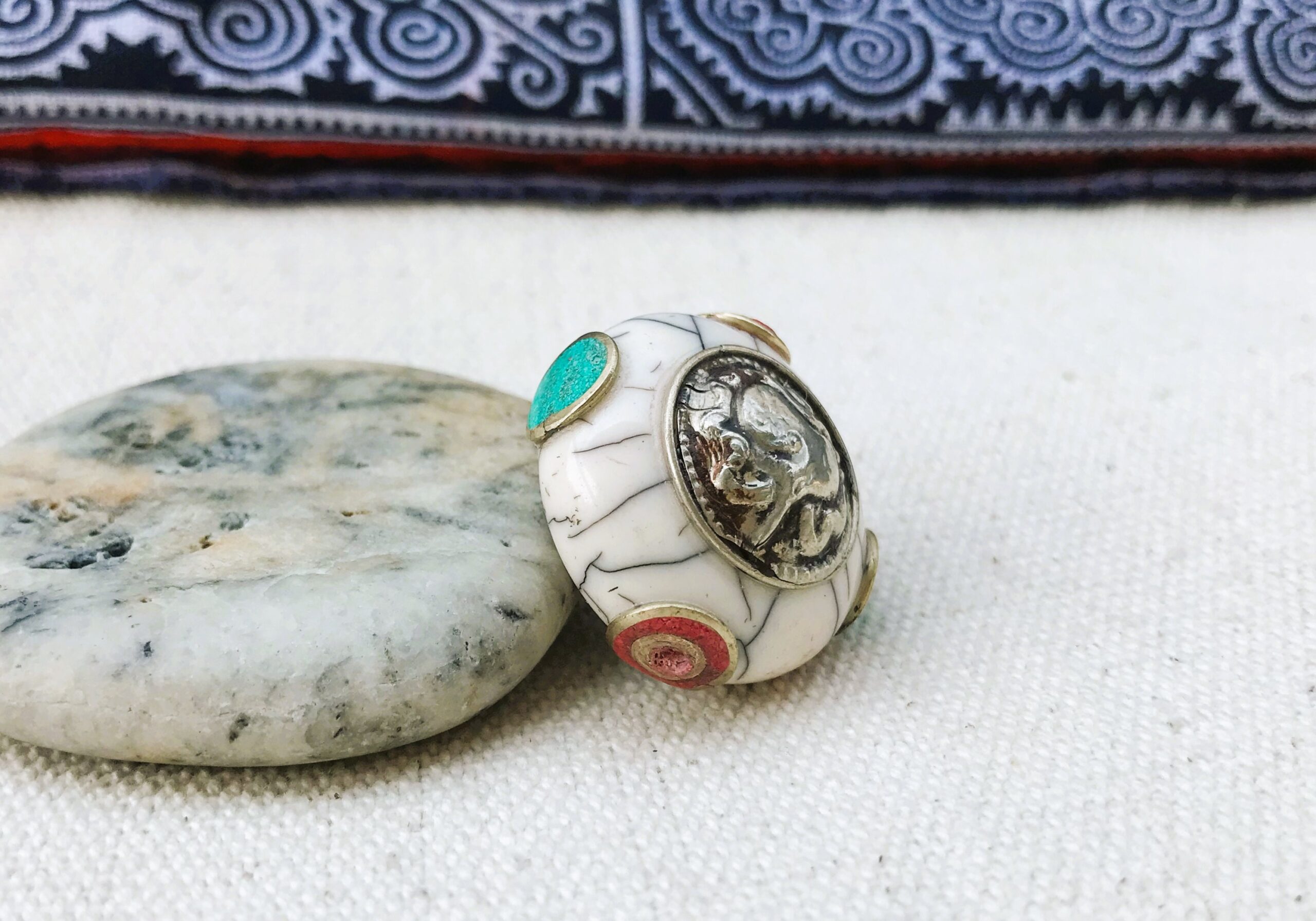 Grande perle du Népal Tibet-Turquoise Corail Résine