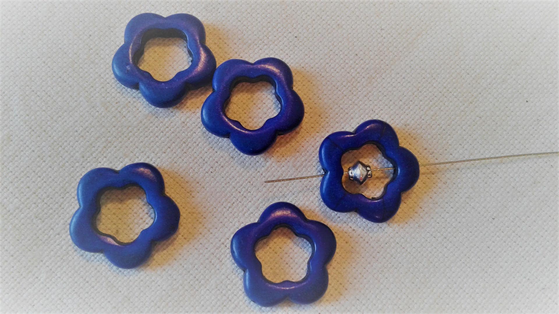 Lot de perles en forme de fleur en Howlite Lapis Lazuli.
