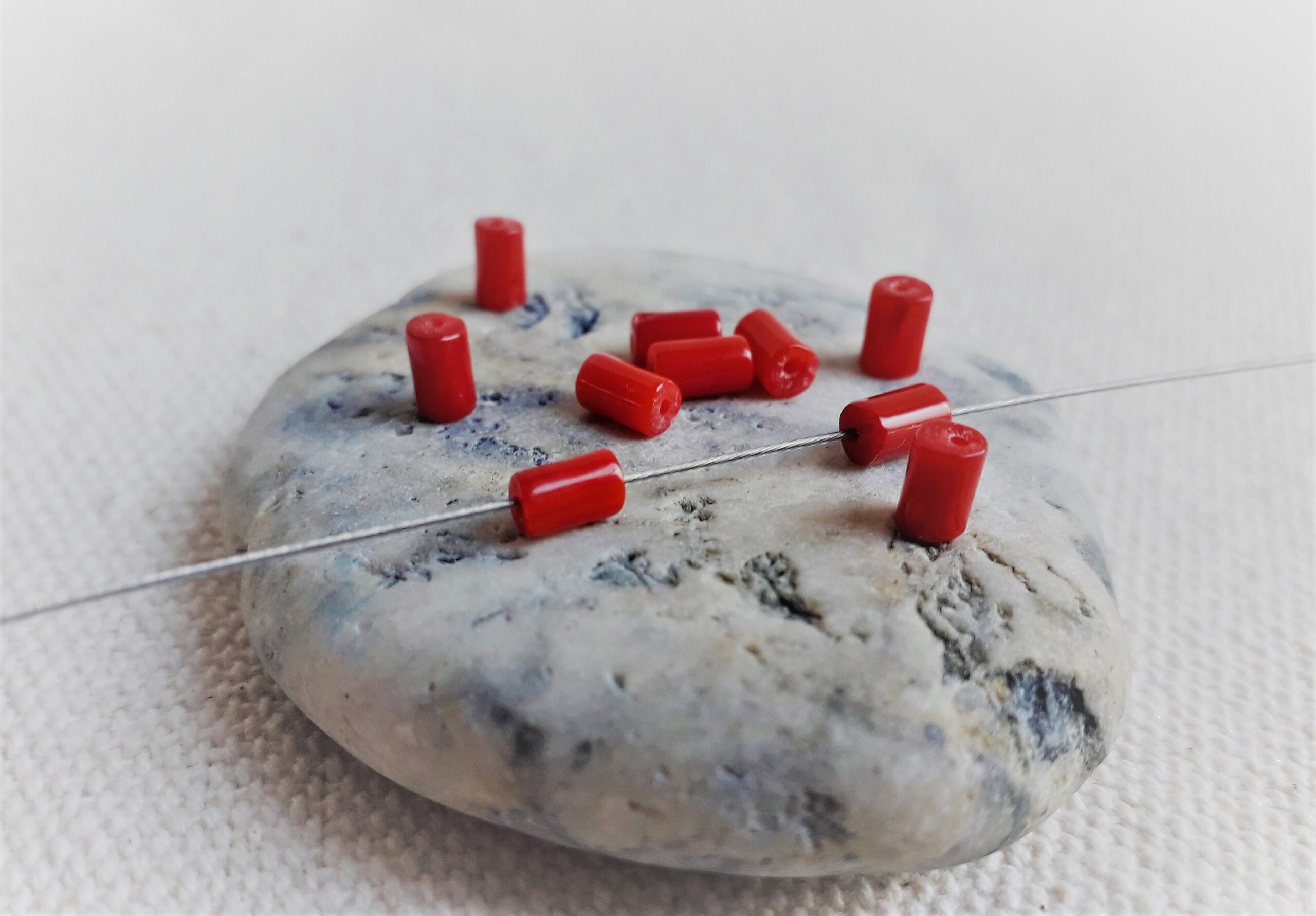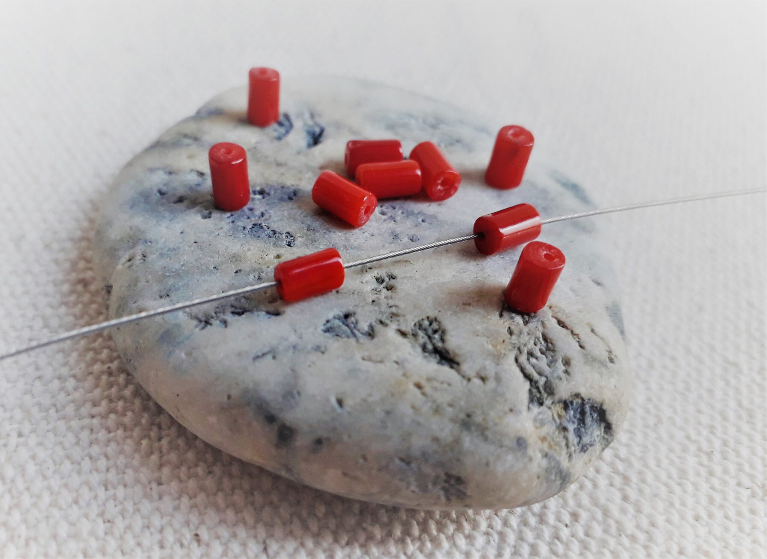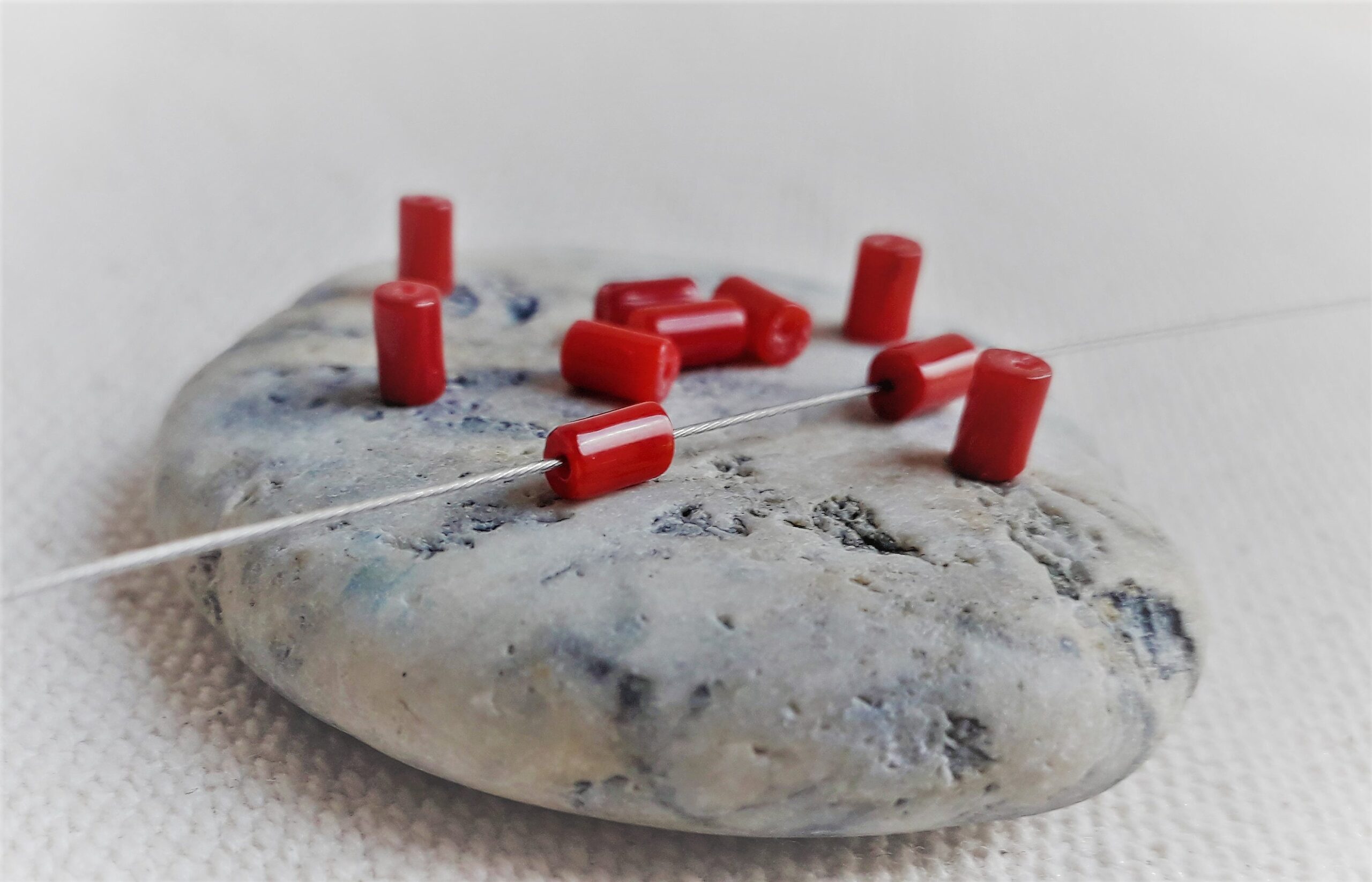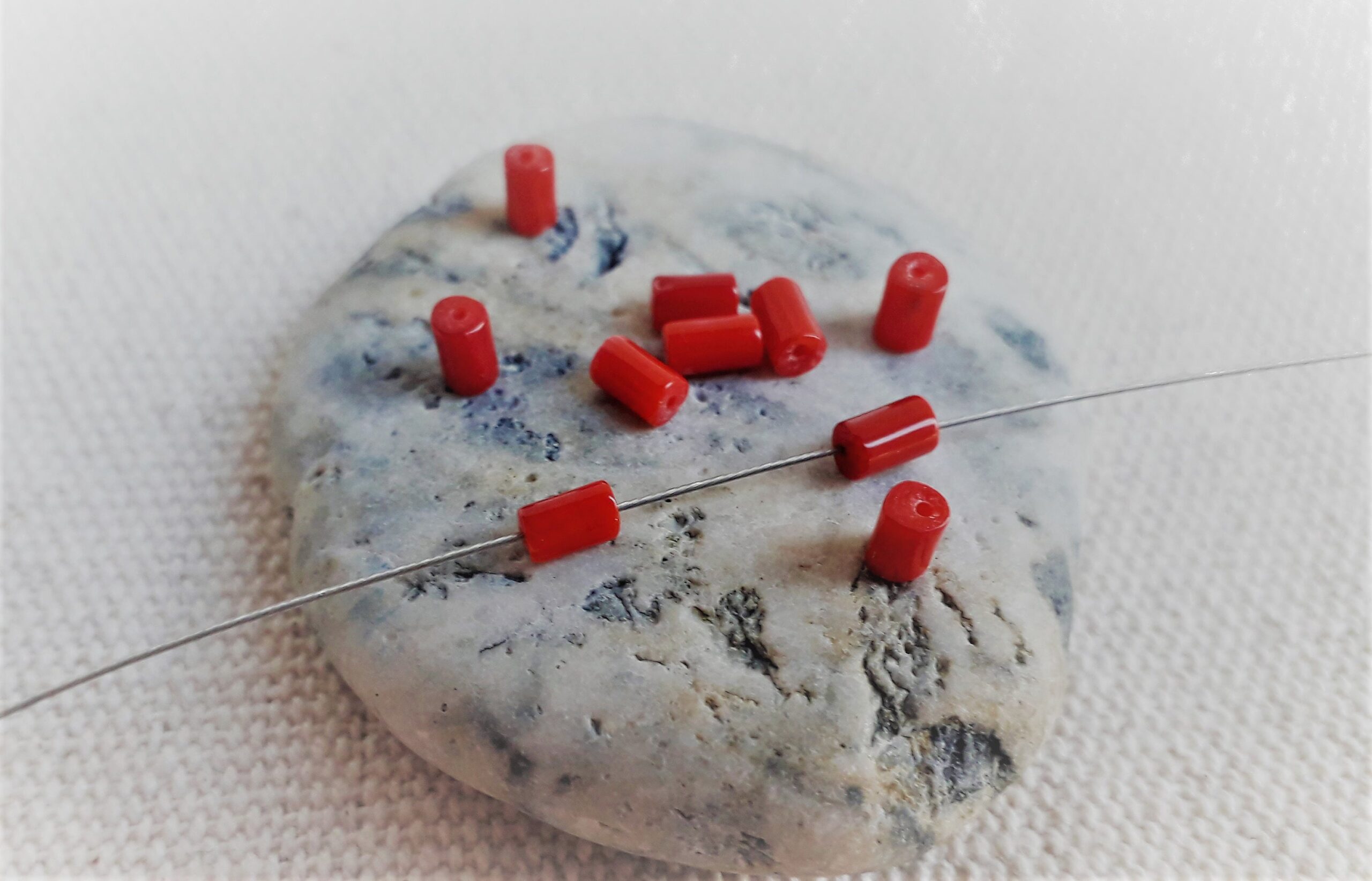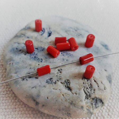 Lot de 10 Perles en Corail- Perles Tubes-Pierres Fines