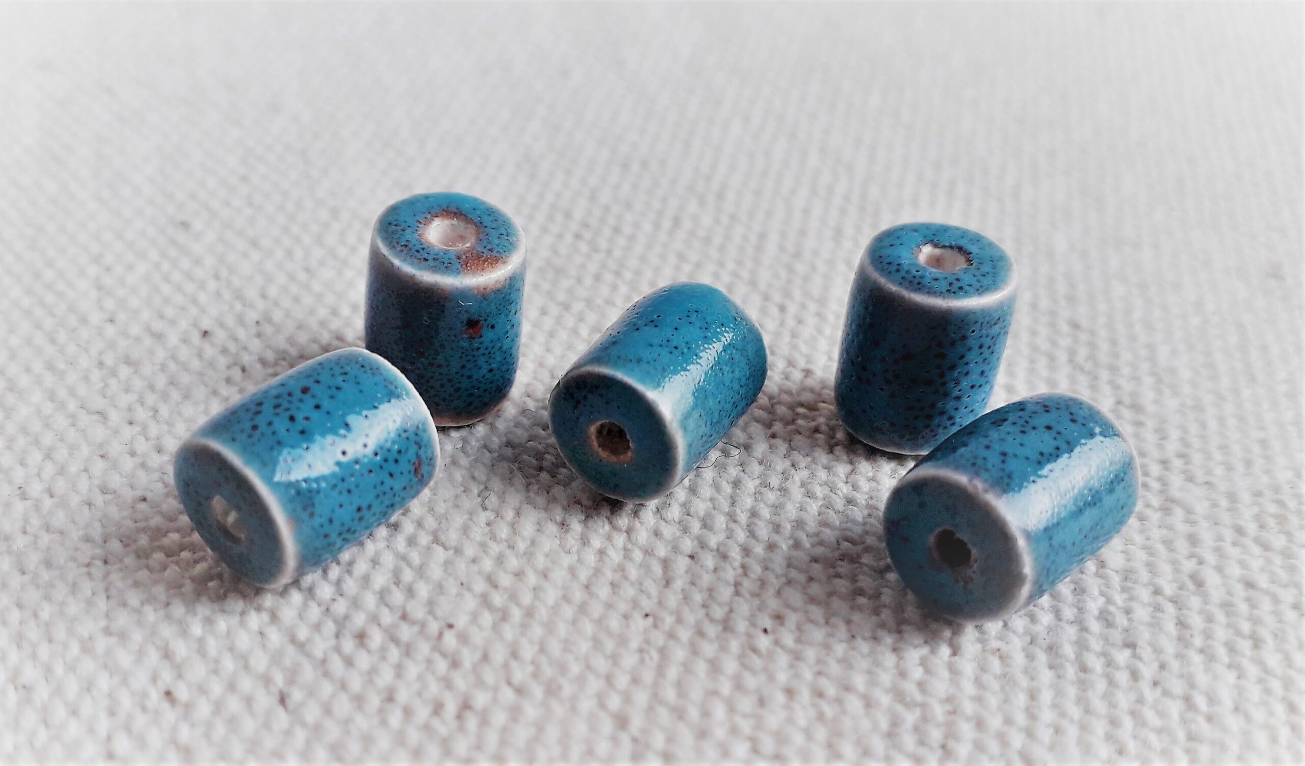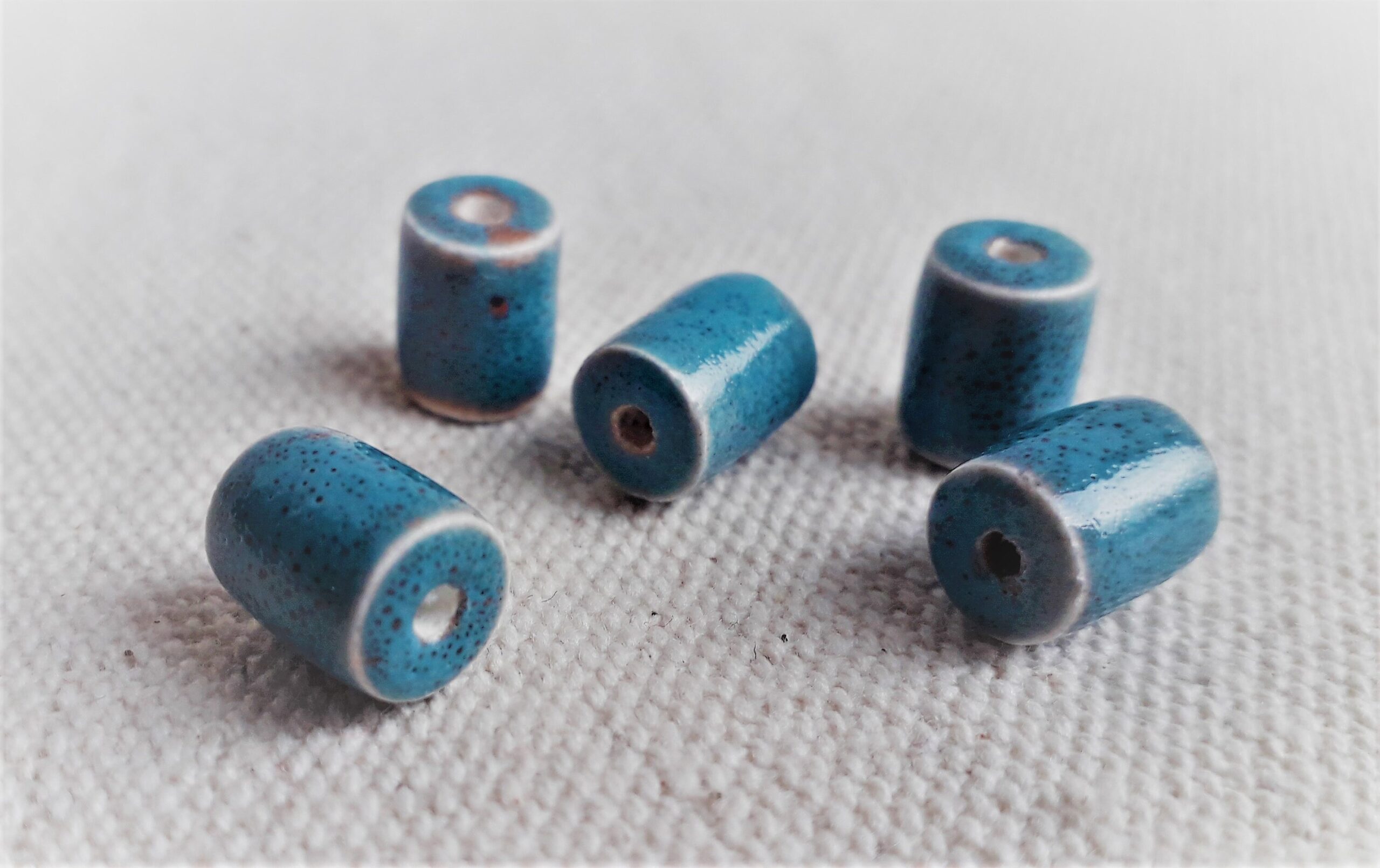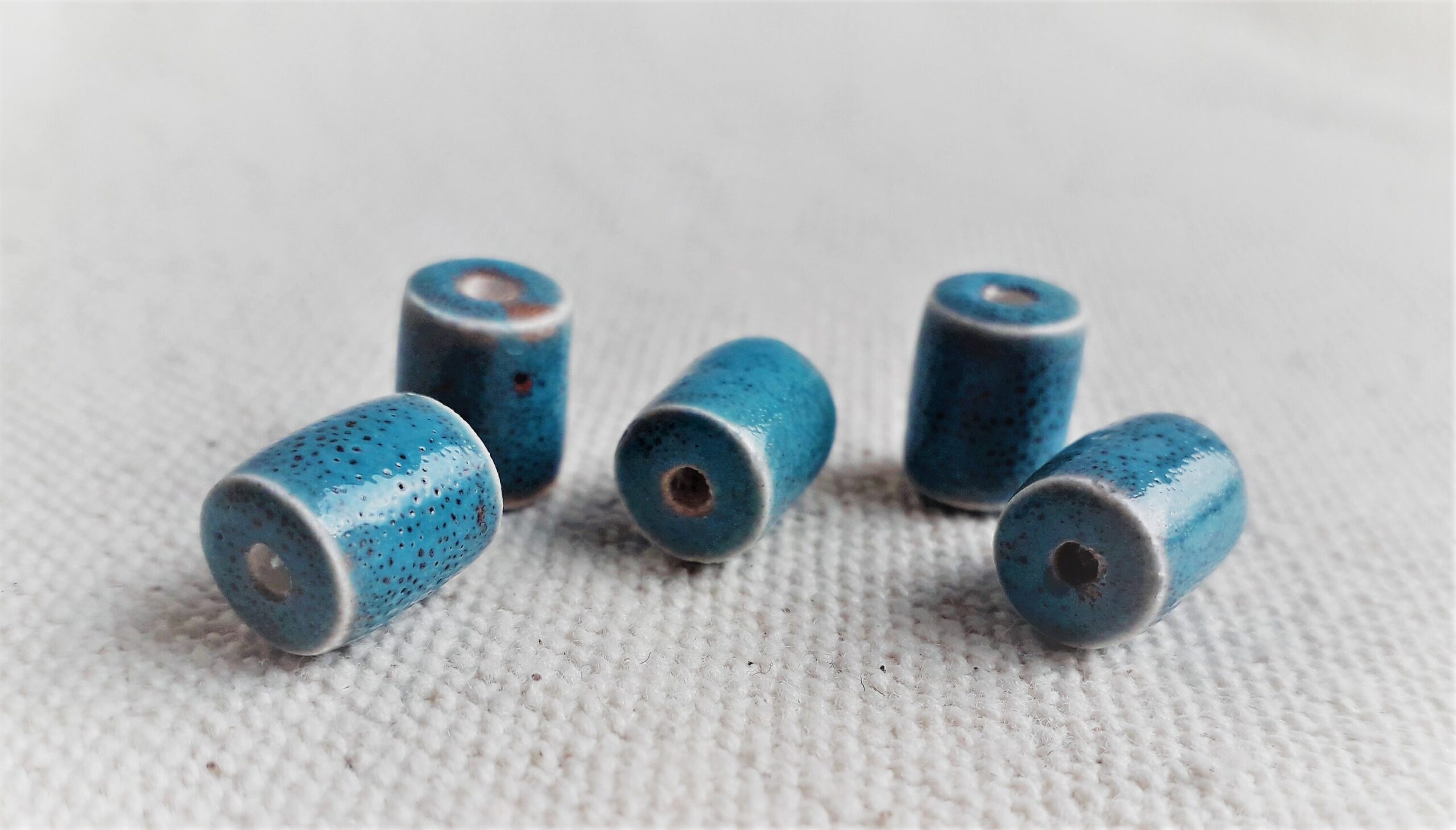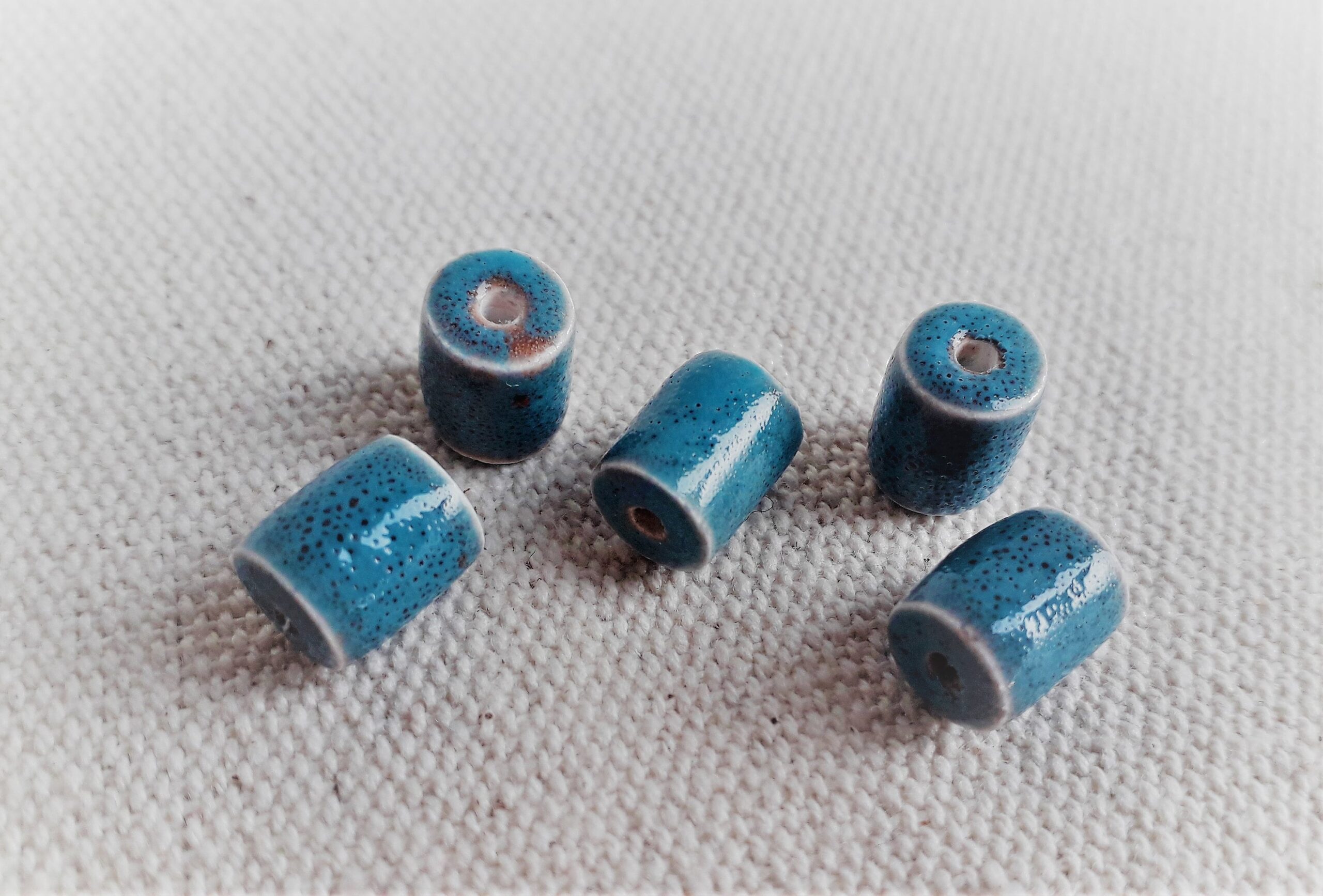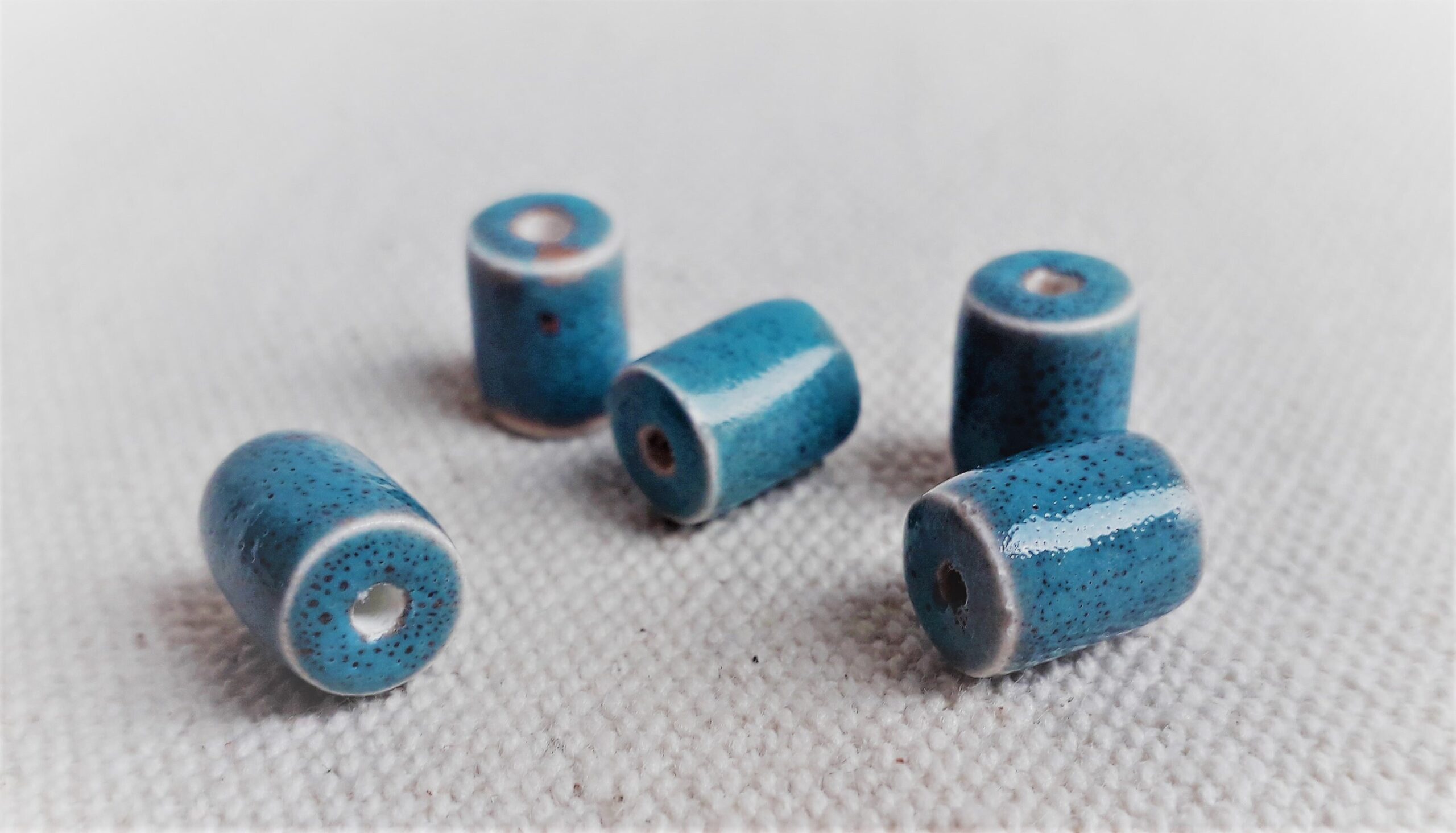 Lot de 5 Perles Céramique Bleues-Perles Tube-Perles du Monde