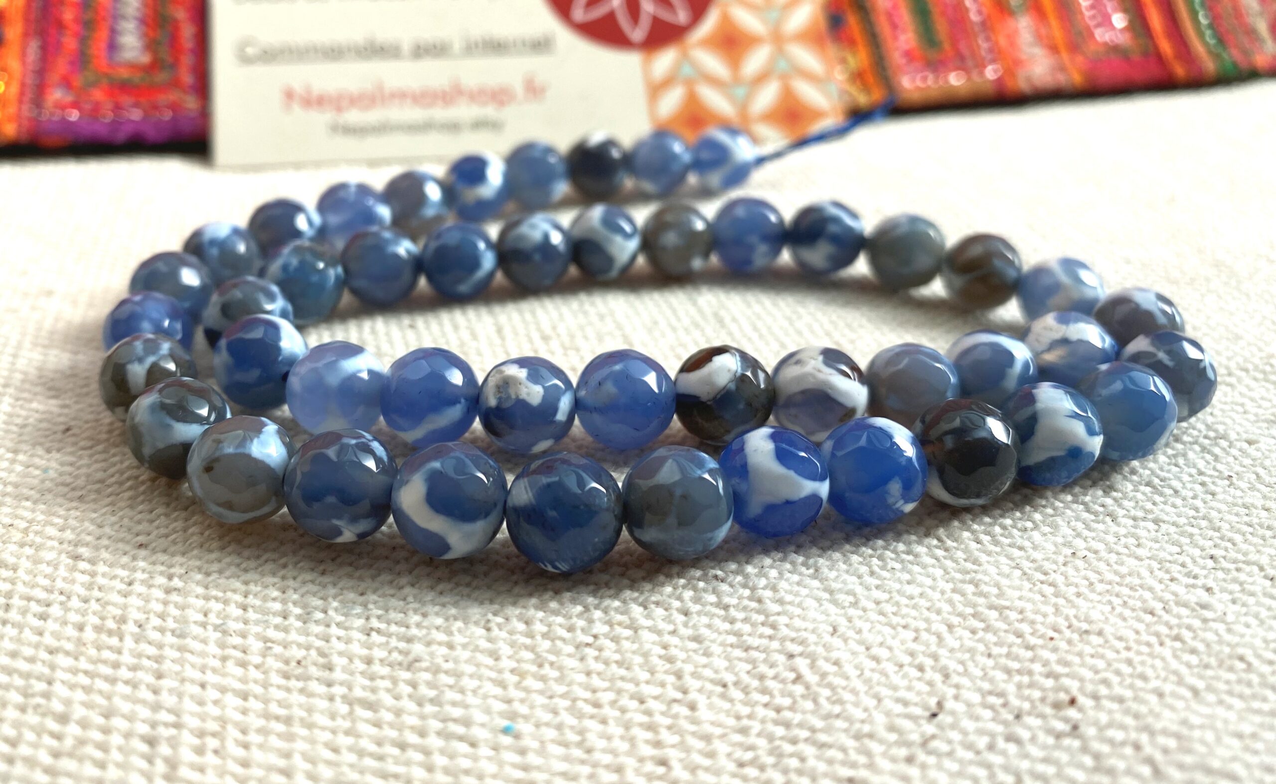 Lot de Perles Agate bleu facettée 8 mm-Pierres Naturelles-Perles du monde