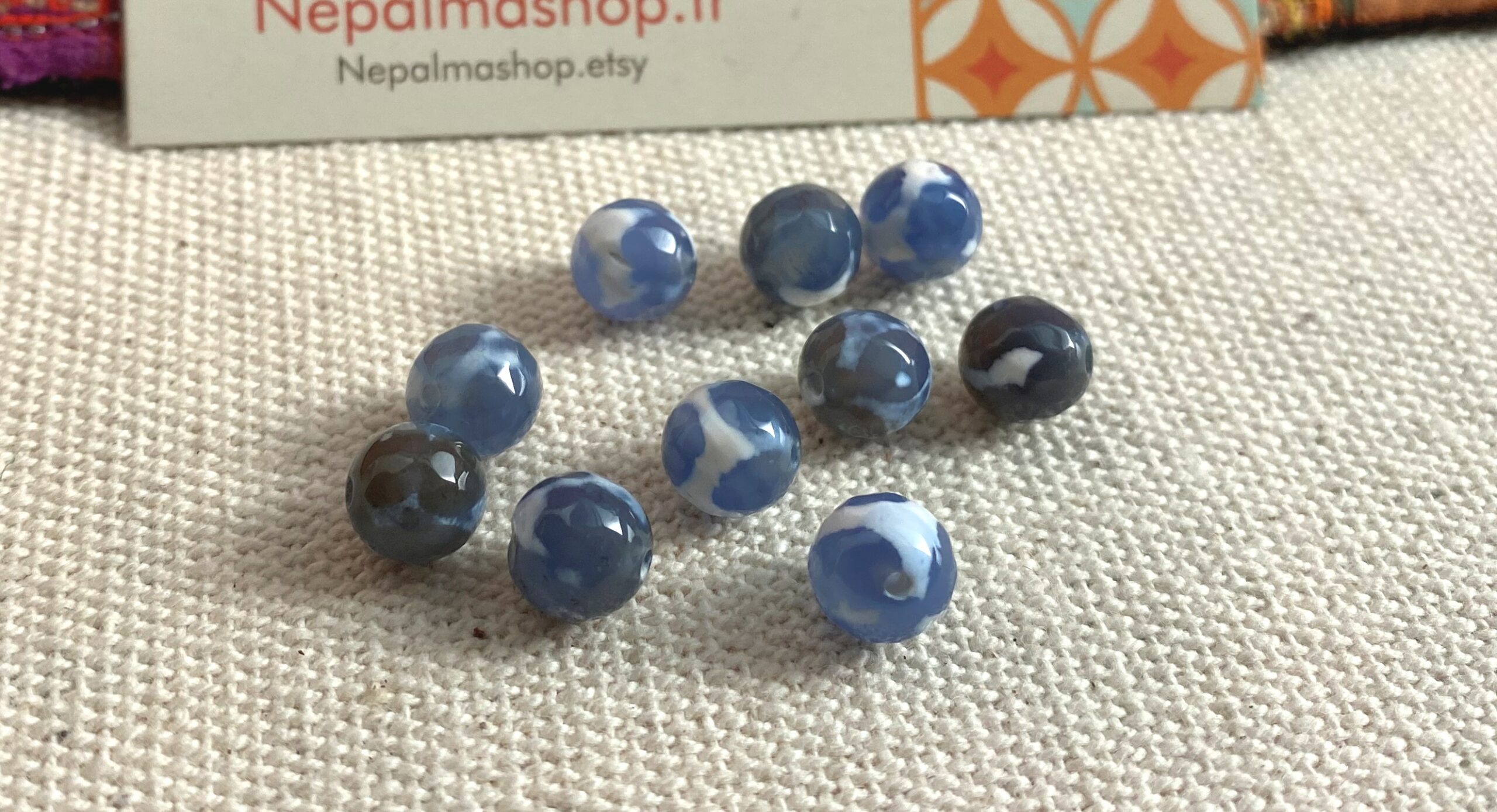 Lot de perles en agate bleu et blanche facettée, pierres naturelles. Se sont des perles utilisées dans la fabrication de bijoux.