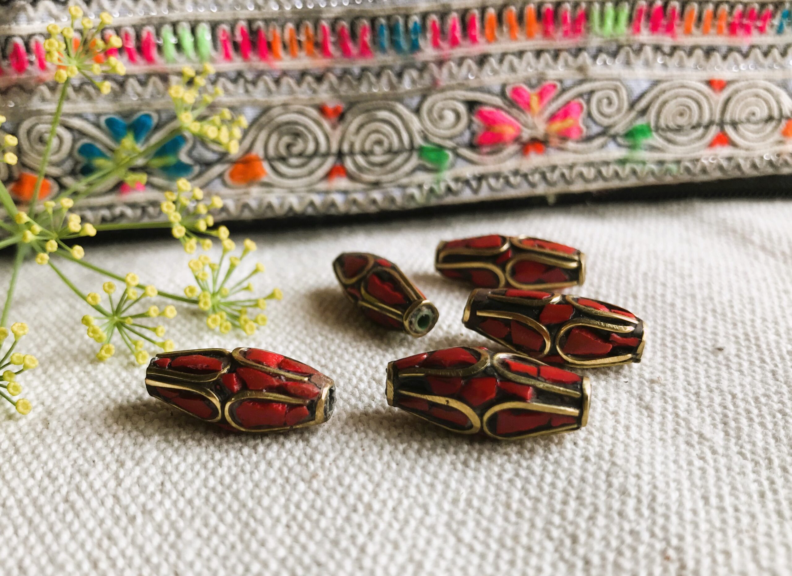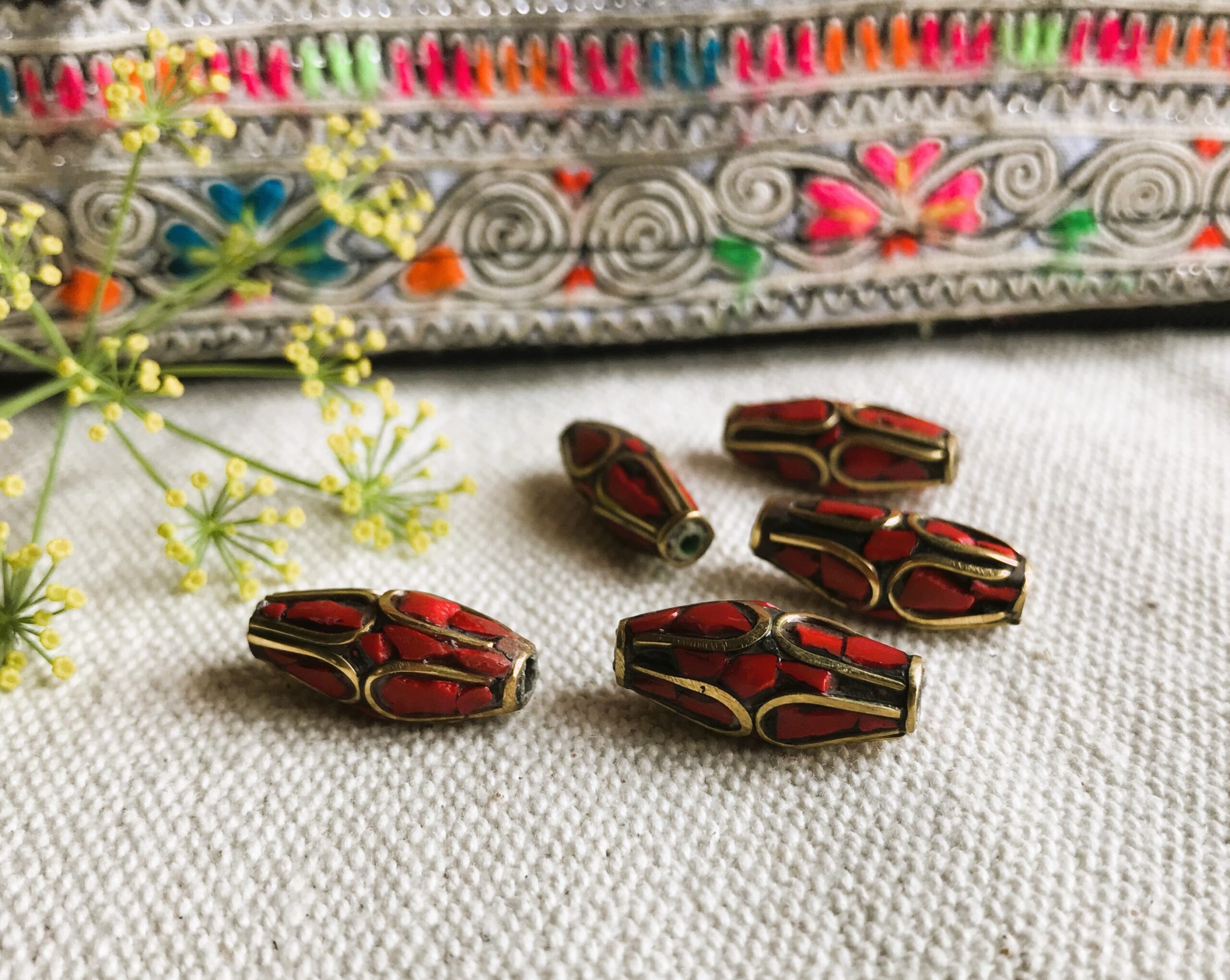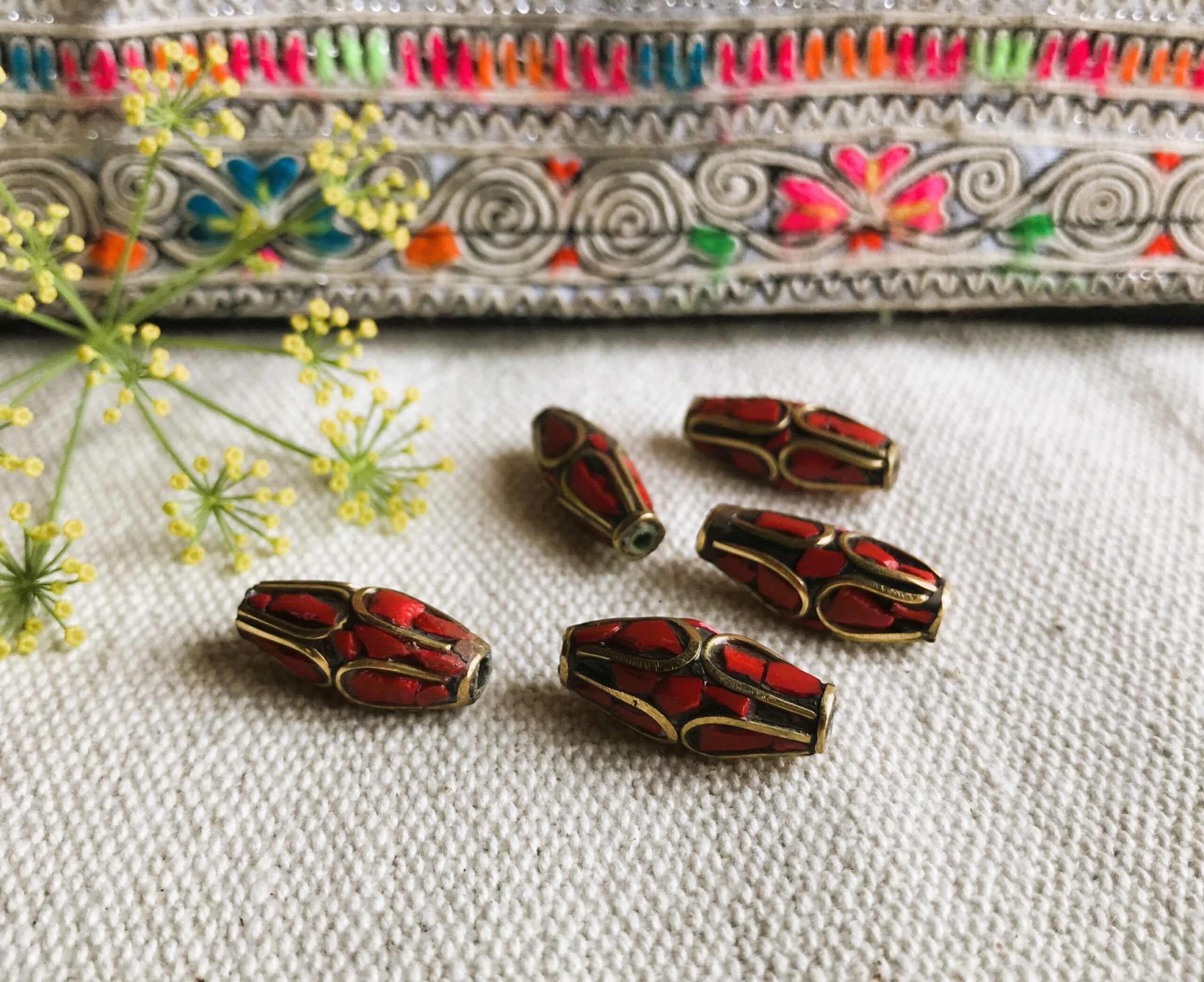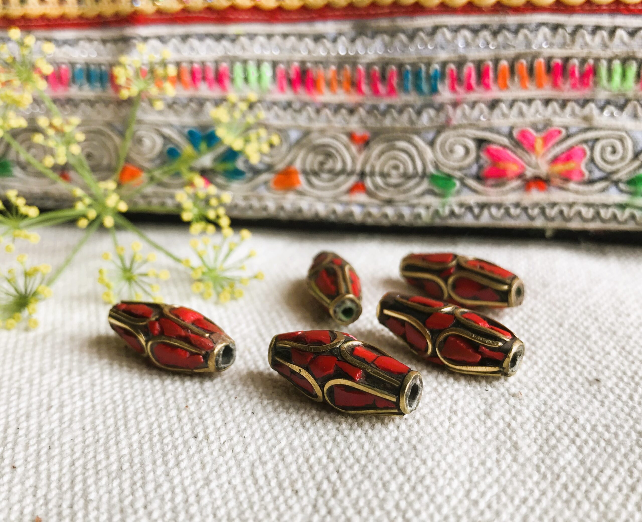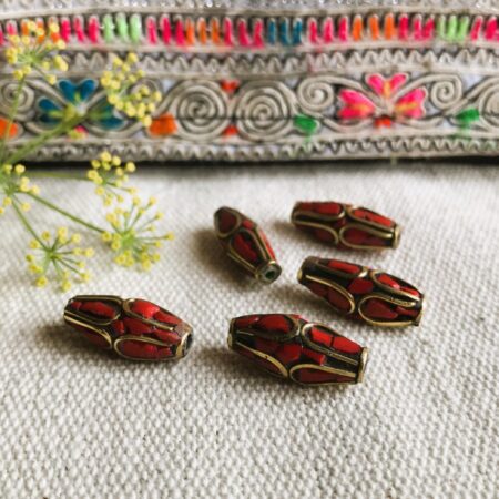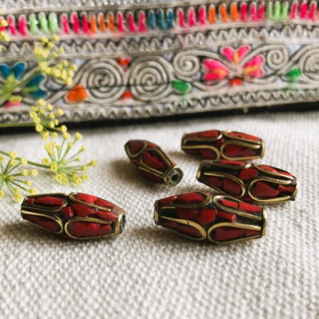 Lot de Perles traditionnelles du Népal Tibet travaillées avec du corail et du laiton. Elles sont entièrement réalisées à la main.
