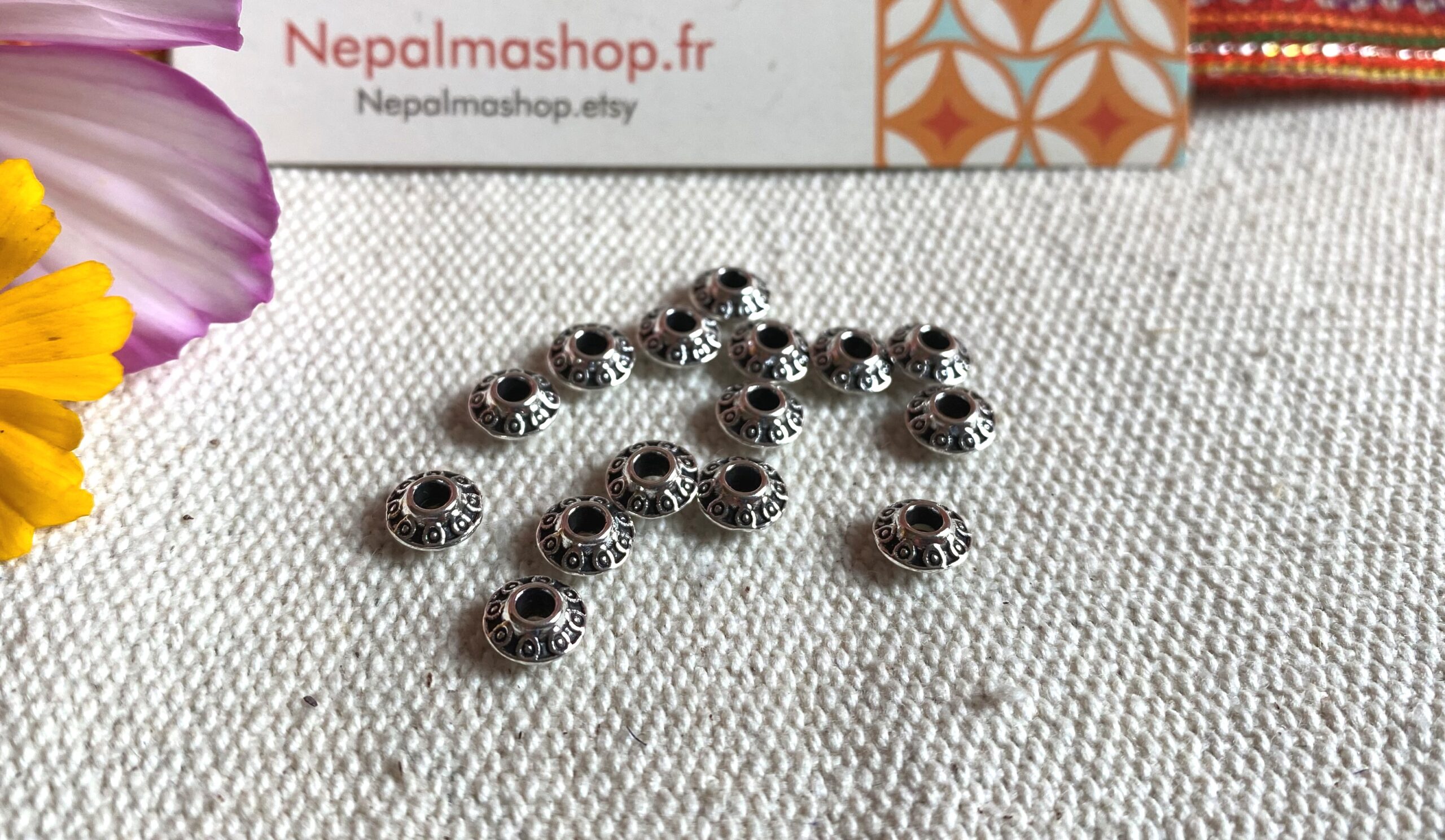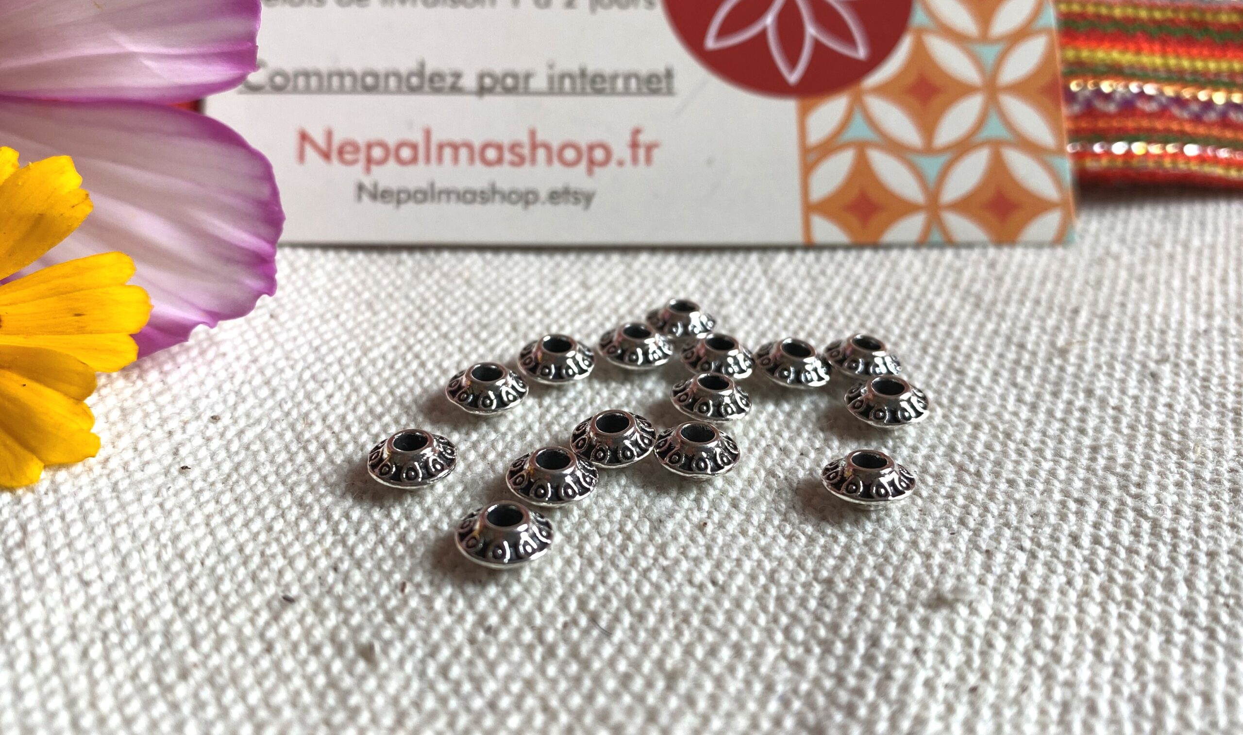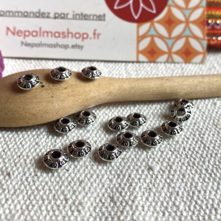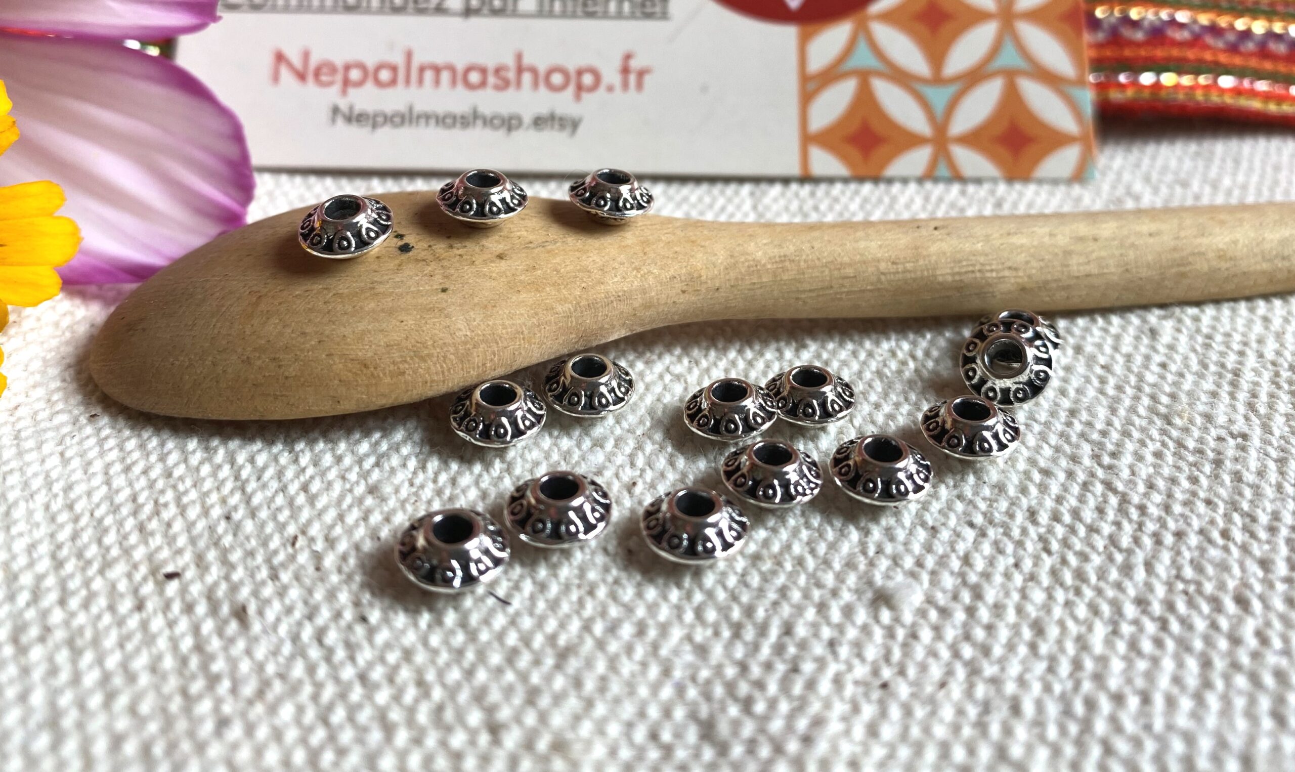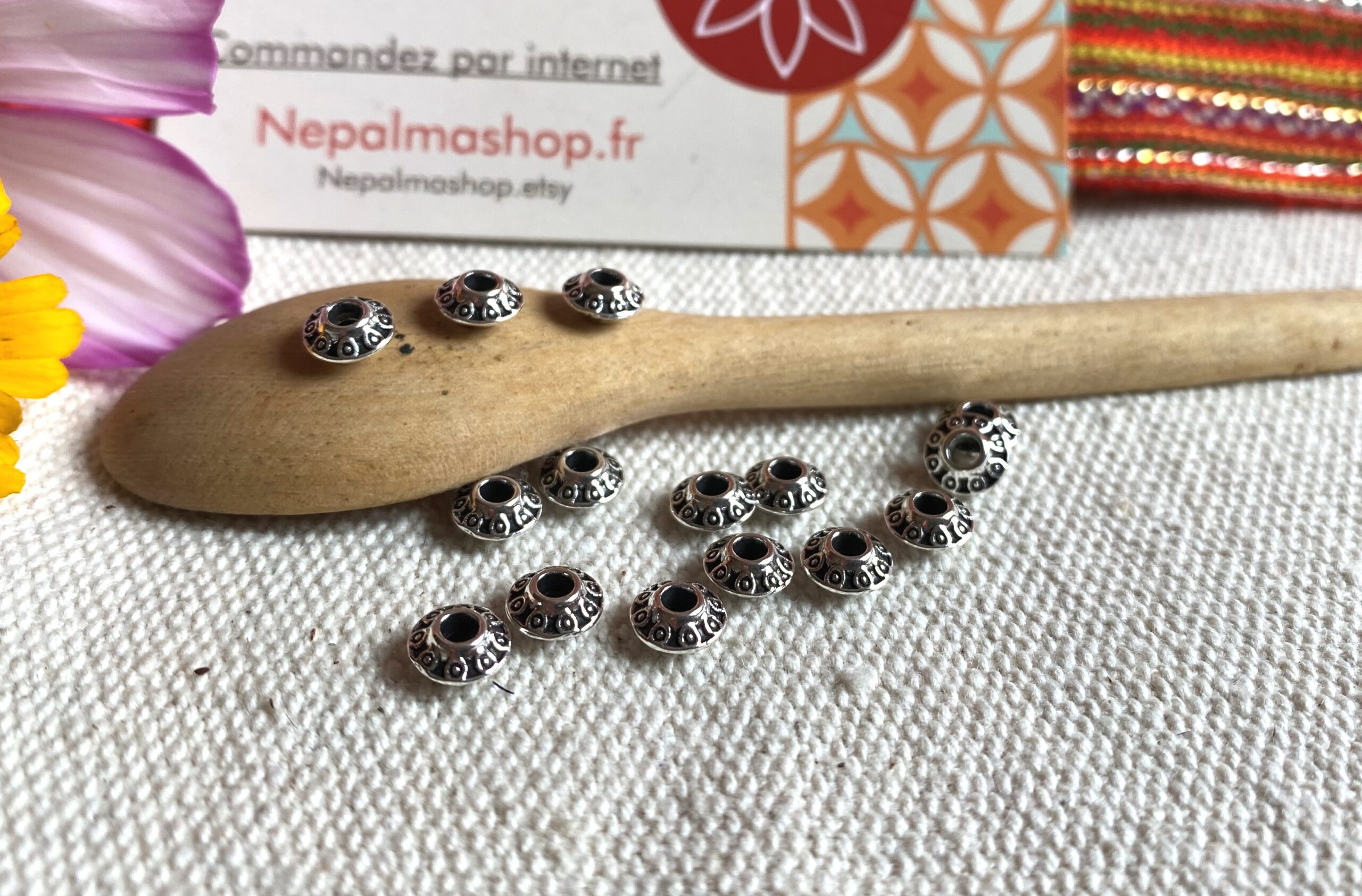 Lot de perles en métal argenté style ethnique, de très jolis imprimés sur les perles.