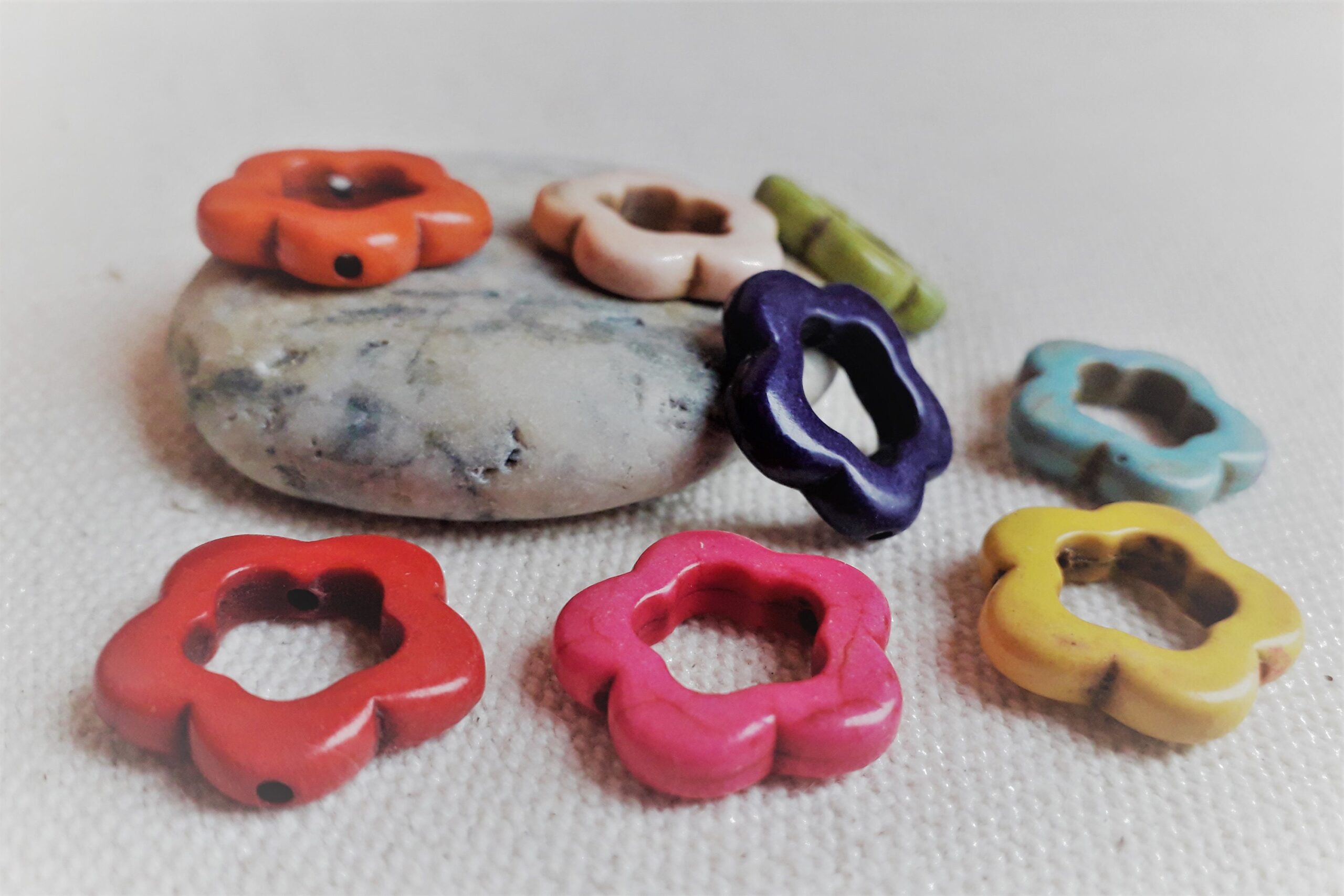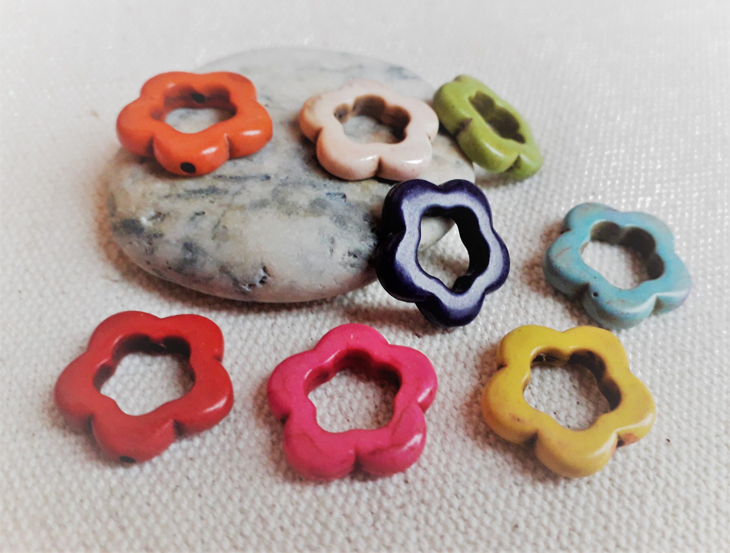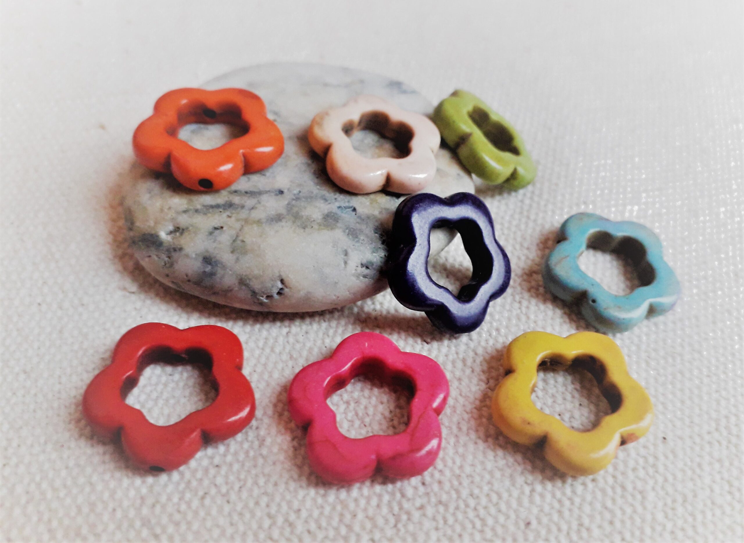 Lot de perles en forme de fleur MULTICOLORES composées de howlite.