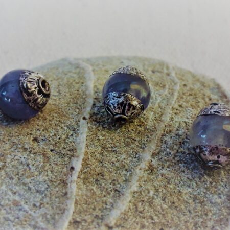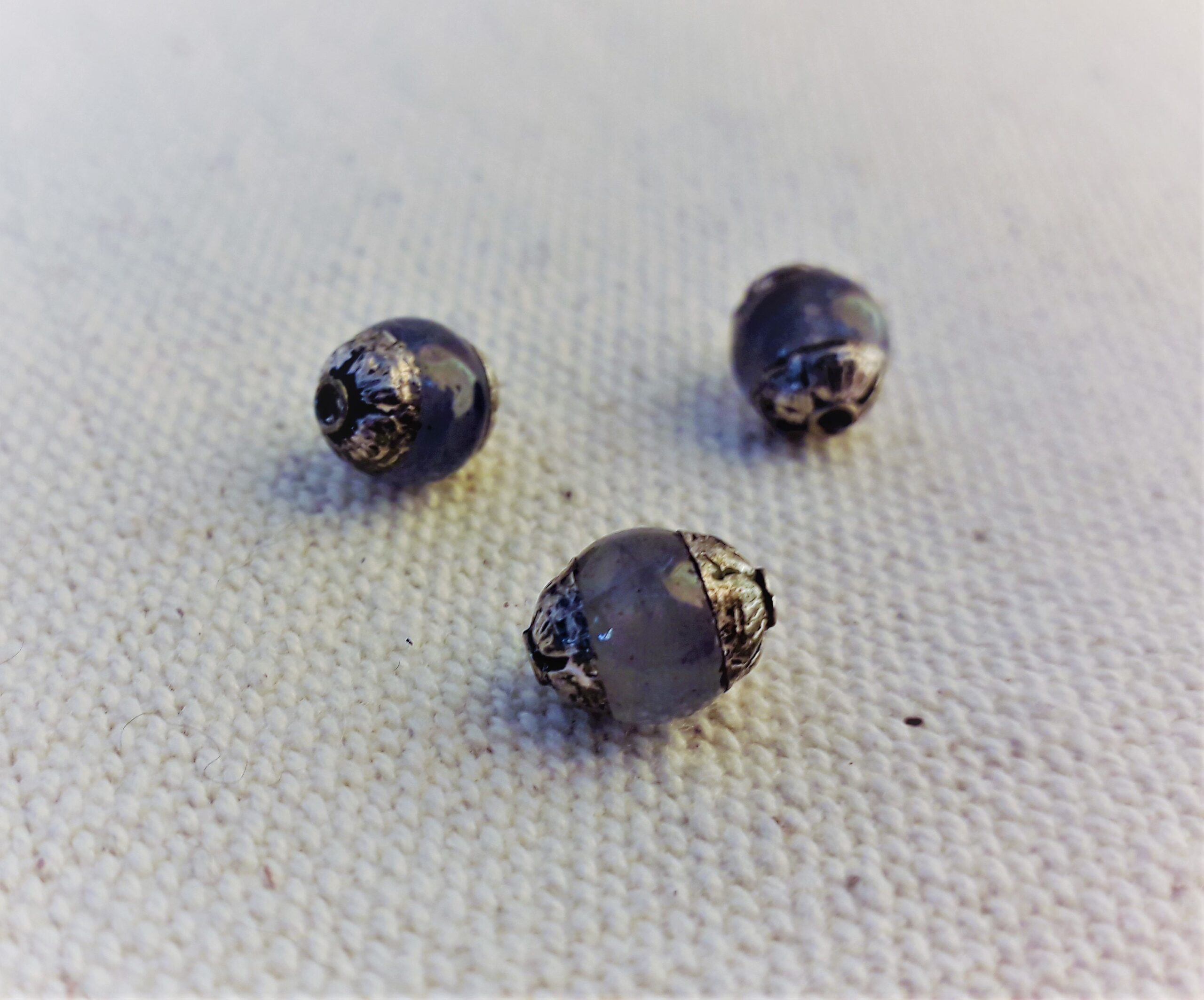 Trois Perles magnifiques traditionnelles provenant du Népal. Elles se composent de verre et d’argent.