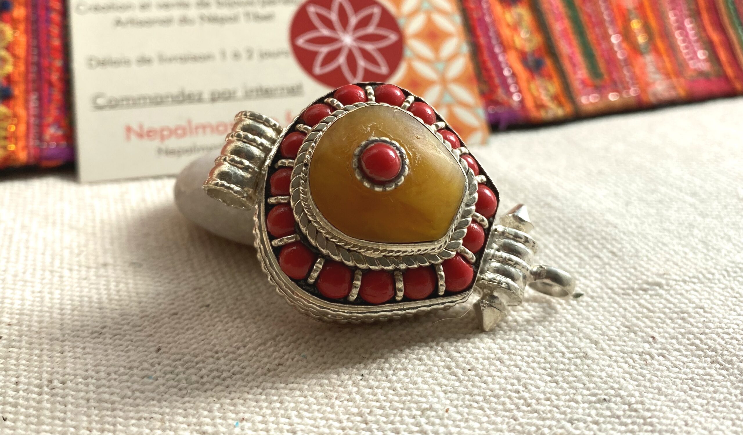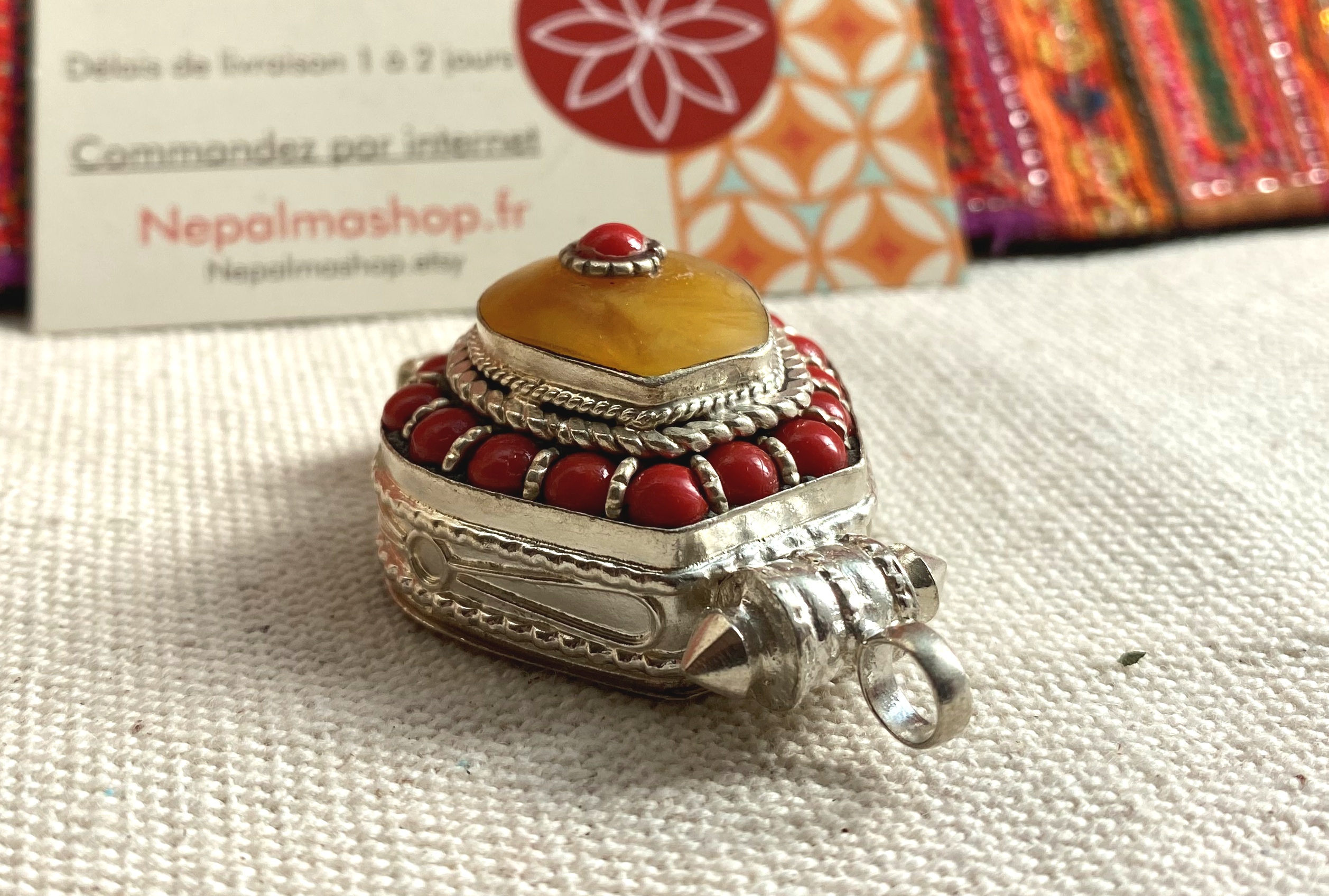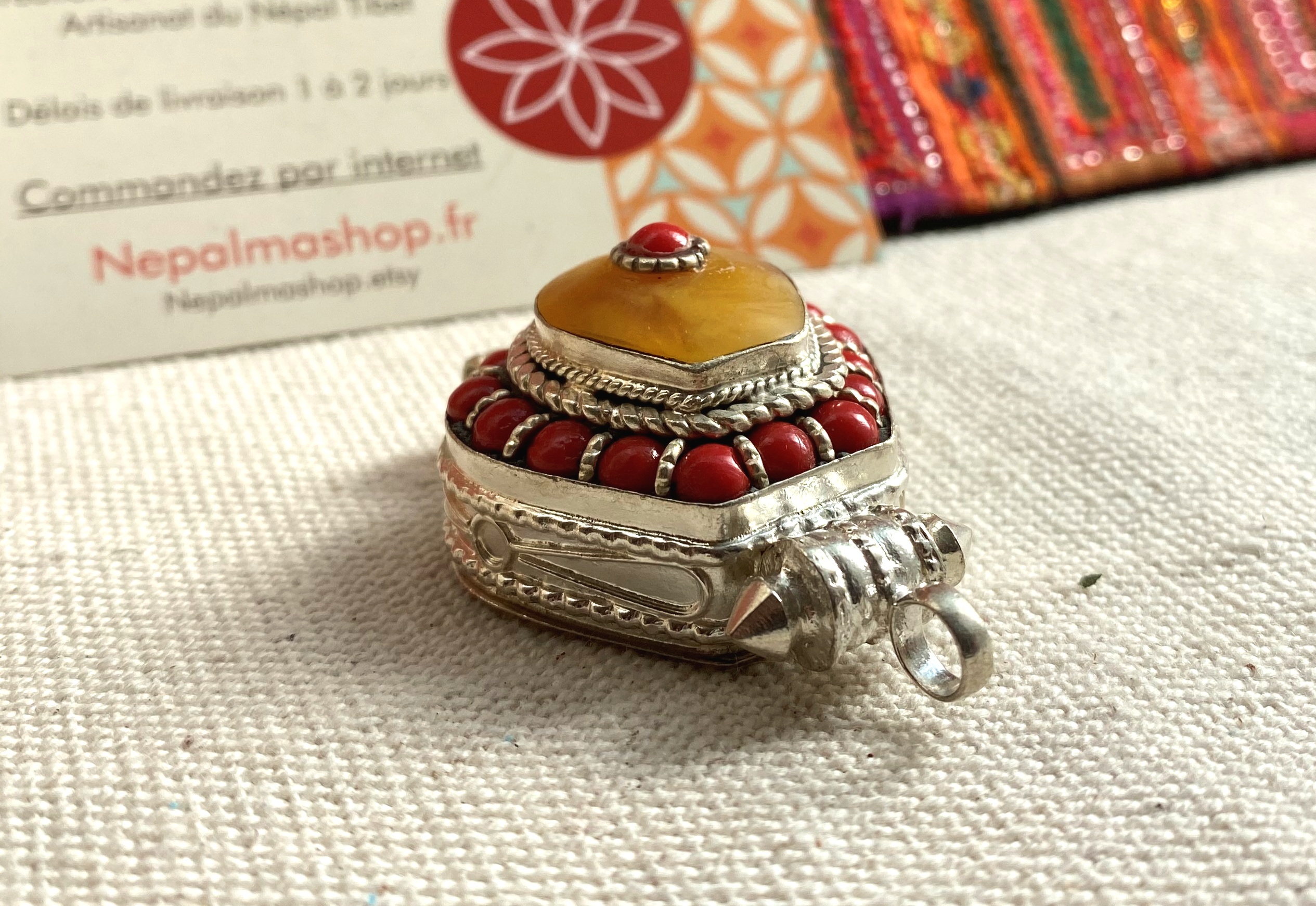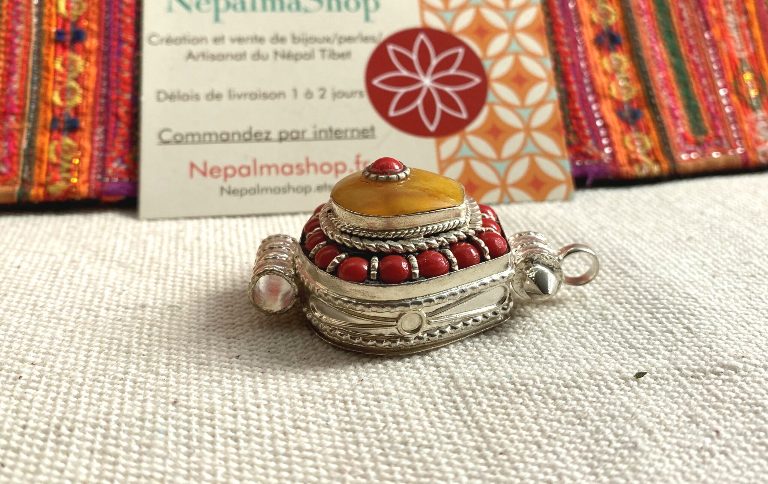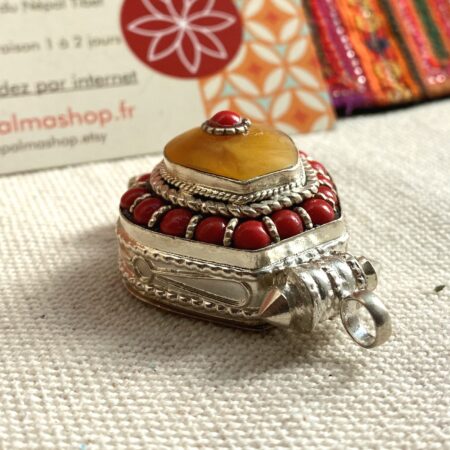 Pendentif Ethnique Boite-Bijoux Corail Ambré