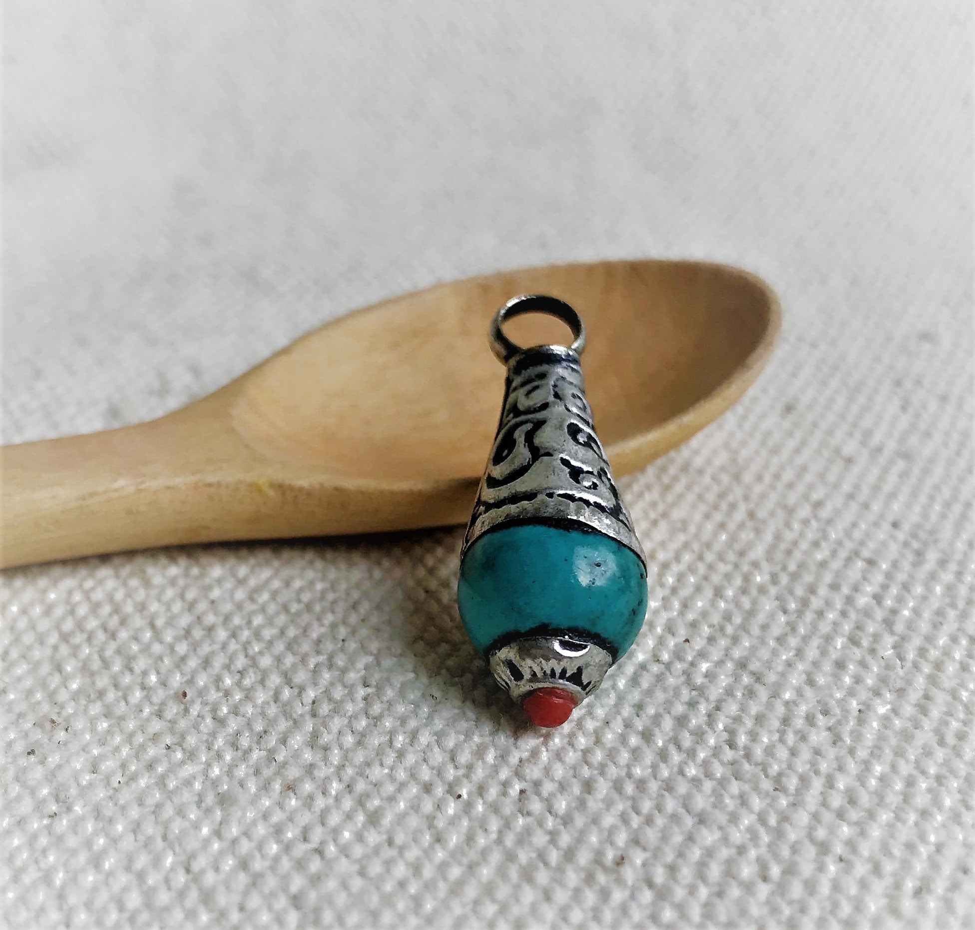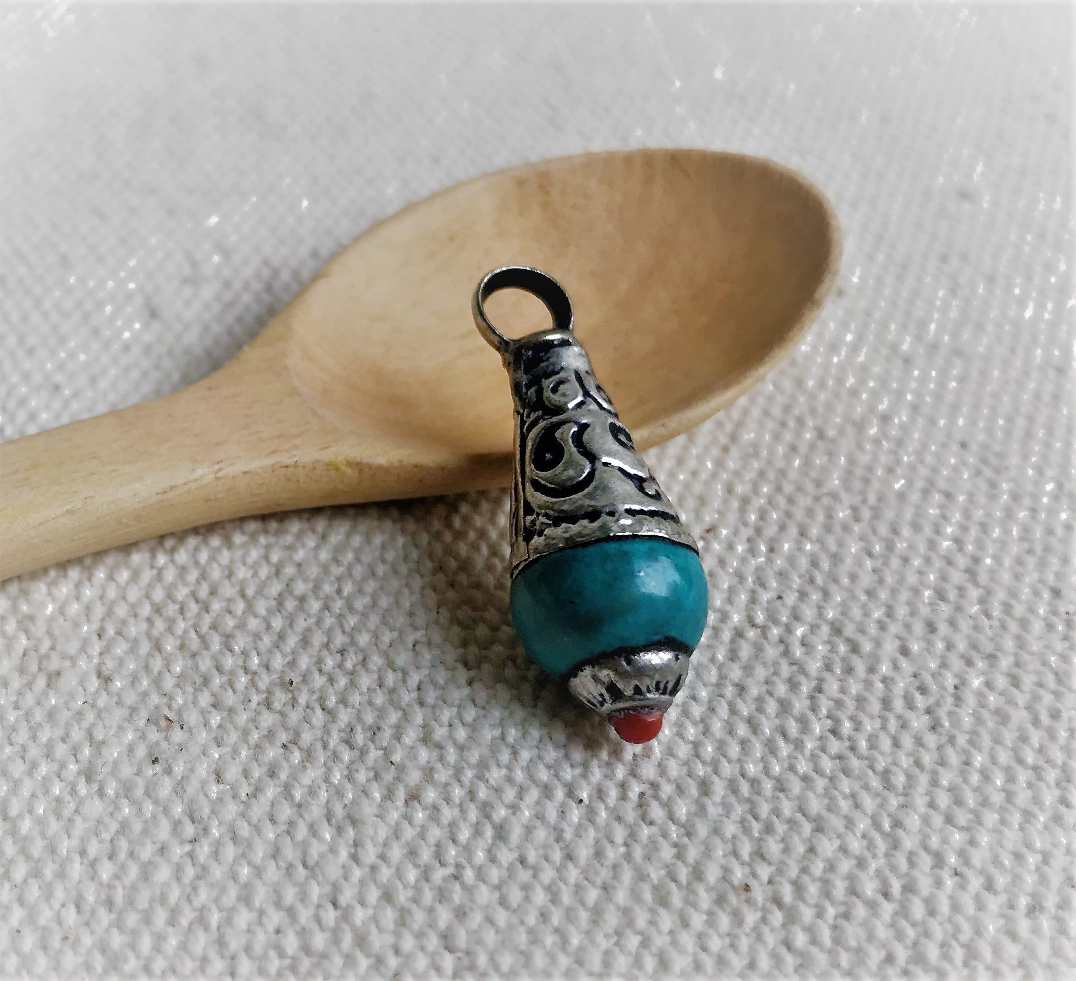 Pendentif traditionnel Tibétain entièrement réalisé à la main au Népal.