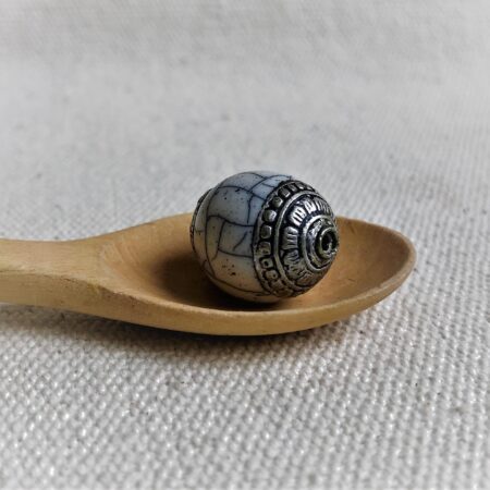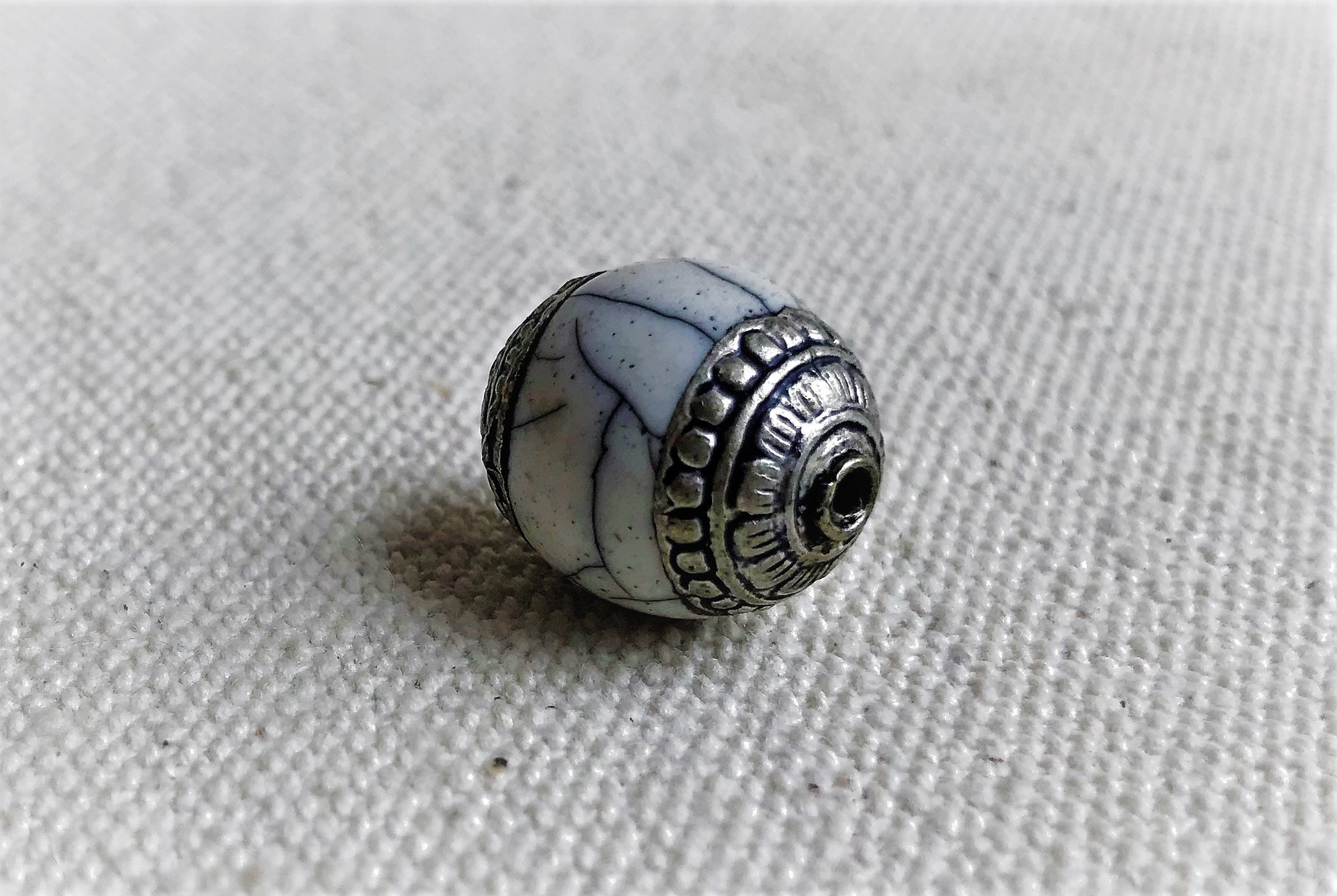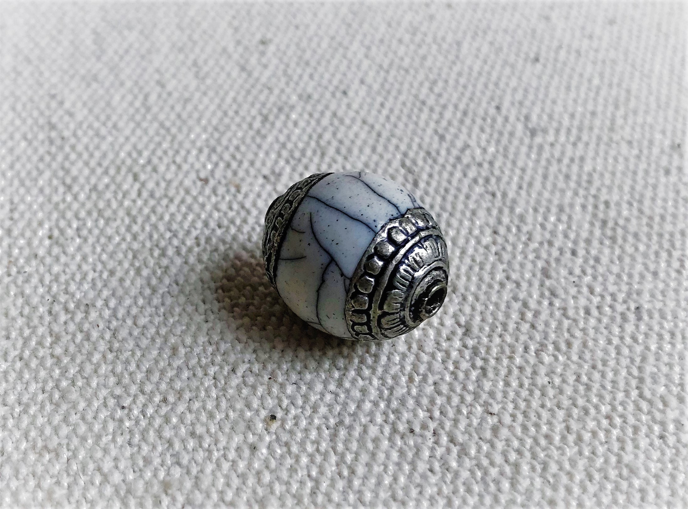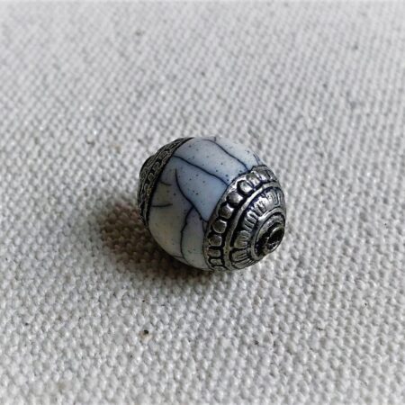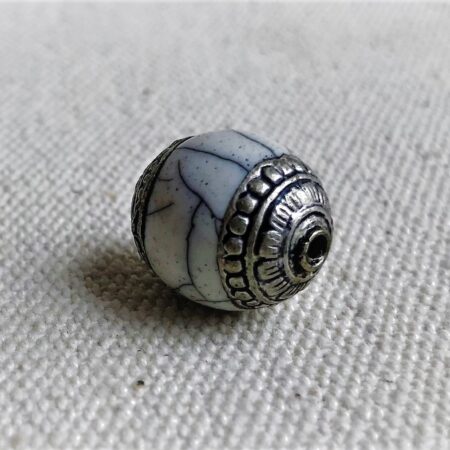 Perles traditionnelles magnifiques provenant du Népal. Elles se composent de métal argenté et de résine blanche.