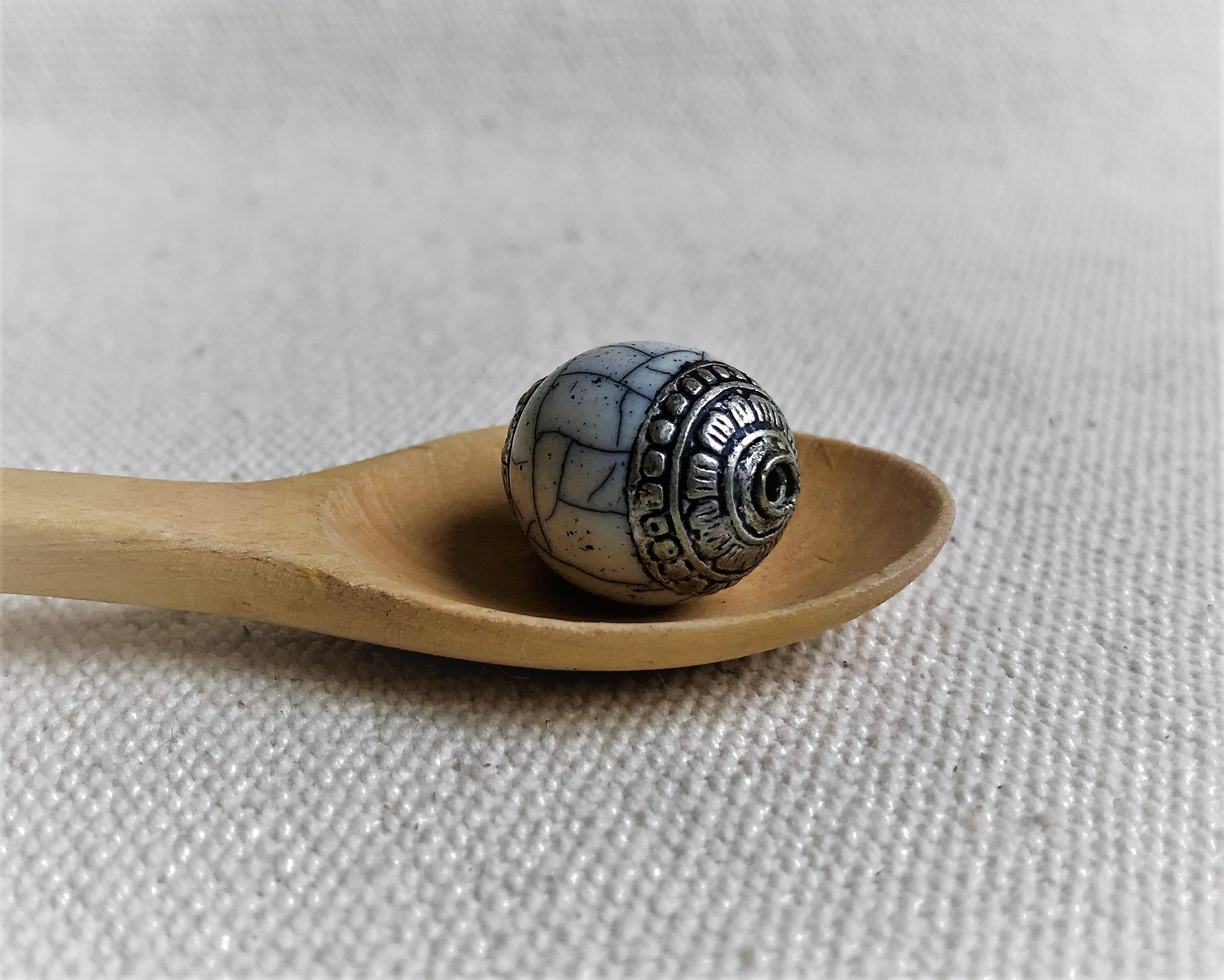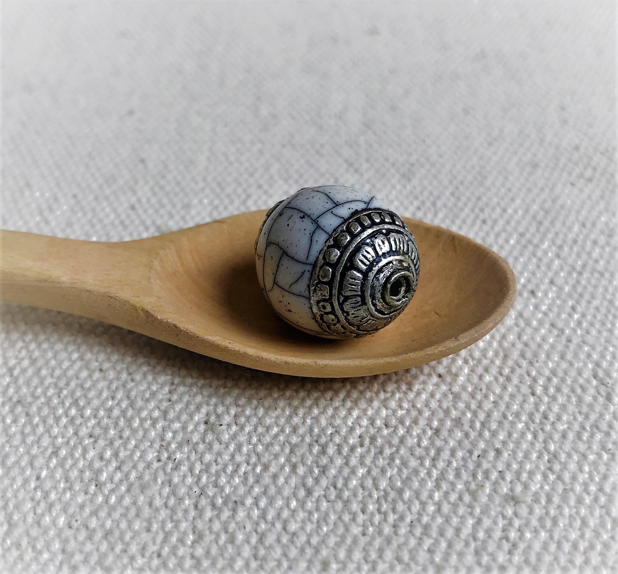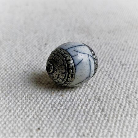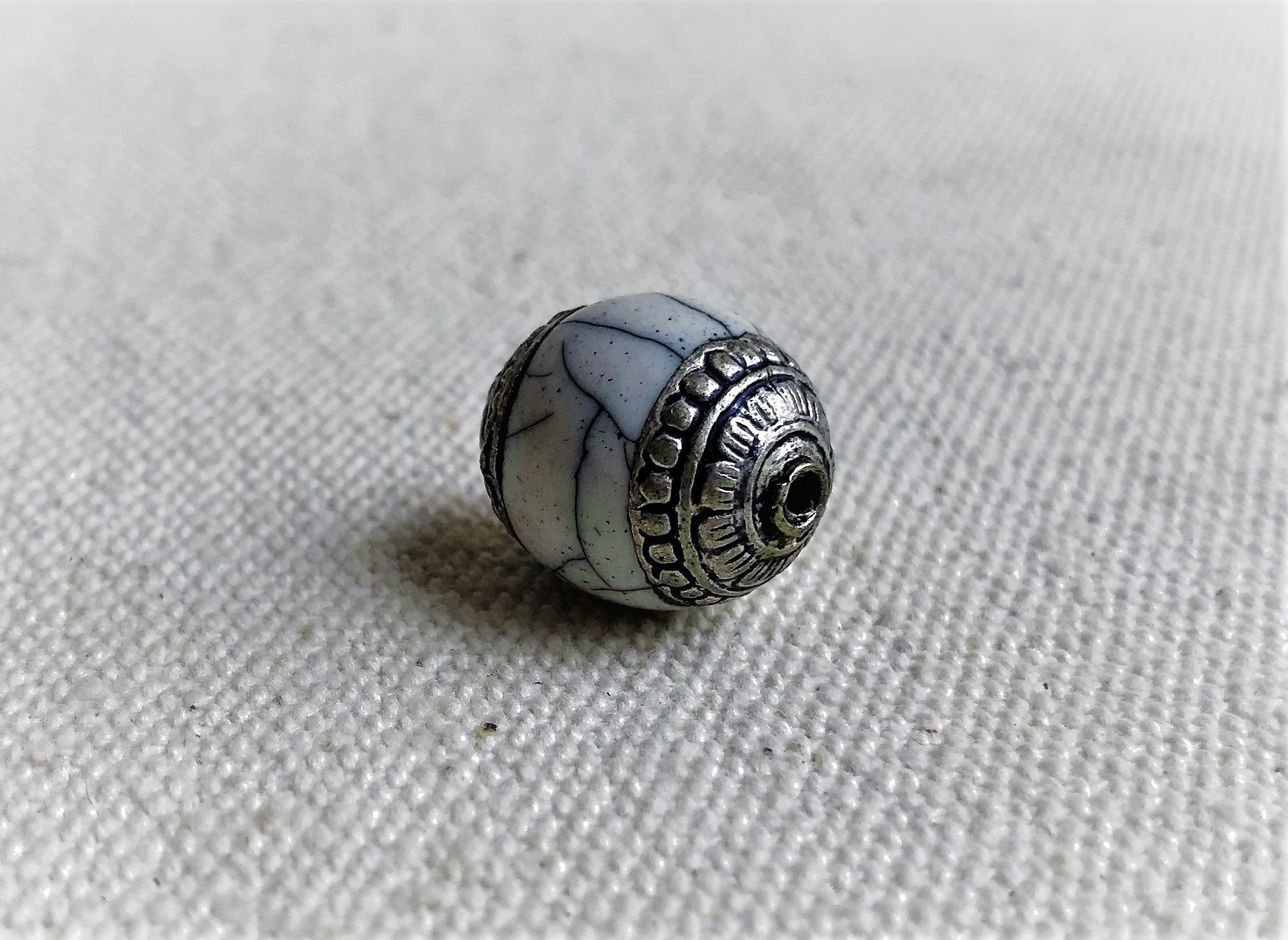Perles traditionnelles magnifiques provenant du Népal. Elles se composent de métal argenté et de résine blanche.