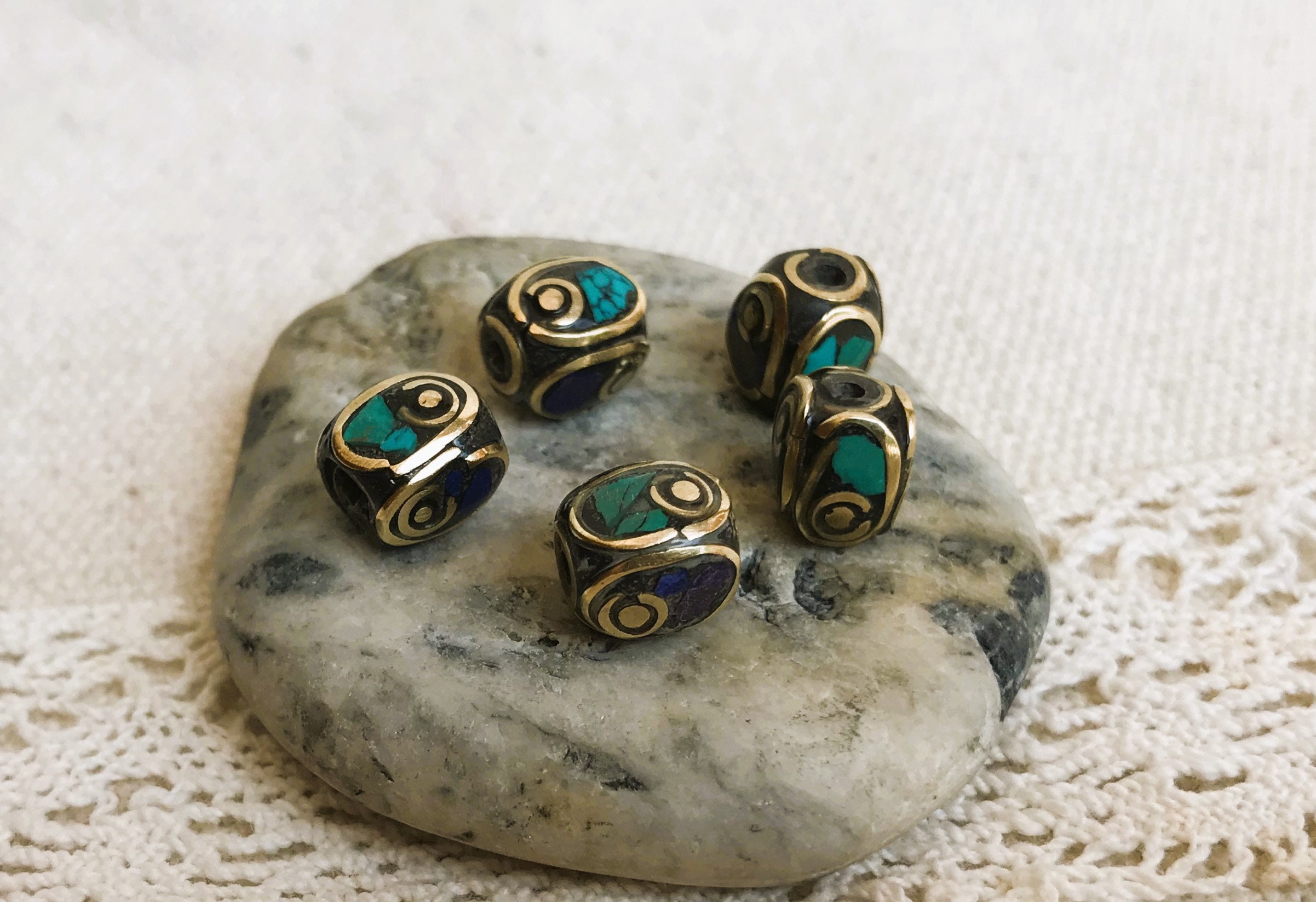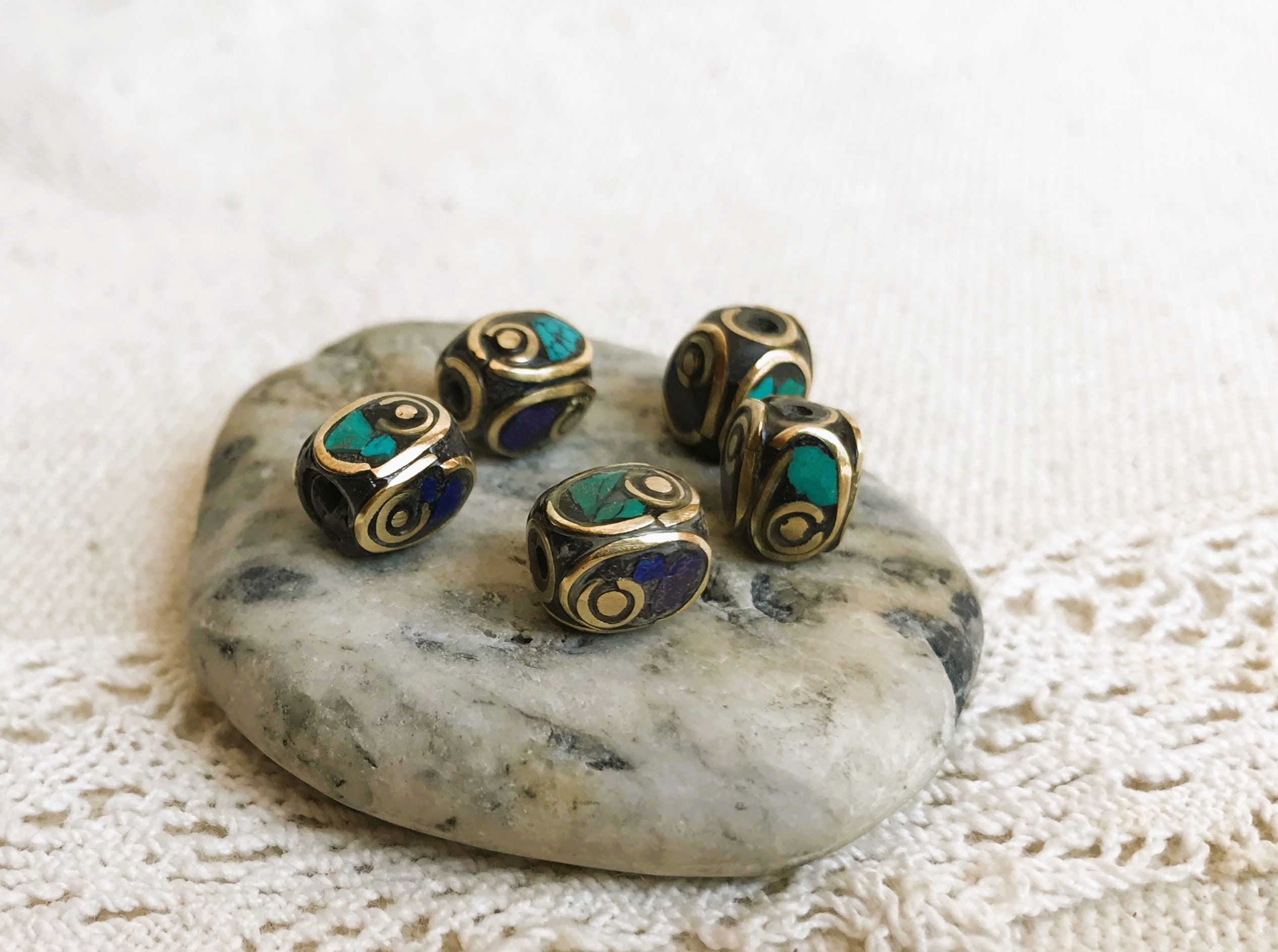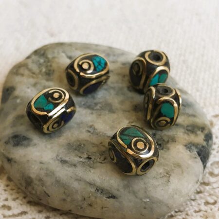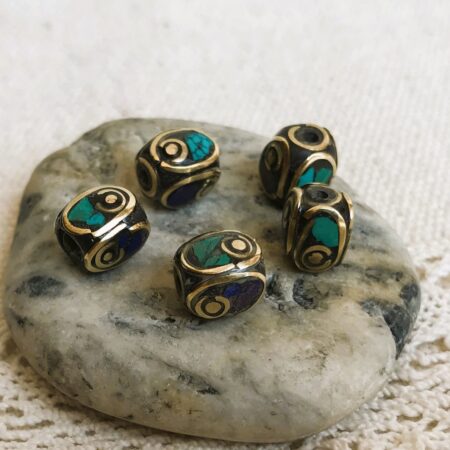 Lot de Perles traditionnelles du Népal Tibet travaillées avec du Lapis Lazuli, de la Turquoise et du laiton. Elles sont entièrement réalisées à la main.