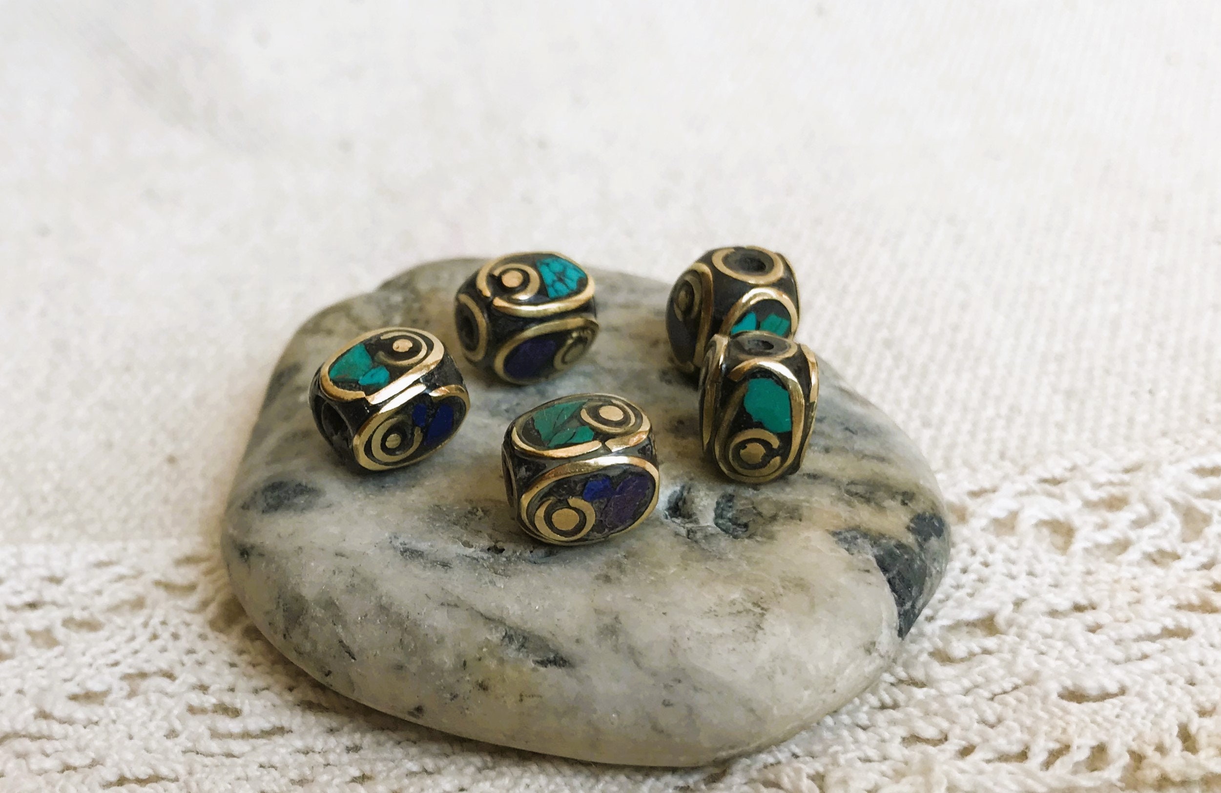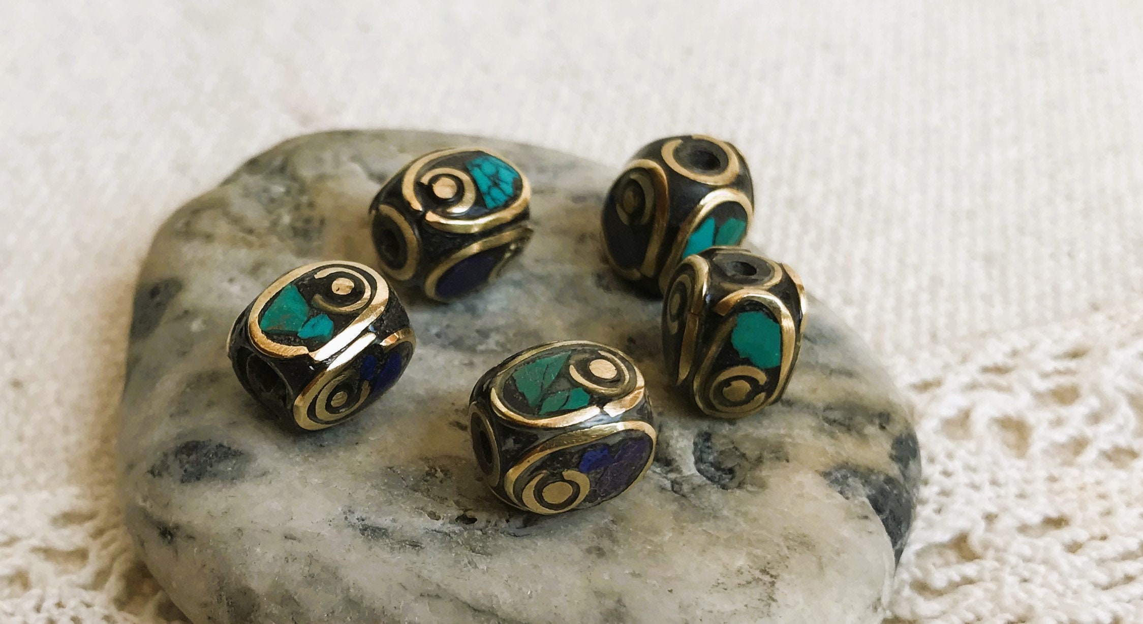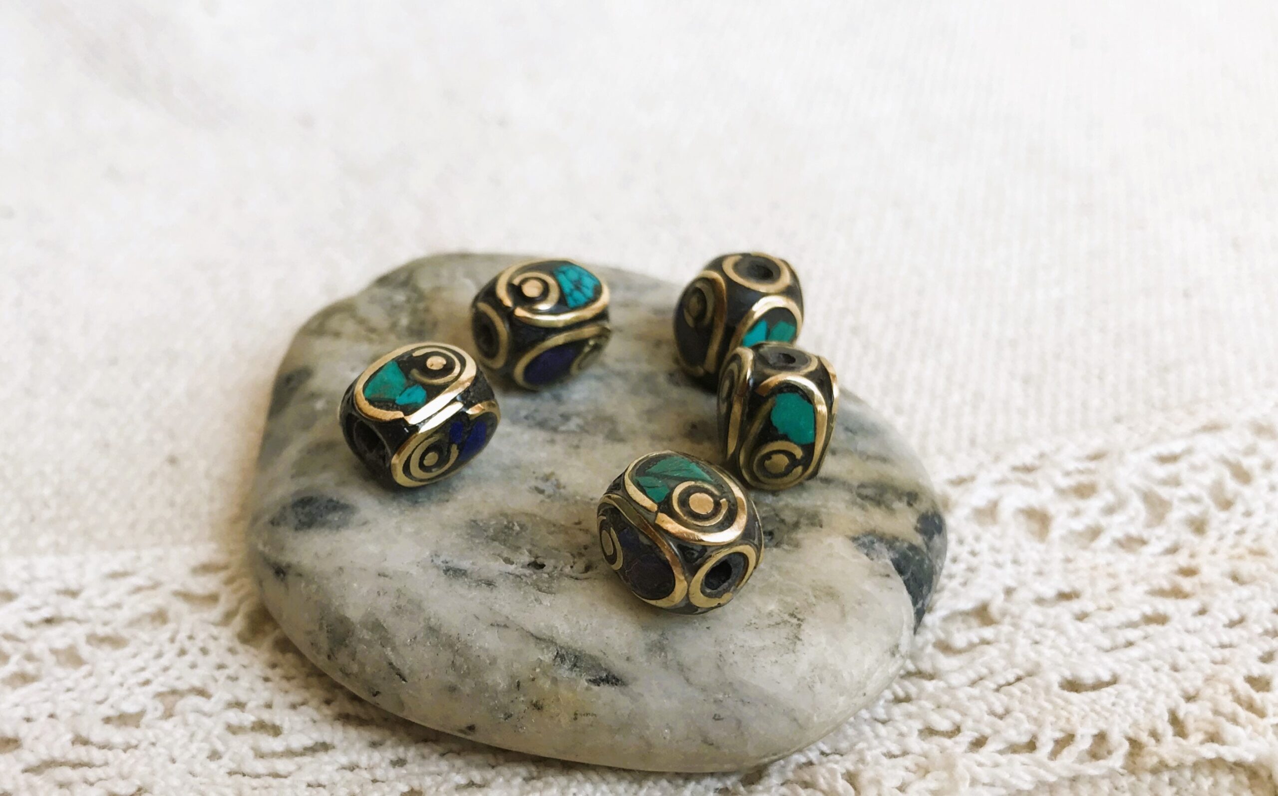 Lot de Perles traditionnelles du Népal Tibet travaillées avec du Lapis Lazuli, de la Turquoise et du laiton. Elles sont entièrement réalisées à la main.