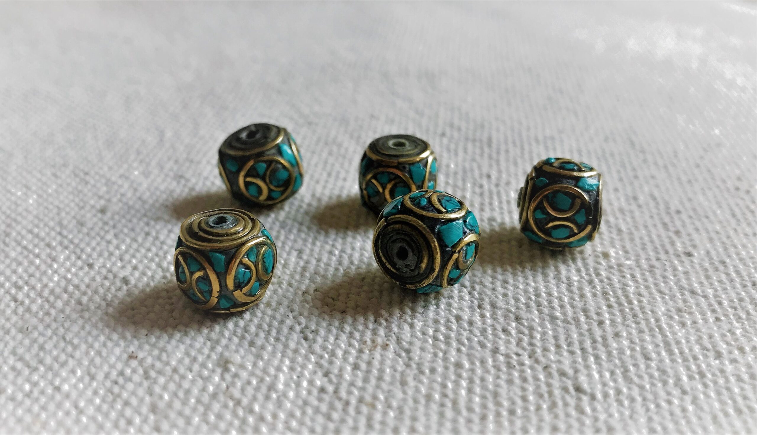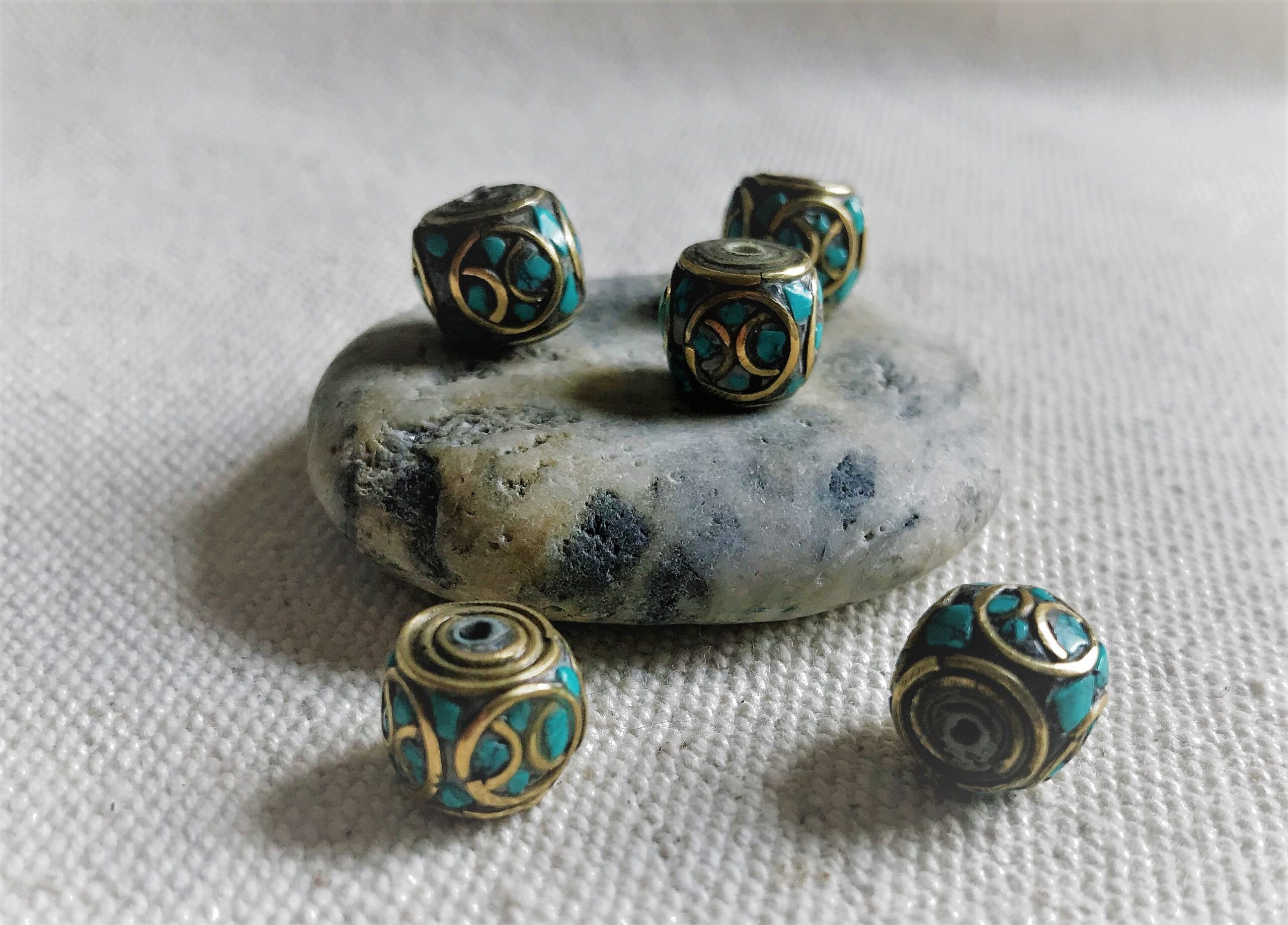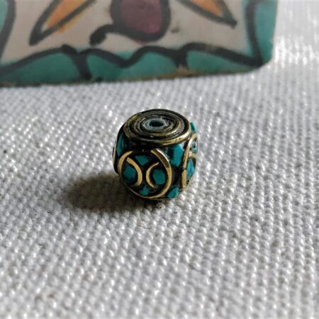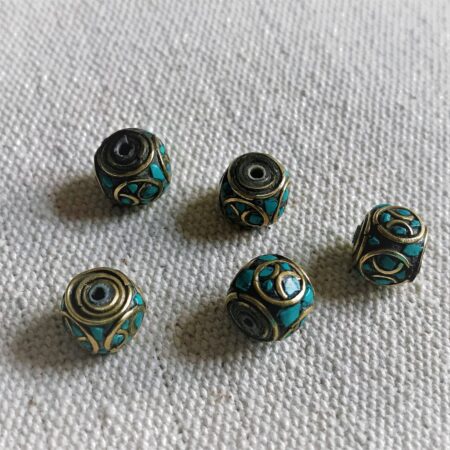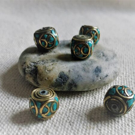 Magnifiques Perles traditionnelles du Népal Tibet travaillées avec de la Turquoise et du laiton. Elles sont entièrement réalisées à la main.