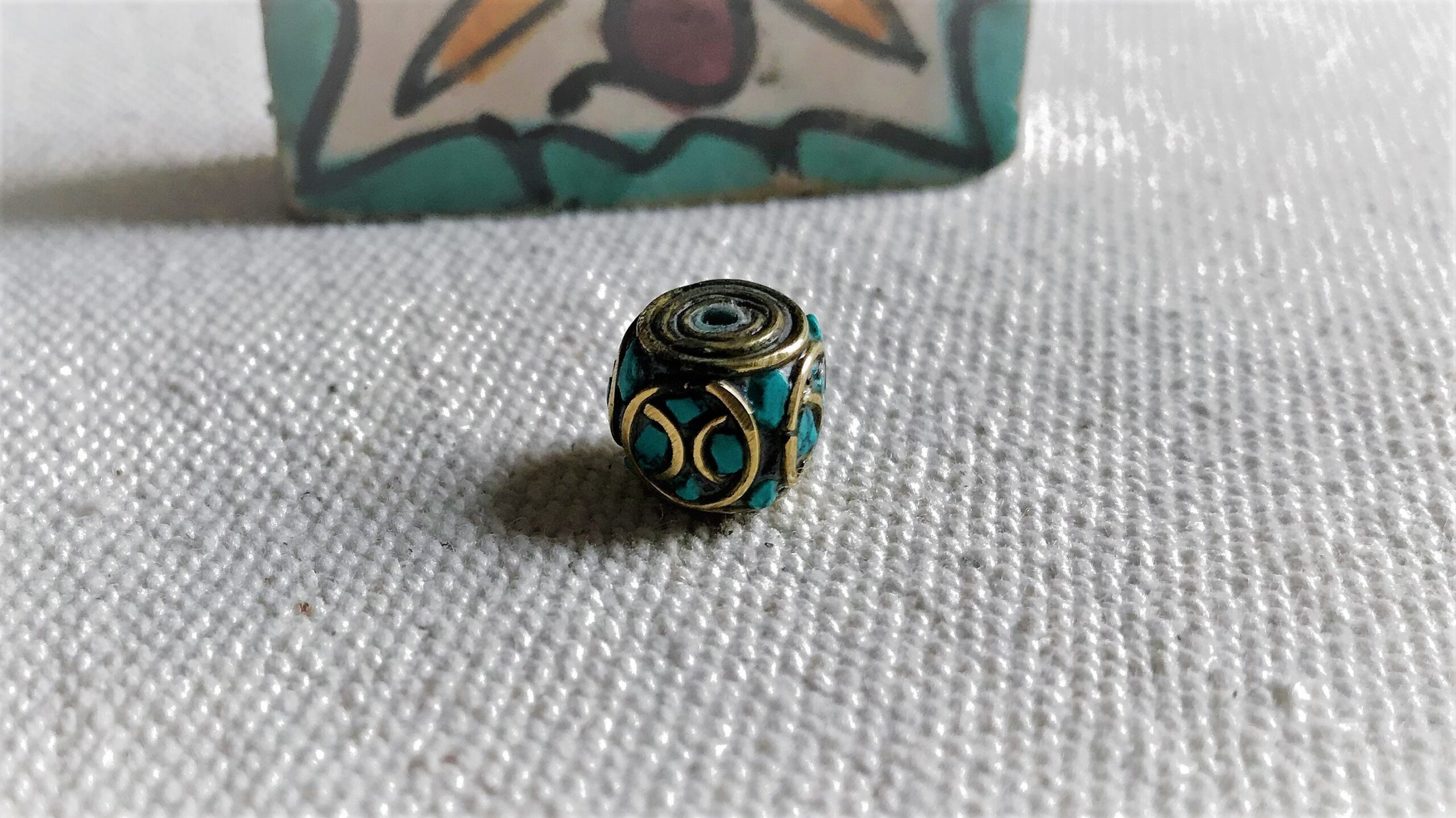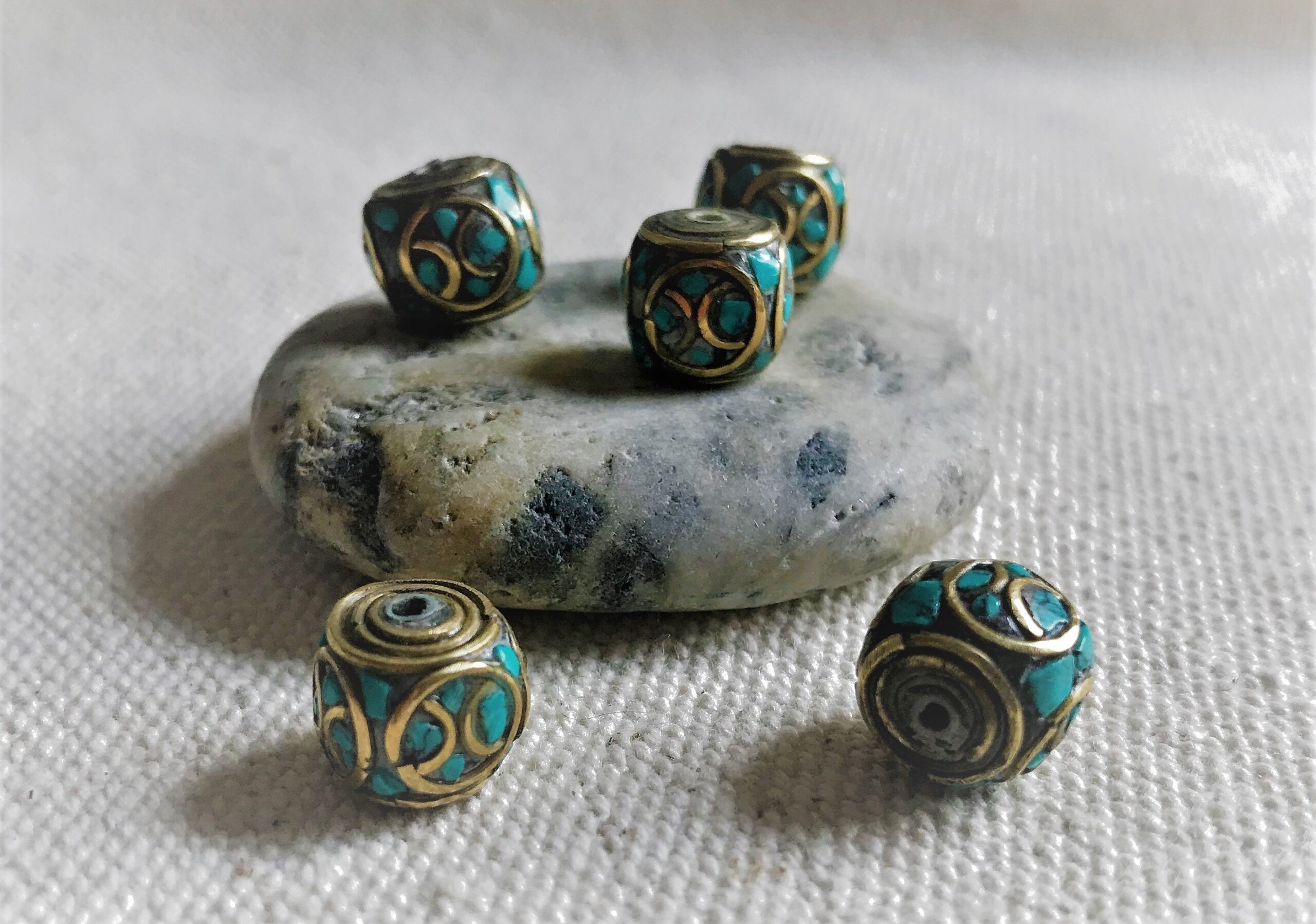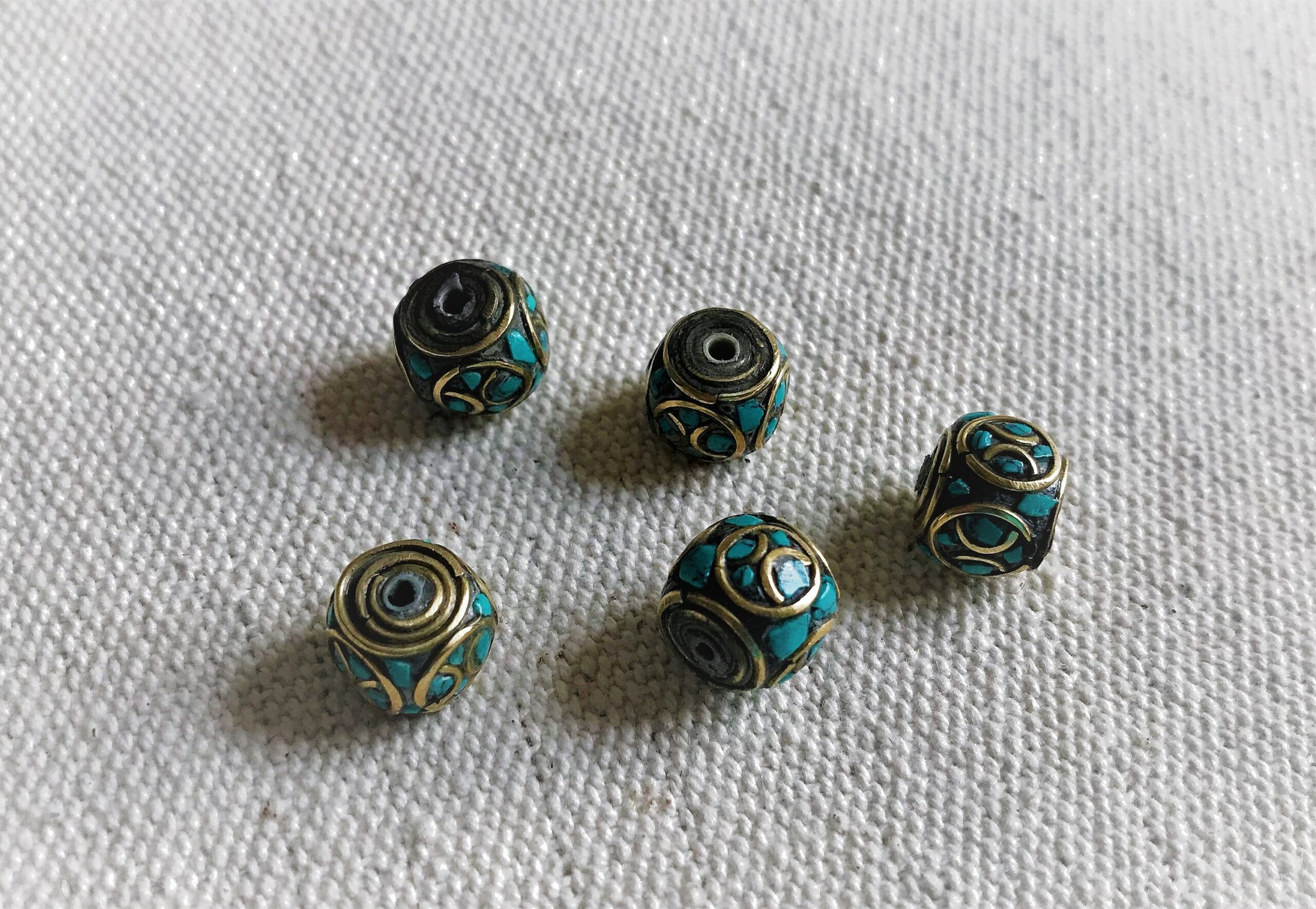 Magnifiques Perles traditionnelles du Népal Tibet travaillées avec de la Turquoise et du laiton. Elles sont entièrement réalisées à la main.