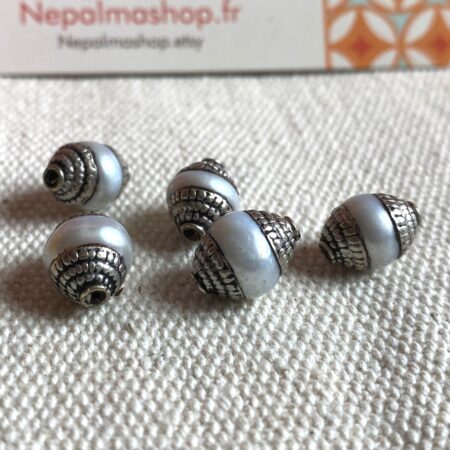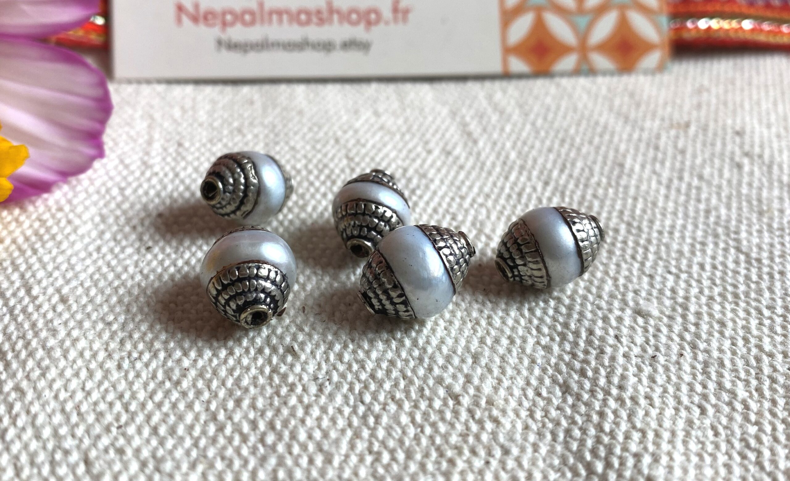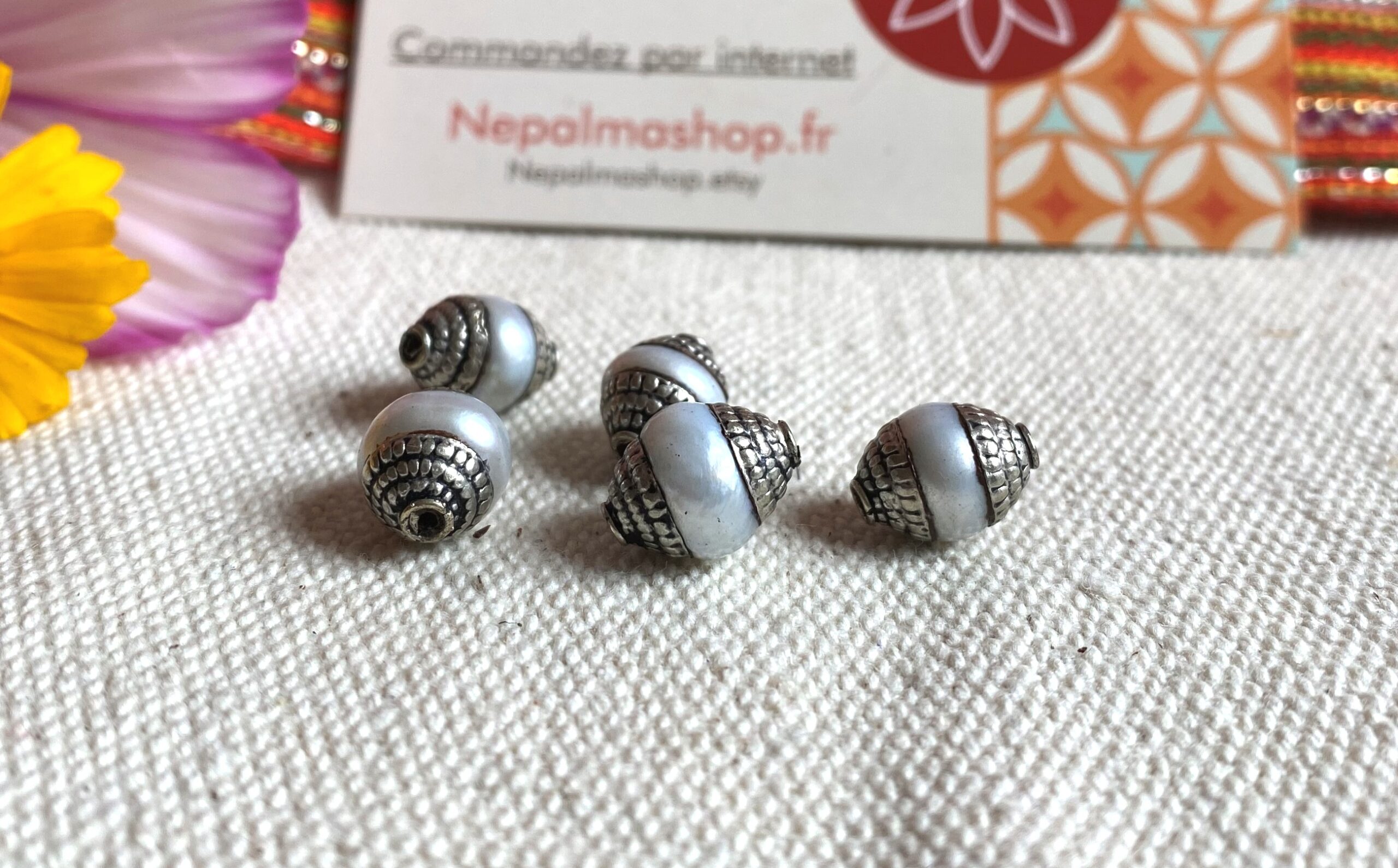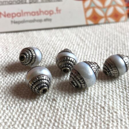 Perles Nacre Argentée ethniques Traditionnelles Népalaises