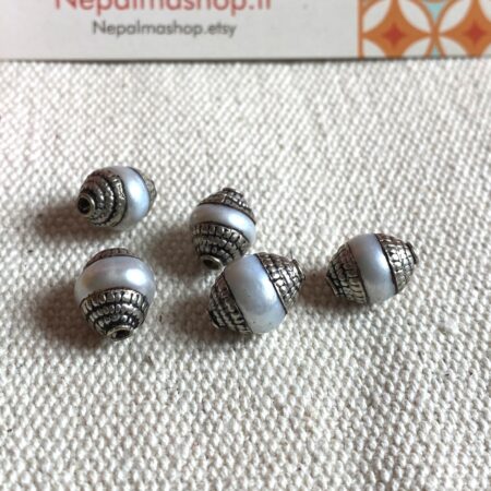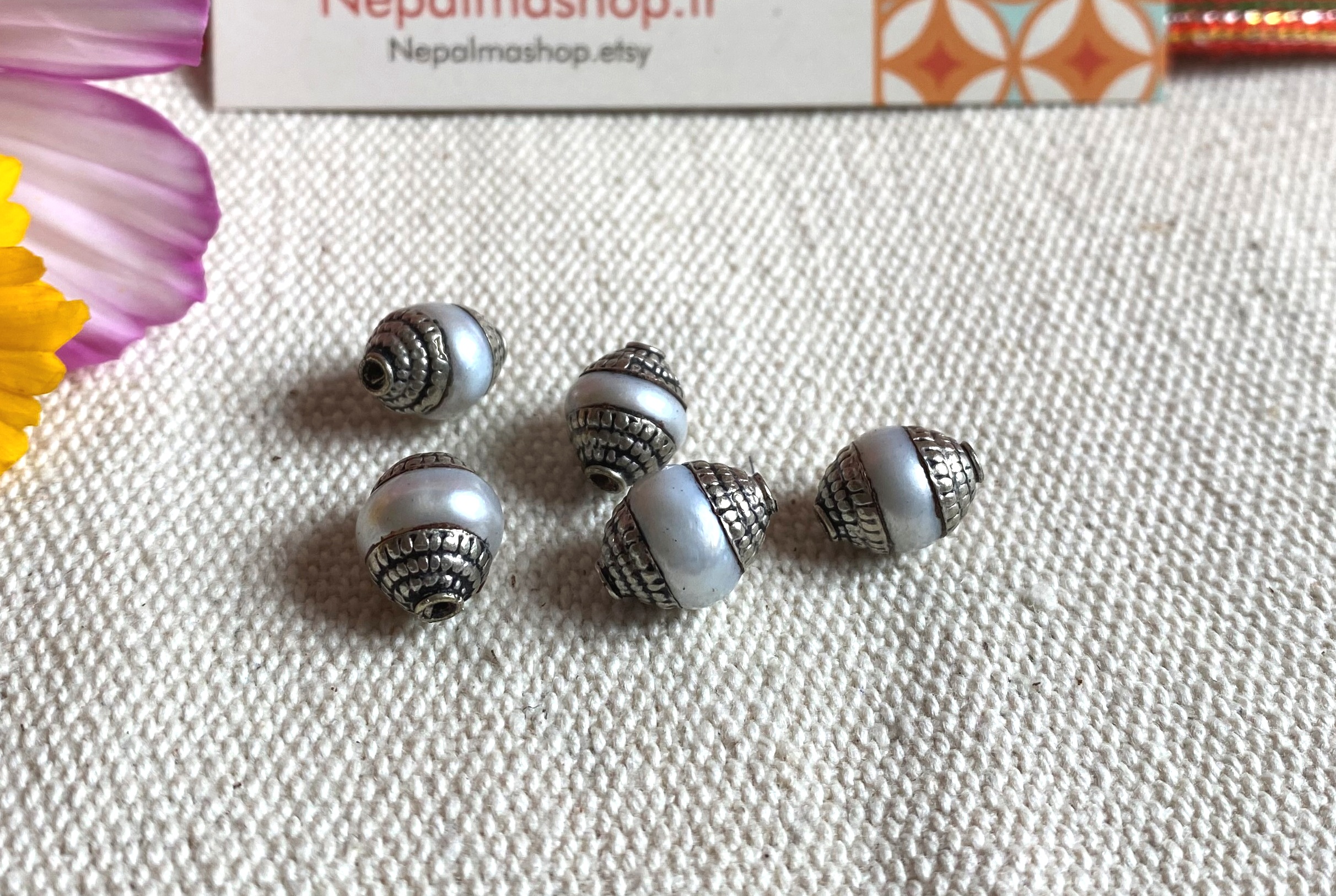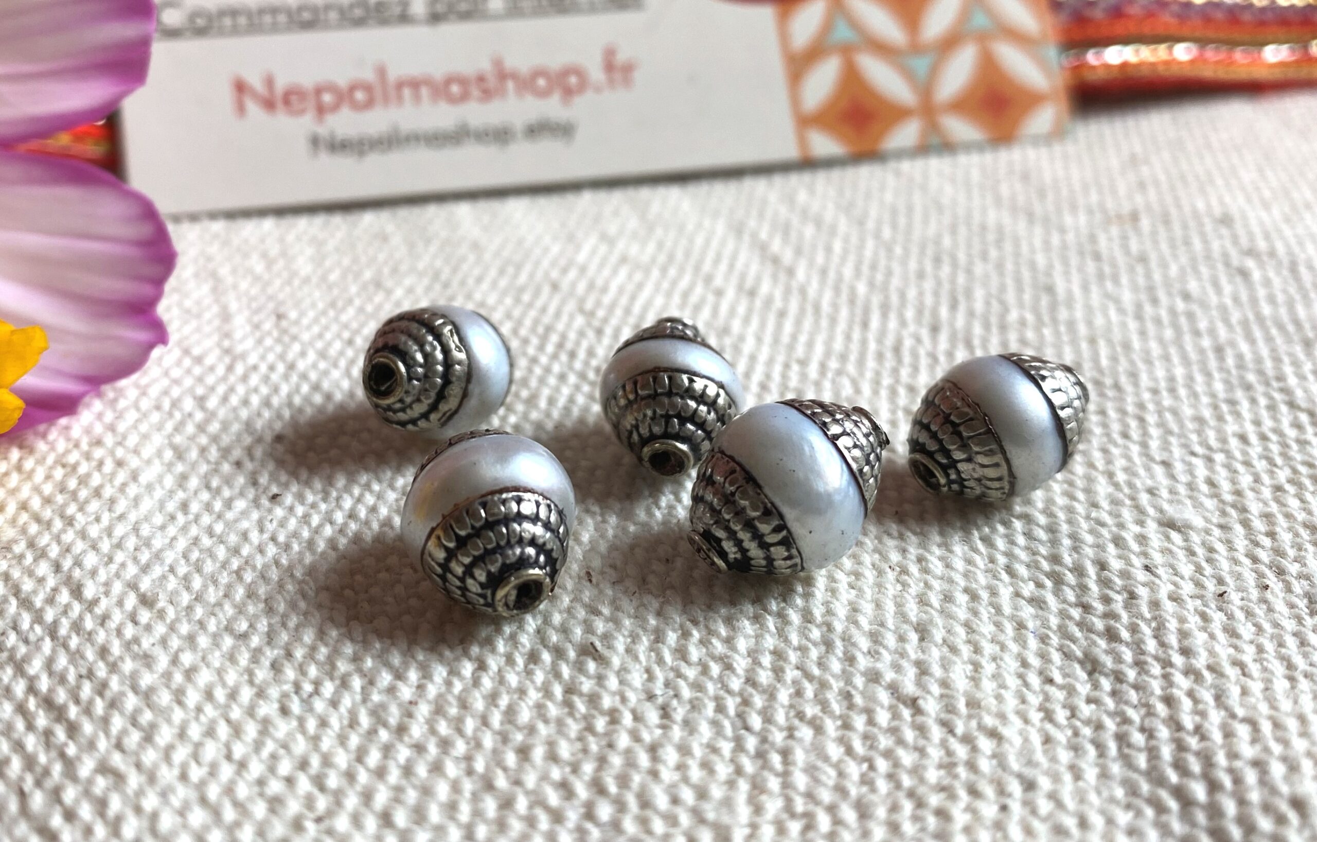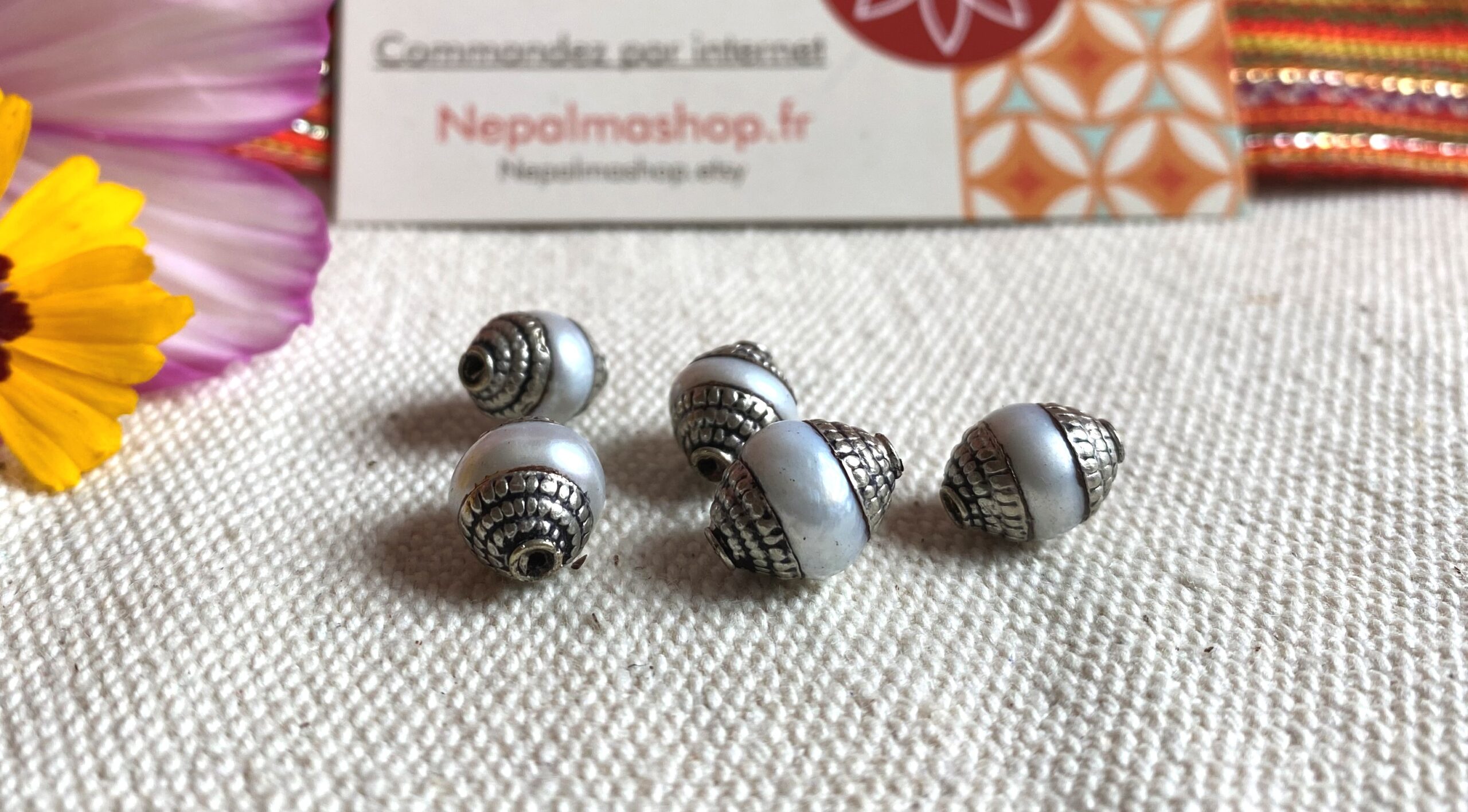 Perles Nacre Argentée ethniques Traditionnelles Népalaises